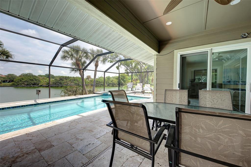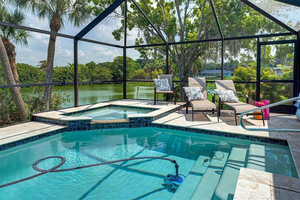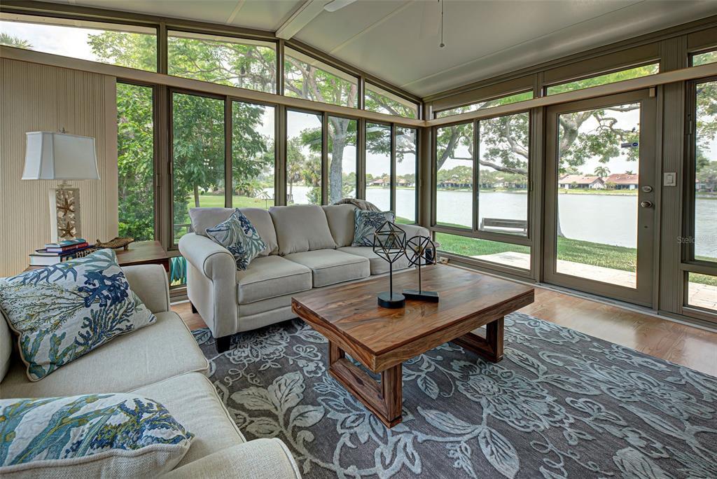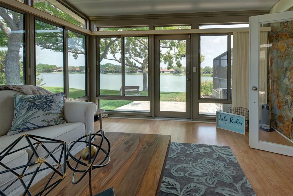 Rented for the 2026 winter season. This beautifully landscaped lake front home is where you will want to spend your winter vacation! Situated on Mirror Lake in the heart of Sarasota near Palmer Ranch, this lovely 2 bedroom, 2 1/2 bath home + sunroom offers a quiet and peaceful sanctuary as you sit by the pool with a good book and look out onto a 10 acre lake surrounded by beautiful trees and an occasional visit by a Bald Eagle! Wake up every morning in the Master Bedroom to the beautiful sunrise over the Lake! In the sunroom, you will find 2 sofas, one with a Queen pull out memory foam mattress for overnight guests. This can function as a 3rd bedroom as it has French doors, window shades and a separate cooling system. The Master bedroom has a a new Tempur-Pedic King mattress. The Guest bedroom has 2 full size Trundle beds. A walk-in shower in the Master Bathroom and a tub/shower in the Guest bathroom. The open concept kitchen is complete with stainless steel appliances and beautiful granite counter tops. Full size stackable laundry appliances in the laundry room next to the kitchen. The home has 18" tile throughout with no carpeting. The oversized garage has a workshop and outside, a lovely back yard patio surrounded by mature Oak trees. What a treat to take a swim in the 6 ft. deep saltwater lap pool (4 ft. at both ends) and enjoy a relaxing soak in the hot tub after a full day of sightseeing and enjoying all that Sarasota has to offer....Beaches, (Siesta Key Beach is just 15 minutes away - 5.7 miles!), Sarasota's finest shops and restaurants, Sarasota Opera, Ballet, and the Sarasota Symphony. All utilities are included during the prime season months of December through April. Owner has placed a $250 cap on the monthly electric bill during the prime season. Off-season guests pay the monthly electric bill.