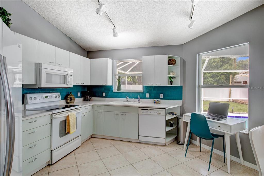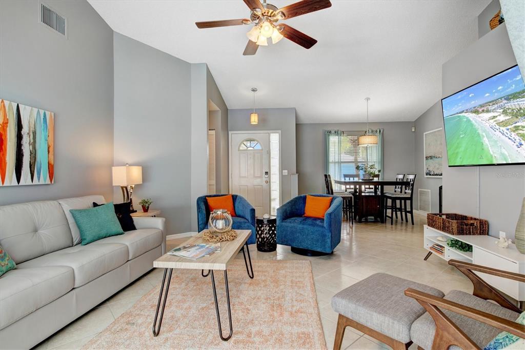 Welcome to The Castaway Cottage, your own private coastal retreat close to Downtown Sarasota and area beaches. There's room for the whole crew in this 3 bedroom 2 bathroom pool home with designer upgrades and beachy motif. Located just steps from the Ed Smith Stadium where the Orioles host their Spring Training games the house is quiet, comfortable and centrally located to all of the best Sarasota Amenities. The property is fully fenced, pet friendly and is being offered turnkey furnished. Castaway Cottage is just 1.2 Miles from Main St Sarasota! The Castaway Cottage offers the ideal floor plan for families and large (or small) groups on vacation, working remotely, or house hunting for any length of time. The space sets up as follows: The front door opens into a large living room with immediate views of the sparkling newly surfaced pebble pool. Seating in the living room is provided for up to 10 people including two swivel chairs, a three seater leather queen sleeper sofa, a retro chair with ottoman and a hightop table with 4 chairs (which doubles as the dining table). The room features a 60 inch mounted flat screen TV with access to complimentary streaming services and lightning fast internet speed. Vaulted ceilings and wall to wall sliders make the space feel light, bright and open and a pass through into the kitchen with two bar stools allows everyone to take part in the conversation. The living room also offers a dry bar with barware and boardgames. The Master bedroom occupies its own wing of the house and includes a large walk in closet, a well appointed en suite bathroom, a work station, and a 60" flat screen TV. The 2nd bedroom offers two twin beds while the third bedroom offers a queen bed with pool access via sliding glass doors. A shared bathroom is located between these two bedrooms. The kitchen is well appointed and features new quartz countertops with a lagoon blue backsplash, a work station looking out onto the pool and backyard and two bar stools overlooking the living room. Access to the pool can be had from the kitchen, the living room sliders or the 2nd bedroom sliders. The lanai offers seating for up to 10 people including a high top dining table (seating for 4), 4 club chairs, and 2 lounge chairs. The entire pool area is screened and offers a Webber 2-burner grill and a 70qt Coleman cooler which doubles as an extra seat if needed. Outside of the pool area you will find a 2nd lanai which is uncovered and offers chaise lounges for up to 3 guests. The backyard is fully fenced and features an elevated seating area with conversation Adirondack chairs and table. This area is conveniently covered by a large shade sail to block afternoon sun and can be lit up at night with LED string lights. Guests will be provided with a unique access code to utilize throughout their stay on the front door keypad. This eliminates the need for guests to keep track of keys.