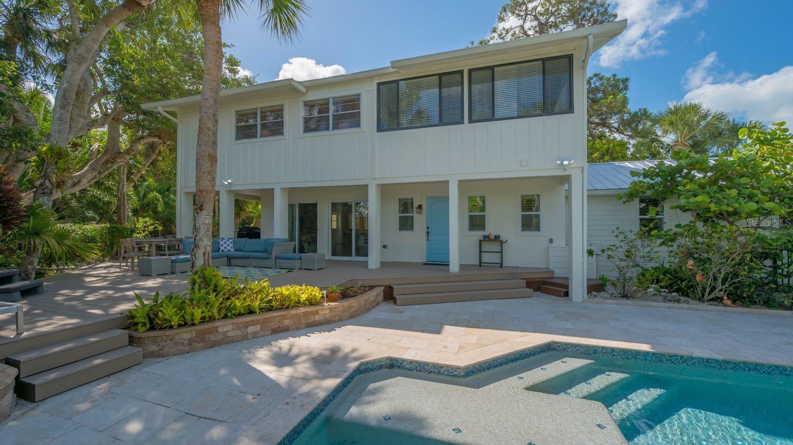 CASEY KEY HOME... This home has room for everyone with five bedrooms and two full bathrooms and two half bathrooms. This is an interior lot with the utmost in privacy with a heated pool and hot tub. Only a few steps from a private access to the Casey Key Beach. The house also has access to a day dock on the intracoastal. This home offers two separate kitchen areas and living rooms. The first floor has two bedrooms and one and half bathrooms. On the second floor there are three bedrooms one and half bathrooms. There is also a bonus room on the second floor that could be a playroom or den. It is a short drive to the North Bridge on Blackburn Point Road, near restaurants and shopping. Come and discover a Florida paradise!!!