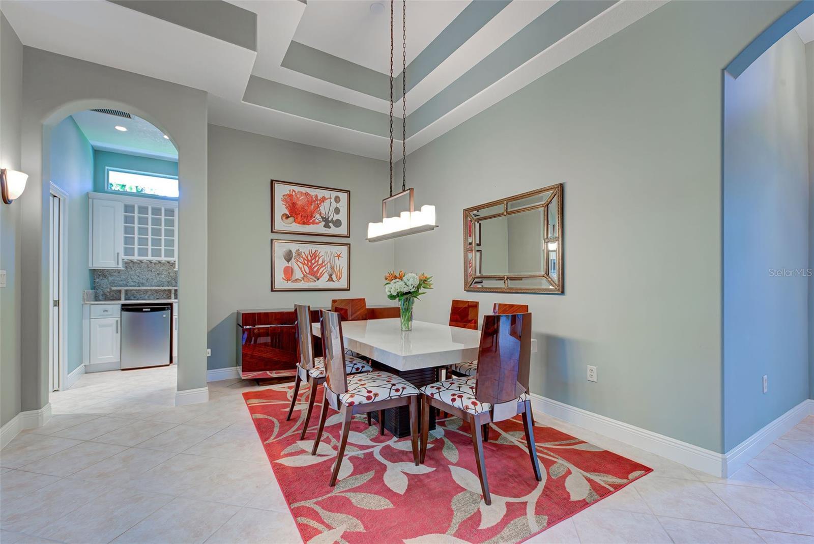 - Ceiling Fans(s), Coffered Ceiling(s), Dry Bar, Eat-in Kitchen, High Ceilings, Living Room/Dining Room Combo, Primary Bedroom Main Floor, Open Floorplan, Thermostat, Walk-In Closet(s)