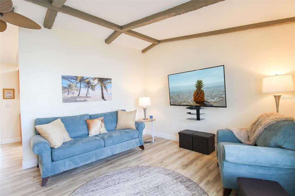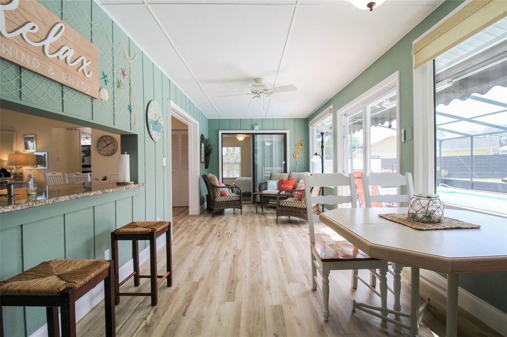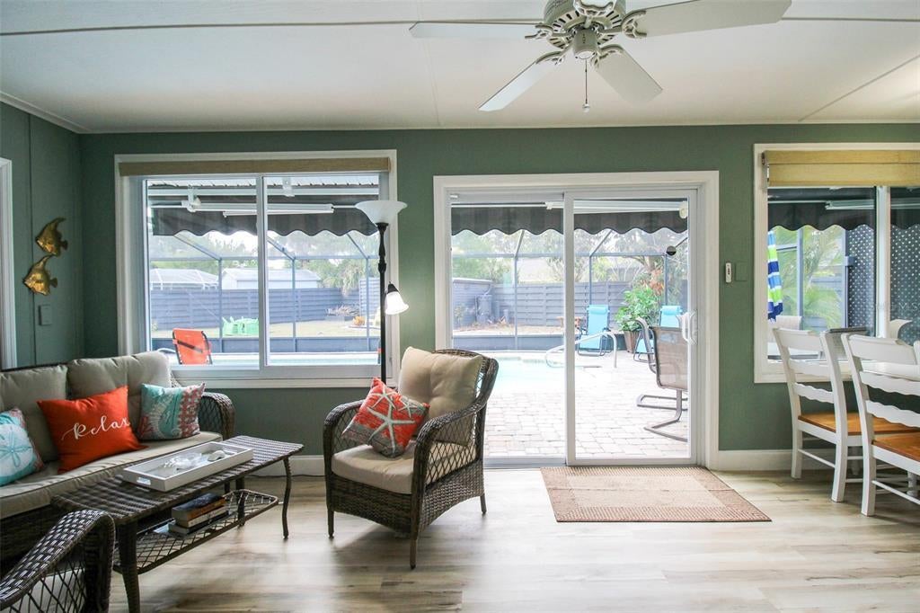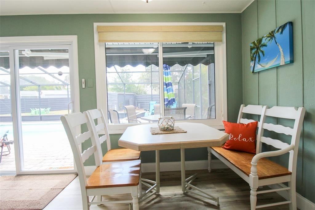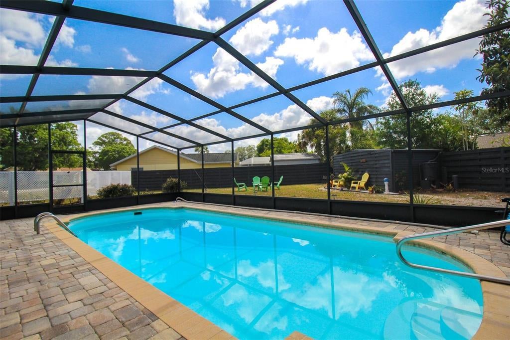 Welcome to Sweet Pineapple! This elegant 2-bedroom, 2-bath private pool home has been fully remodeled in 2022. This home is located just 7.6 miles from the world-renowned Lido Key Beach, where you can enjoy the beach's crystal-clear blue waters and kayak through the mangroves. When you are ready to adventure, head over to Saint Armand's Circle, where you will find exquisite restaurants and lovely boutique shopping. Enjoy the famous Pinecraft Amish Village, where visitors can treat themselves to handmade Amish gifts at Yoder's, Dutch Heritage, and other Pinecraft area restaurants and merchants. Take home locally made jams and jellies, dolls, quilts, soaps, wooden toys, and more. Yoder's has also added a deli and a produce market. Most weekends, a Farmers' Market in Pinecraft sells fruits and vegetables grown by the Amish and their canned and jarred goods. Tamaron Preserve is a slice of nature only four blocks away from this home, where you can walk the shelled trail, feed the turtles and fish, and bring your furry friend for a walk. Upon entry to the home, you will find a lovely front courtyard that will leave you in absolute Zen. There are two chairs out in the front, where you can enjoy your morning cups of coffee and enjoy the sounds of nature. When entering the home, you will find wood vinyl flooring throughout. The living room has a 65" Roku TV, two plush couches, one being a pull-out couch with a queen-size bed, and an adjoining day chair. Adjacent, you will find the kitchen and informal dining room. The dining table can seat up to six comfortably, and there is an leaf extension for larger groups that can then seat up to eight. The kitchen has stunning granite countertops, stainless steel appliances, and a coffee corner. On the other side of the kitchen, you will find the second living room or sunroom which is completed air-conditioned, with a dining table that can seat up to four, and two bar stools on the kitchen island. The table is perfect for games or puzzles and enjoying your morning coffee or lunch overlooking the gorgeous pool. Down the hall, you will find the primary bedroom, a king-size bed, a set of sliding glass doors, a Roku TV for easy streaming, and a large walk-in closet. The primary bathroom has a large vanity and a walk-in shower tiled from floor to ceiling with a detachable showerhead. The second bedroom has two twin XLs that can be put together with a bed extension to convert it into a king-size bed. The second bathroom has a large vanity with chic décor and a shower/tub combo with a detachable showerhead. Time for your outdoor retreat! There is a sizeable free-formed pool that has been completely resurfaced, overlooking the giant backyard. There are four chairs by the pool for you to soak up that Florida sun, along with an outdoor dining table with an umbrella that can seat up to six. The spacious backyard is the perfect place for friends and family to get together. There is an outdoor fire pit and a gorgeous pineapple garden that borders the caged-in pool. House Rule: No smoking. No burning candles inside of lodging. No parties. No Pets. Pool heating is optional, for an additional non-refundable fee of $25 per day + taxes?to be paid directly to the management company after the reservation is confirmed. **Taxes and fees not included.