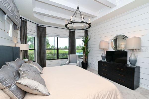 Property is open for the month of Feb 2025 prime season. One of Lakewood National's finest Lennar furnished Bougainvillea models. This executive luxury home will not disappoint anyone that resides. The soaring decorative ceilings and unique hanging light fixtures through out will WOW you as soon as you come through the double wide front doors. The travertine cobble stone flooring is through out the entire living areas with carpet in the bedrooms. The formal dinning area has a built in dry bar for entertaining and light bright double windows viewing out the front of the house. This home has amazing views from the outdoor lanai, master bedroom suite, guest en suite, Living room, and open kitchen. These views are of rolling greens, pond wildlife, queen palm trees, 3rd hole, 4th tee and 5th fairway of the 1# golf course in the USA.. The huge kitchen granite stone breakfast counter is a great area for everyone to gather. The kitchen has built in oven and microwave with a gas range and real wood light colored tall cabinets with walk in pantry. Lets not forget the outdoor living areas with 2 covered areas to relax under and use the outdoor kitchen for grilling. Nice sized heated self cleaning pool with hot spa to enjoy with lite lanai beams for that real relaxing feel. This all comes with a $600 membership transfer to engage in all of Lakewood National's wonderful amenities on property. The owner does have a charging golf cart in the garage for tenants to rent for their convenience.
