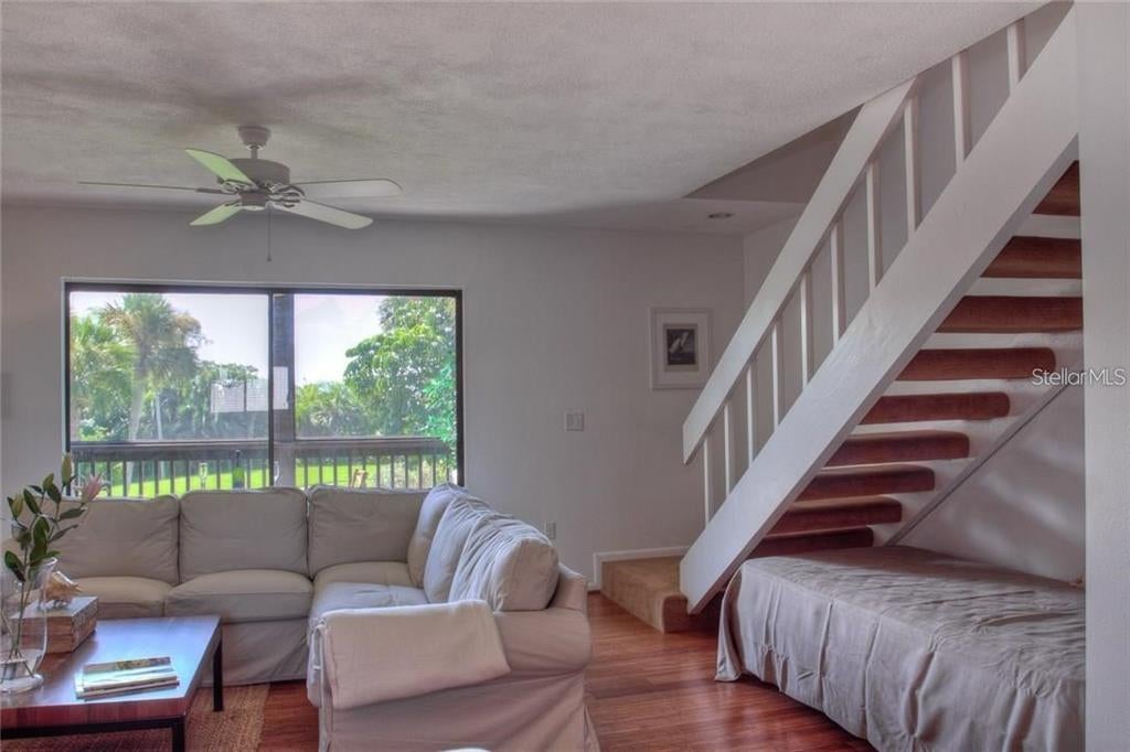 View the intracoastal by SIESTA KEY from your master bedroom porch having a rest on the reclining chairs. This second floor townhouse is in the perfect location for your stay in SARASOTA and a short distance from a world famous beach. Located by the Stickney Point Bridge this renovated and beautifully decorated townhouse is ready for short term stays of a minimum of one month. Up the stairs to the front door and step into this light filled home, all up to date decorating in neutral tones. There is a guest bathroom on the first floor and an extra single bed for overflow guests. Up to the bedroom level and you will find two bedrooms, the master has a king sized bed and the second bedroom features a queen sized bed. There are two porches for relaxing on, one off the living room and one off the master bedroom. There is a washer and dryer in the unit, and the resort style complex features two swimming pools, one overlooking the bay and tennis courts. SARASOTA, NEAR SIESTA KEY, RENTAL.