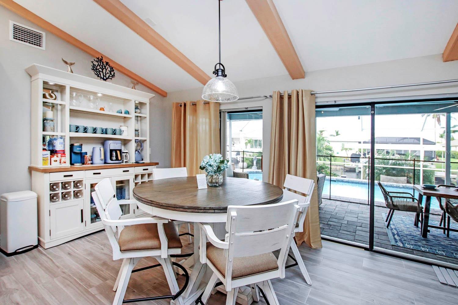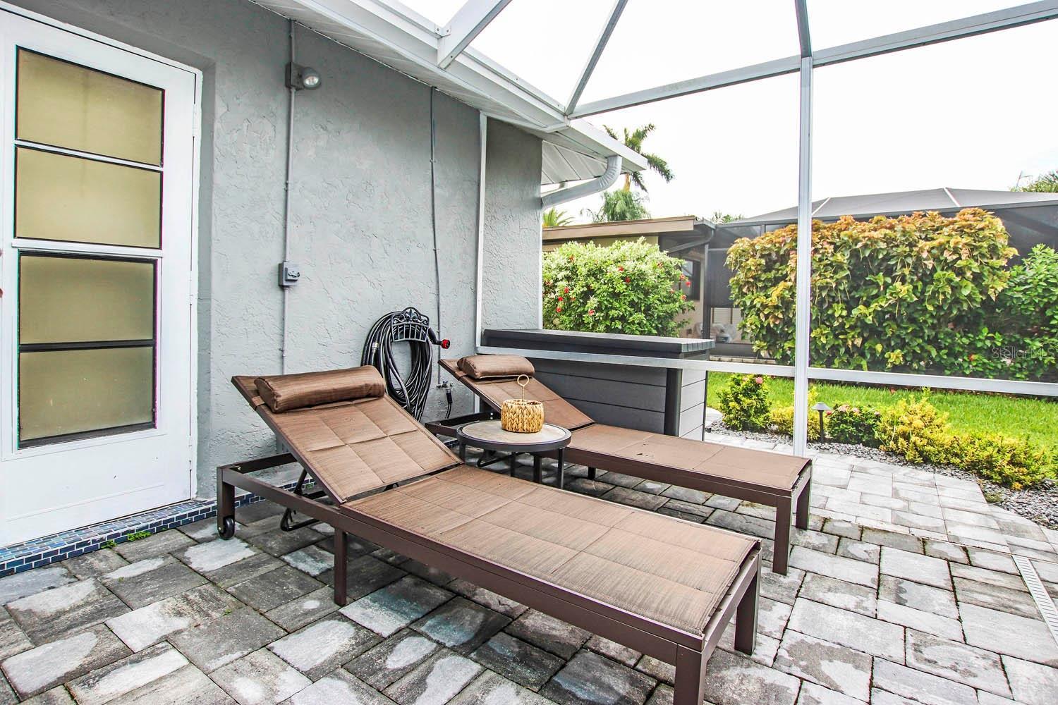 Welcome Searenity! This home is located in beautiful Cape Coral, Florida! This exquisite 4-bedroom, 3-bathroom private pool canal front home is the epitome of indulgence and relaxation. Nestled in the heart of Cape Coral's stunning waterfront community, this exceptional property promises a truly unforgettable getaway. As you approach this vacation haven, you'll be greeted by lush tropical landscaping and a charming curb appeal. The four well-appointed bedrooms offer comfortable accommodations for up to eight guests, making it perfect for families, friends, or couples seeking a retreat together. Each bedroom is thoughtfully furnished and decorated to ensure a restful night's sleep. The primary bedroom, with its plush bed, offers a serene escape from the hustle and bustle of everyday life. The three additional bedrooms provide ample space and comfort, ensuring everyone has their own private oasis. Step outside, and you'll find yourself in a paradise of relaxation and entertainment. The private pool overlooks the serene canal, inviting you to take a refreshing dip or simply bask in the Florida sun on the comfortable chaise lounges. For those who enjoy a little extra pampering, the standalone hot tub is the ideal spot to unwind and soak away your cares. As the sun sets, gather around the outdoor fireplace for cozy evenings under the stars. Whether you're roasting marshmallows, sipping on cocktails, or simply enjoying the warmth of the fire, this is a space that encourages cherished moments with loved ones. One of the standout features of this home is the open-concept living and dining area that seamlessly blends indoor and outdoor living. The spacious living room boasts comfortable seating and a large flat-screen TV, perfect for movie nights or catching up on your favorite shows. But the real showstopper is the wall of sliding glass doors that open to reveal the incredible outdoor oasis. The fully equipped kitchen is a culinary haven, with modern appliances, granite countertops, and ample space for preparing delicious meals. Enjoy your morning coffee at the breakfast bar or gather around the dining table for family dinners overlooking the pool and canal. If you decide to venture out, Cape Coral offers a wide range of activities to suit every taste. Explore the scenic canals by boat, dine at waterfront restaurants, or head to nearby beaches for a day of sun and surf. Enjoy some game time in the garage that has been fitted out into a game room. House Rule: No smoking. No burning candles inside of lodging. No parties. No Pets. Pool heating is optional, for an additional non-refundable fee of $25 per day + taxes to be paid directly to the management company after the reservation is confirmed. Guests can only fish off the dock; the boat lift is not available for guests. Taxes and fees not included.