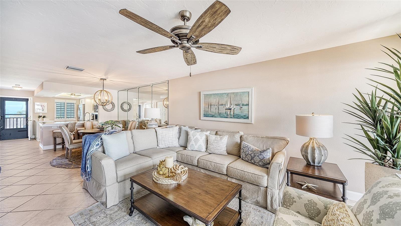 BOOKED FEB/APRIL 2026. AVAILABLE JANUARY 2026. UTILITIES INCLUDED. SIESTA KEY SPECTACULAR FULL BAY/INTRACOASTAL UNOBSTRUCTED VIEWS! BOOK YOUR BEACH GETAWAY NOW! Beautifully updated throughout Turnkey "top floor" Condo in this popular community of Sunrise Cove. Located on the southern end of Siesta Key, directly across the street from Turtle Beach! Upon entering the condo, you will immediately fall in love with the bright open plan dining and extended living room, all tastefully furnished and decorated. The fully equipped kitchen has quartz counters, custom cabinets and new stainless-steel appliances. The Master Bedroom has plantation shutters and more amazing views of the bay, the Master Bathroom was also expanded to provide more space and has a walk-in shower and single vanity. Luxury Vinyl in both the bedrooms and tiled throughout the living areas. Guest bedroom with queen size bed and walk-in closet, and the guest bathroom also has a walk-in shower and single vanity. From the front balcony you will have views of the Gulf, common laundry areas are on each floor, private storage lockers and a trash chute. Plus, 1 assigned parking carport in front of the building and additional guest parking. Sunrise Cove offers many social activities and amenities, which includes a large clubhouse with kitchen, billiards 2 tennis & 4 pickleball courts, fitness rooms, game room, club house, kayak racks, fishing docks, bayside picnic area with gas grills, 2 heated pools overlooking the Bay, and the Jr. Olympic pool is on a peninsula which juts out onto the Bay. Walk across the street the Turtle Beach Access, and you are right next door to Turtles Restaurant, and only .2 miles from the fabulous Ophelia's Bayfront Restaurant. There is a Free Trolley stop directly across the street from the complex, with free rides to the famous #1 Siesta Key Beach with its crystal quartz sand, Siesta Key Village where you will find shopping and restaurants. If you enjoy the nightlife, Siesta key village is where it's at! This is the absolute perfect island getaway. Don't let this one slip away!!