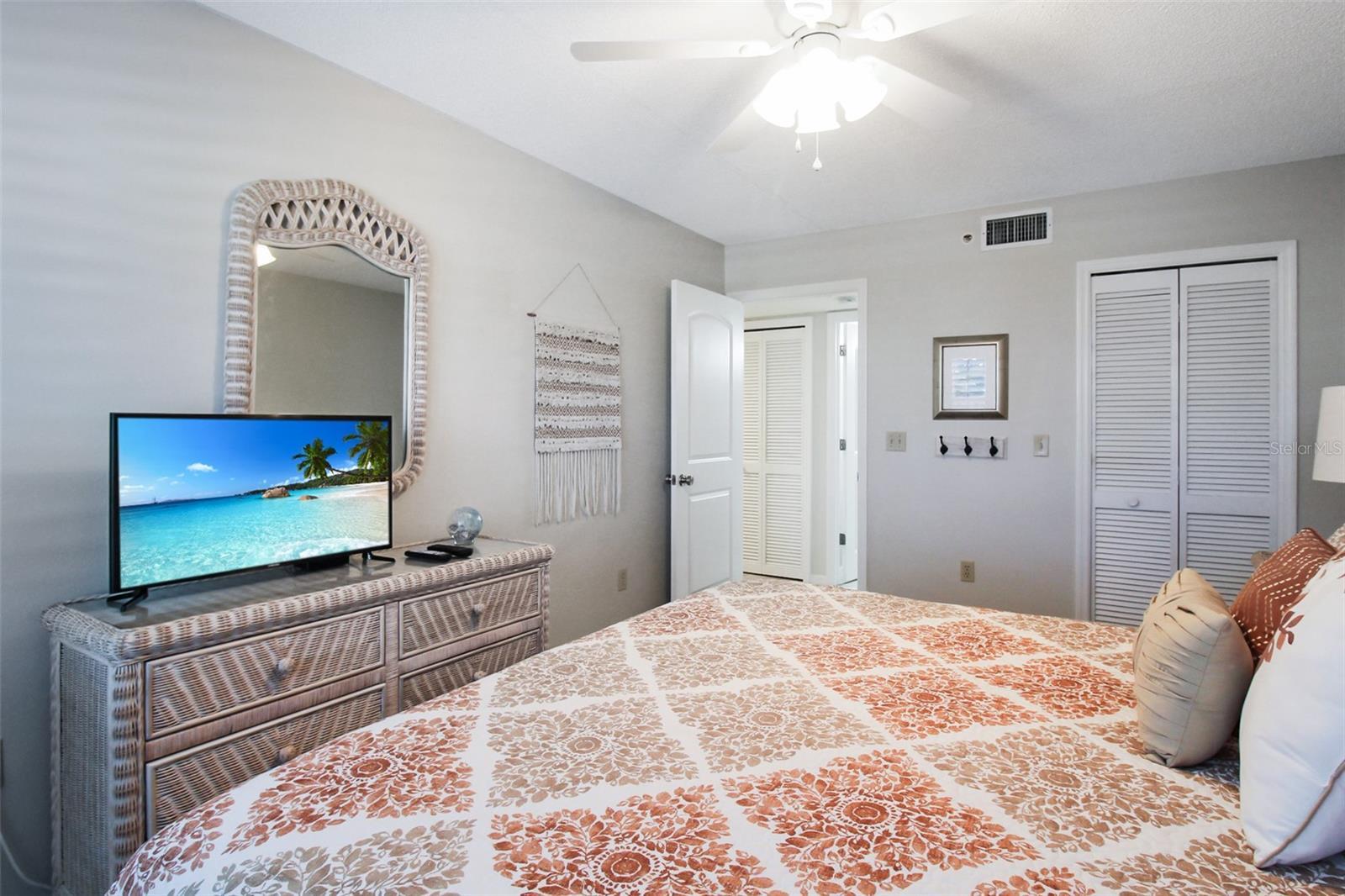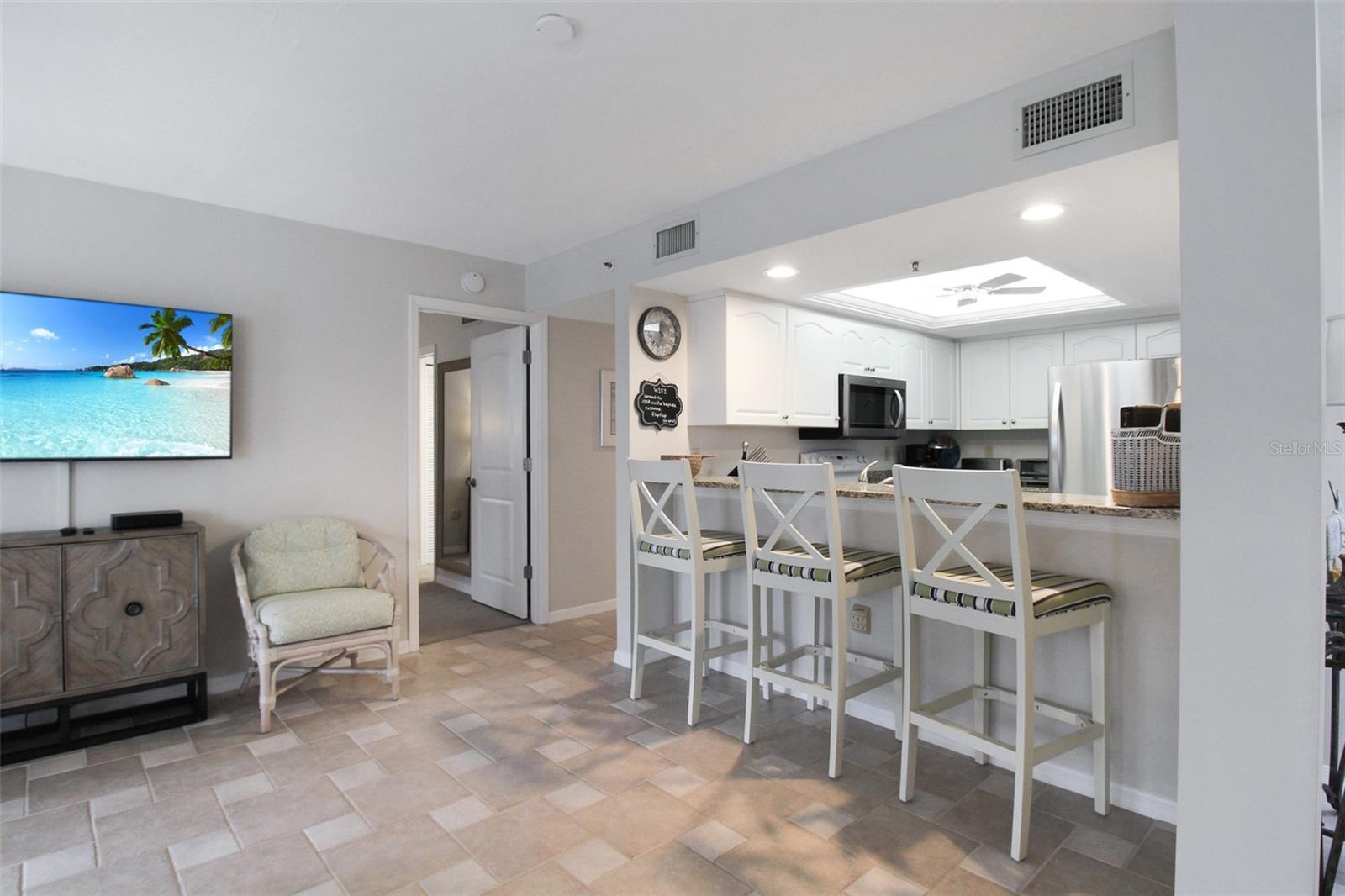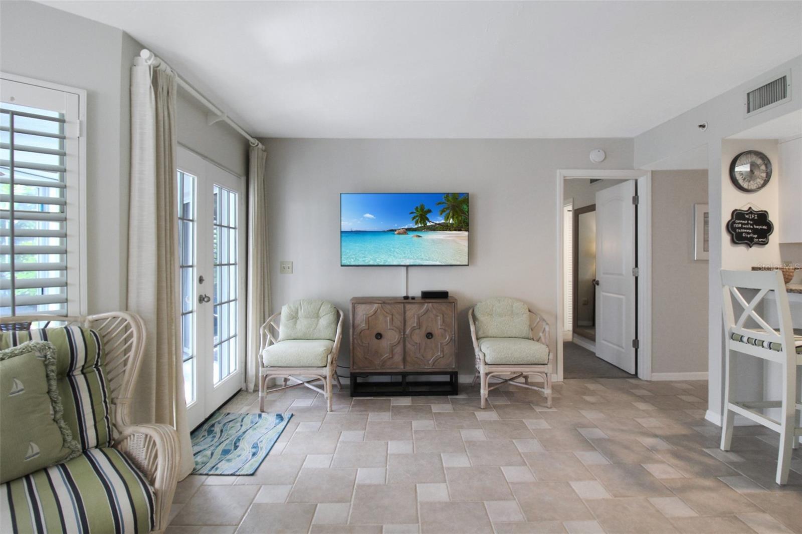 Indulge in the ultimate coastal lifestyle with this charming 2-bedroom, 2-bathroom first-level condo in the heart of Gulf & Bay Club Bayside on Siesta Key, Florida. As you enter, the coastal vibes welcome you into a thoughtfully designed space adorned with beach-inspired decor and sunlit interiors. Step through the sliding glass doors onto your private screened-in lanai, where the gentle breezes and tropical surroundings invite you to unwind and enjoy the outdoor charm. The well-equipped kitchen features modern appliances and a breakfast bar, perfect for casual gatherings with friends and family. The primary bedroom offers a true escape with sliding glass doors to the lanai, a king-size bed, a TV and an attached bathroom that will make you feel as if you are at the spa! There are two vanities and a stunning tiled walk-in shower. The second bedroom has a king-size bed, plenty of closet space and a TV. The second bathroom has an updated vanity, with a walk-in shower. Gulf & Bay Club Bayside offers resort-style amenities, including pools and tennis courts, all set against the backdrop of beautifully landscaped grounds. With easy access to the pristine beaches of Siesta Key and the vibrant local culture, this first-level condo captures the essence of coastal living. Immerse yourself in the relaxed elegance of this Gulf & Bay Club Bayside residence, where every day feels like a beachside getaway. **Taxes and fees not included.