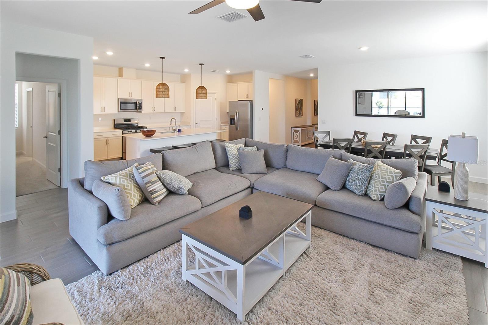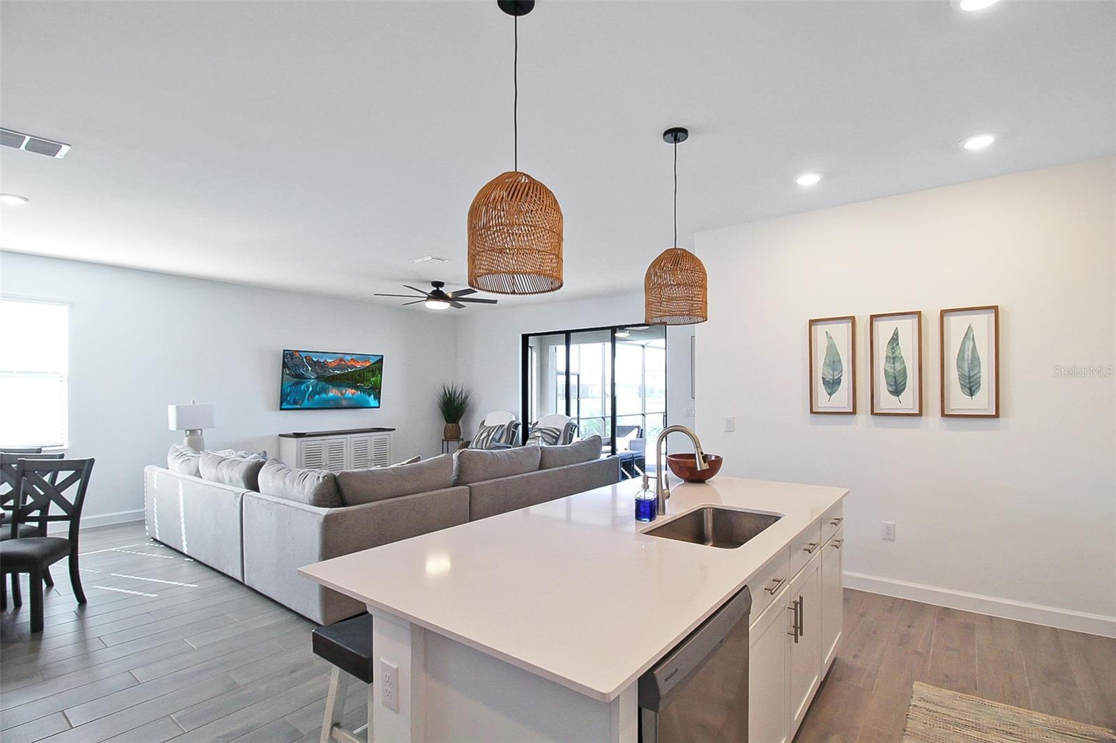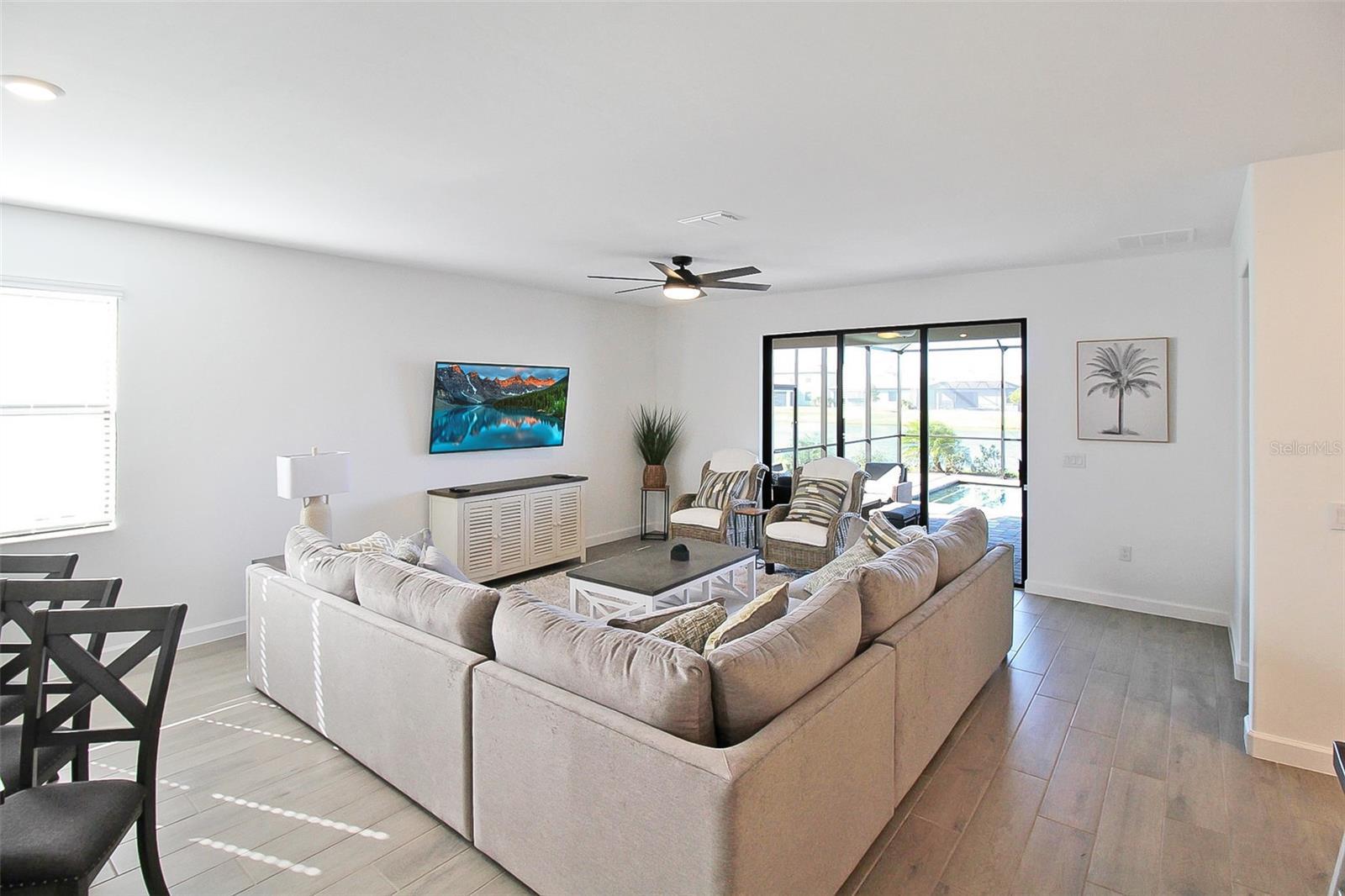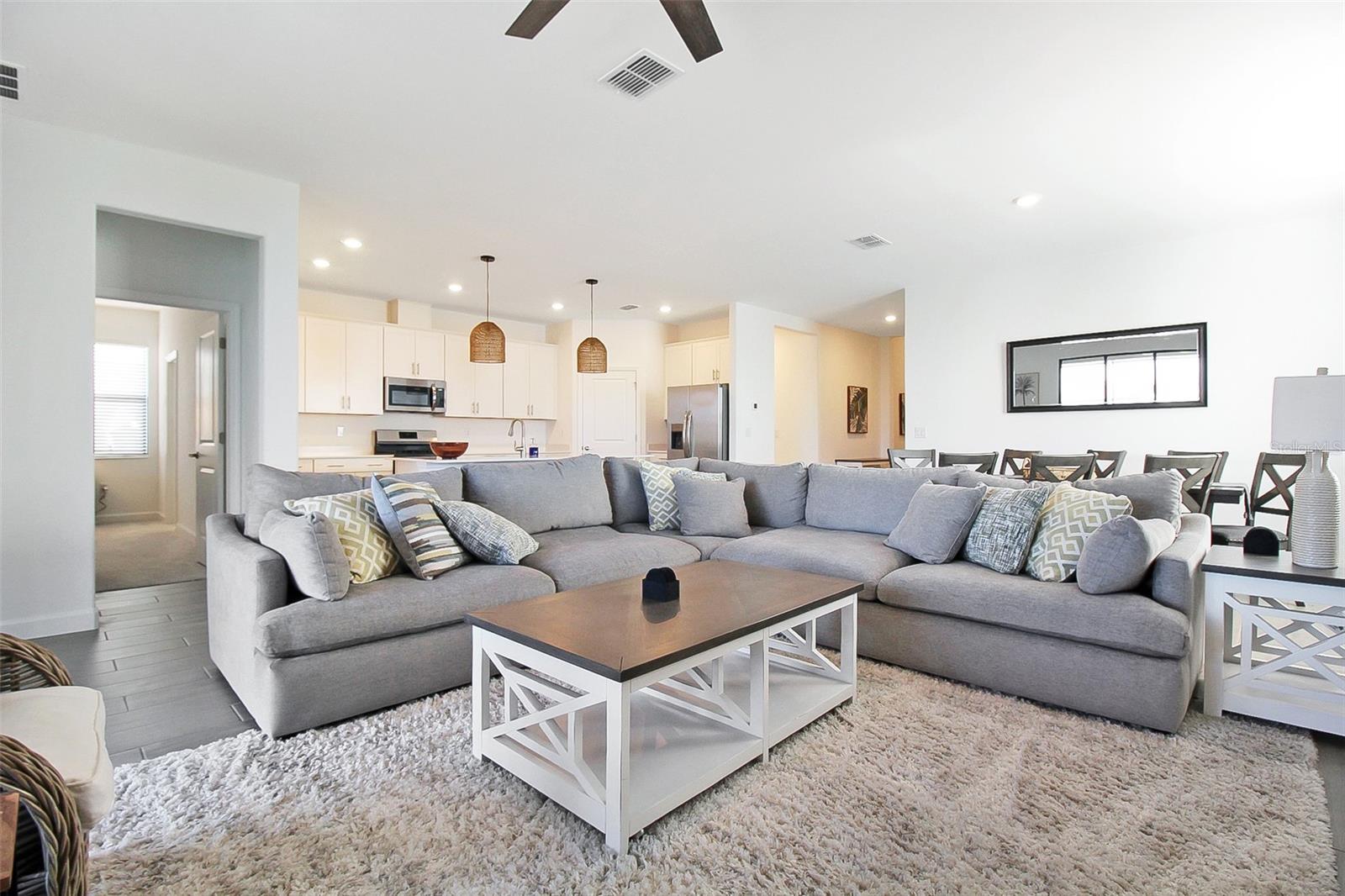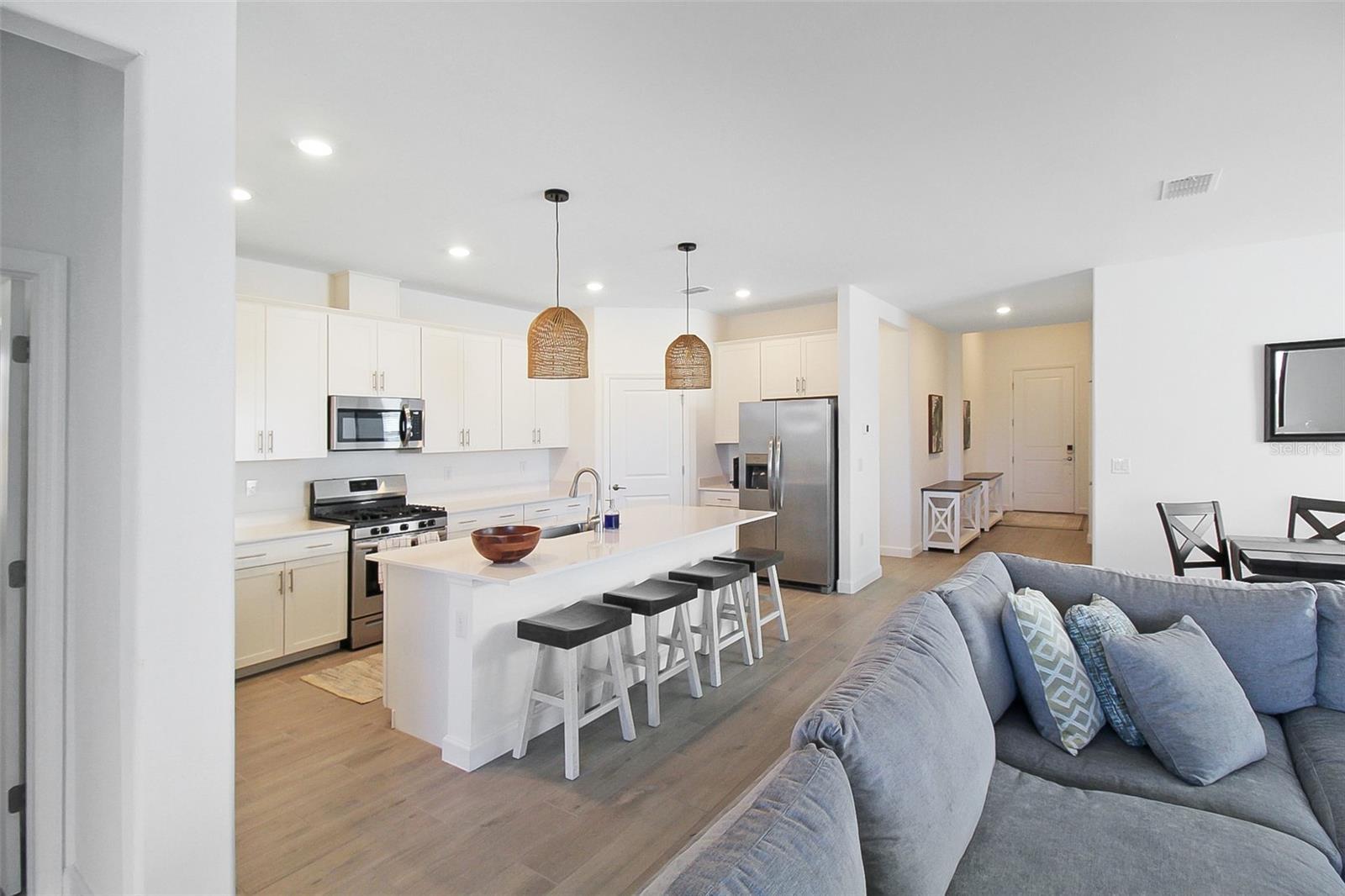 Waterfront Dreamin is the epitome of luxury living at this magnificent 4-bedroom, 3-bathroom private pool home, nestled in the prestigious community of Lorraine Lakes, Florida. Situated on an enviable lot, this homes offers breathtaking panoramic views of the serene lake, providing a tranquil backdrop to your everyday life. As you enter, you are greeted by a grand foyer that sets the tone for the elegance that unfolds throughout the home. The expansive living spaces feature high ceilings, windows, and exquisite finishes, creating an ambiance of opulence and sophistication. The heart of the home is undoubtedly the outdoor space. Large sliding glass doors beckon you to the outdoor oasis, where a private pool awaits. Immerse yourself in the refreshing waters or lounge on the poolside patio as you soak in the sun and relish the picturesque lake views. There is also outdoor seating for you to gather with family and friends. The open-concept design seamlessly connects the kitchen to the spacious living and dining areas, making it an ideal space for entertaining guests or simply enjoying quality time with family. The living room has a large sectional with a Smart TV. The gourmet kitchen is adorned with top-of-the-line appliances, custom cabinetry, and a center island that doubles as a stylish breakfast bar. This culinary haven is a dream for both aspiring chefs and those who appreciate the finer things in life. The primary bedrooms is a sanctuary of indulgence, featuring a generously sized bedroom, a spa-like en-suite bathroom with a dual vanity, and a walk-in shower. The second bedroom offers plenty of space to unwind after a day of adventuring, and is adjacent to the second bathroom. The second bathroom has an updated with a shower/tub combo. The third bedroom is perfect for the kids! There is a bunk bed with plenty of space for toys. The fourth bedroom has chic decor, and plenty of closet space. Attached is the third bathroom that has an updated vanity, with a shower/tub combo. Nestled within the sought-after Lorraine Lakes community, this home perfectly balances serenity with convenience. There is a Clubhouse with a state-of-the-art fitness center, aerobics studio, splash park, a large resort style community pool, a playground, a sports court, a basketball court, tennis courts, volleyball courts and much more. Enjoy the tranquility of this picturesque neighborhood while being just moments away from the vibrant amenities of Lakewood Ranch. Explore the diverse dining options, upscale shopping, and recreational opportunities this charming area offers. House Rule: No smoking. No burning candles inside of lodging. No parties. Dogs welcome, max 2, and require a $200 per pet non-refundable pet fee to be paid directly to the management company. Pool heating is optional, for an additional non-refundable fee of $25 per day + taxes to be paid directly to the management company after the reservation is confirmed. **Taxes and fees not included.