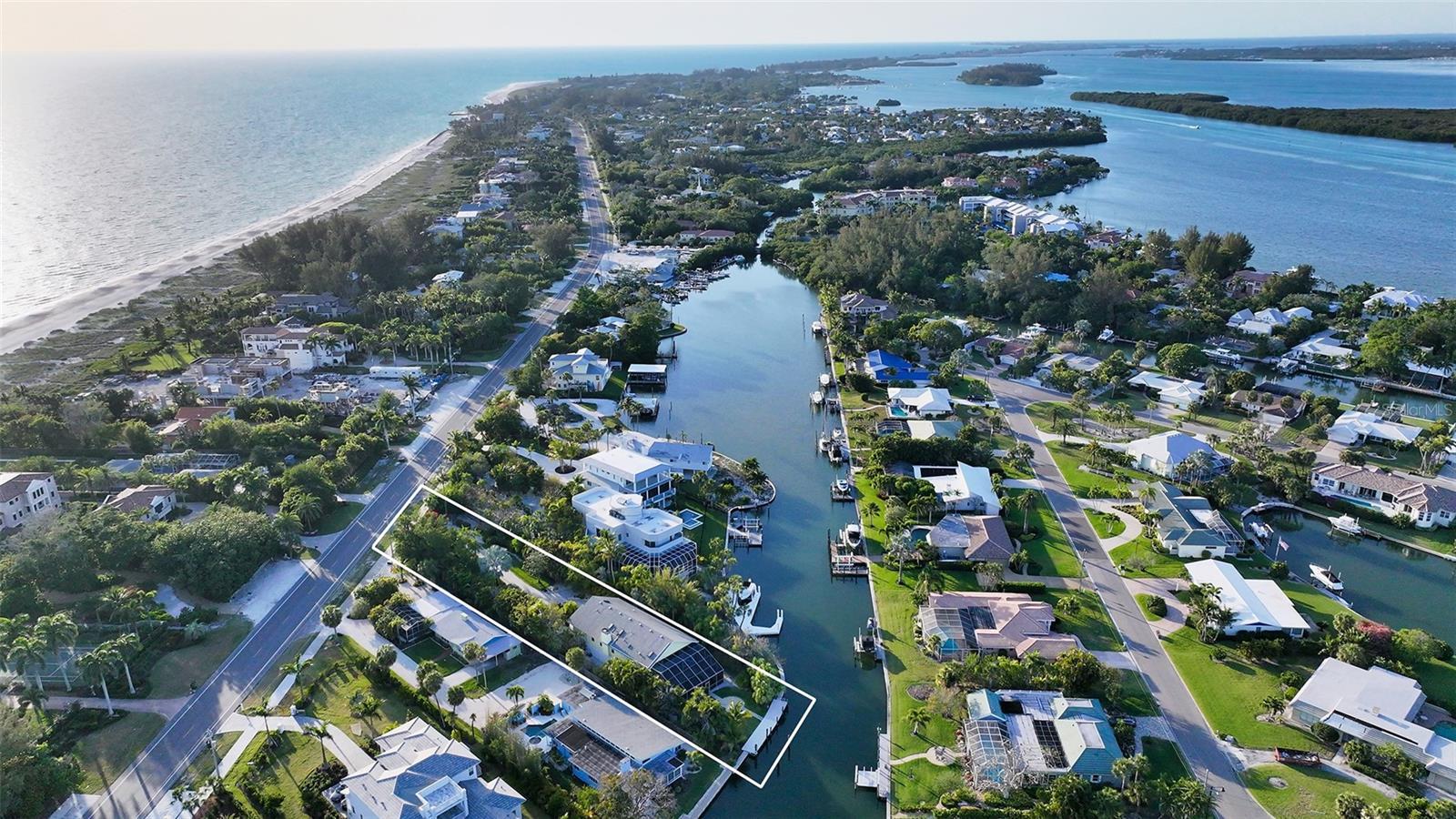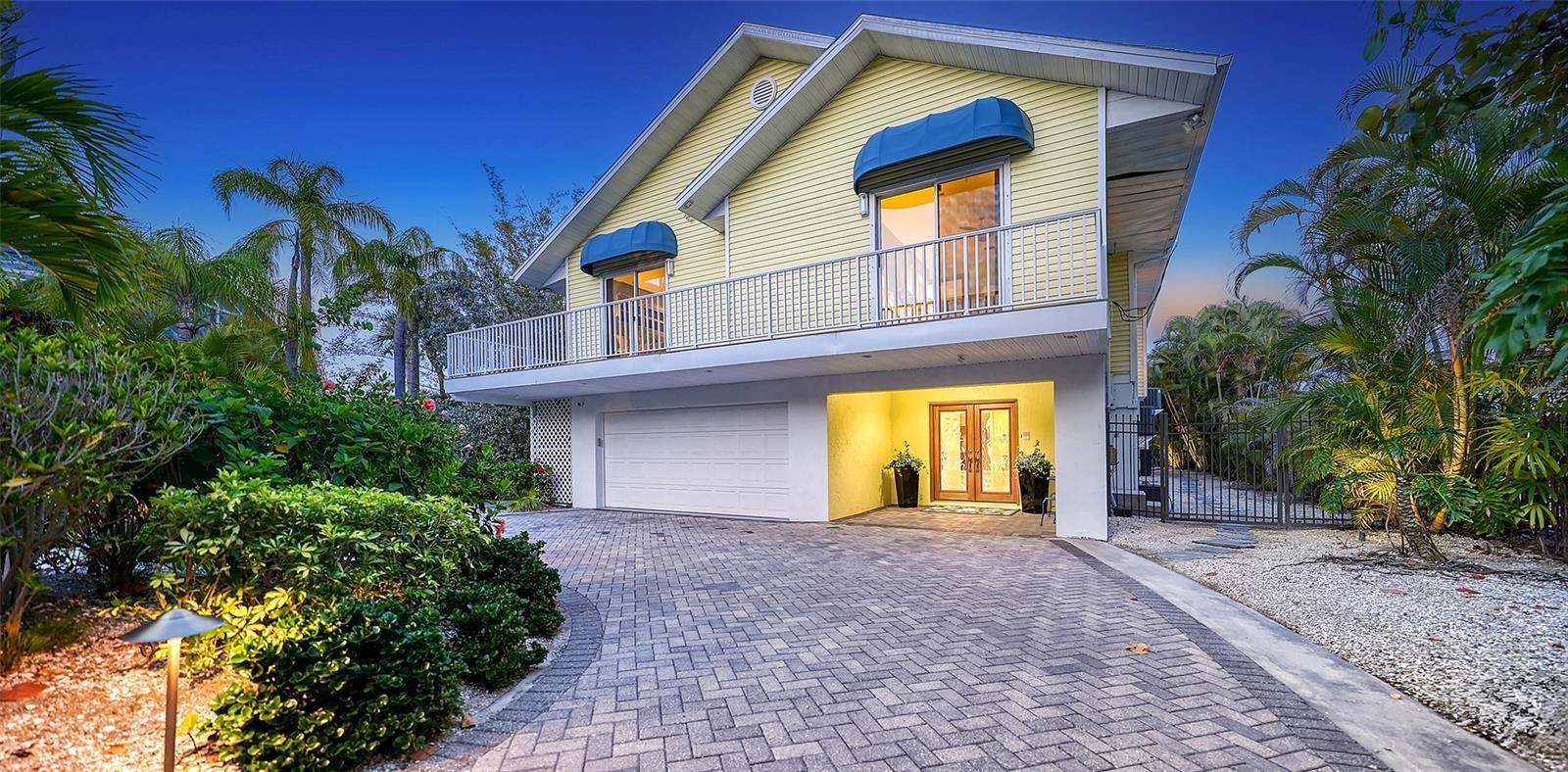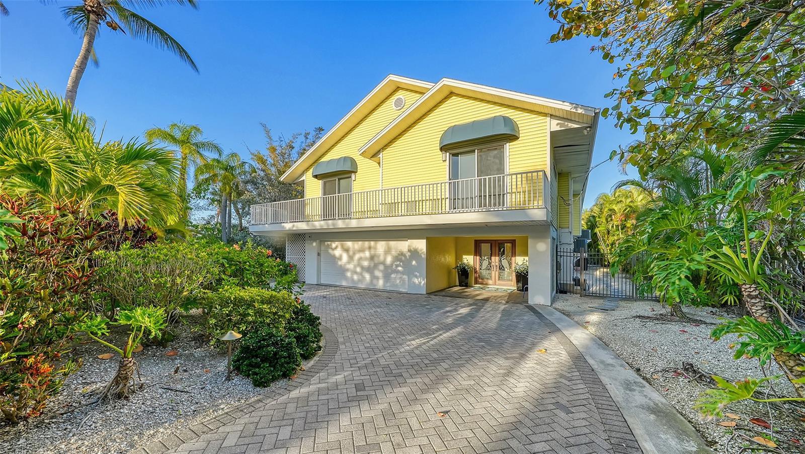 Under contract-accepting backup offers. A gated entrance and paver driveway surrounded by lush landscaping leads to this lovely home on a wide canal that is a boater's dream. The location is a private half plus acre estate across the street from the beautiful Gulf of Mexico and beach. The exquisite double entry etched doors open to the first living level of storage and an elevator plus staircase that goes to the main level. The main living level features gorgeous wood floors, beautifully updated kitchen with granite breakfast bar that is open to the entertaining area with serene views over the wide canal waterway. All of the bedrooms have terraces. There is a caged pool and spa with an additional sunning area. This lovely canal home has been completely updated with the new gate and fence around property, major landscape work and premium sound system. The boater has direct intra coastal access. New seawall and dock installed in 2022.