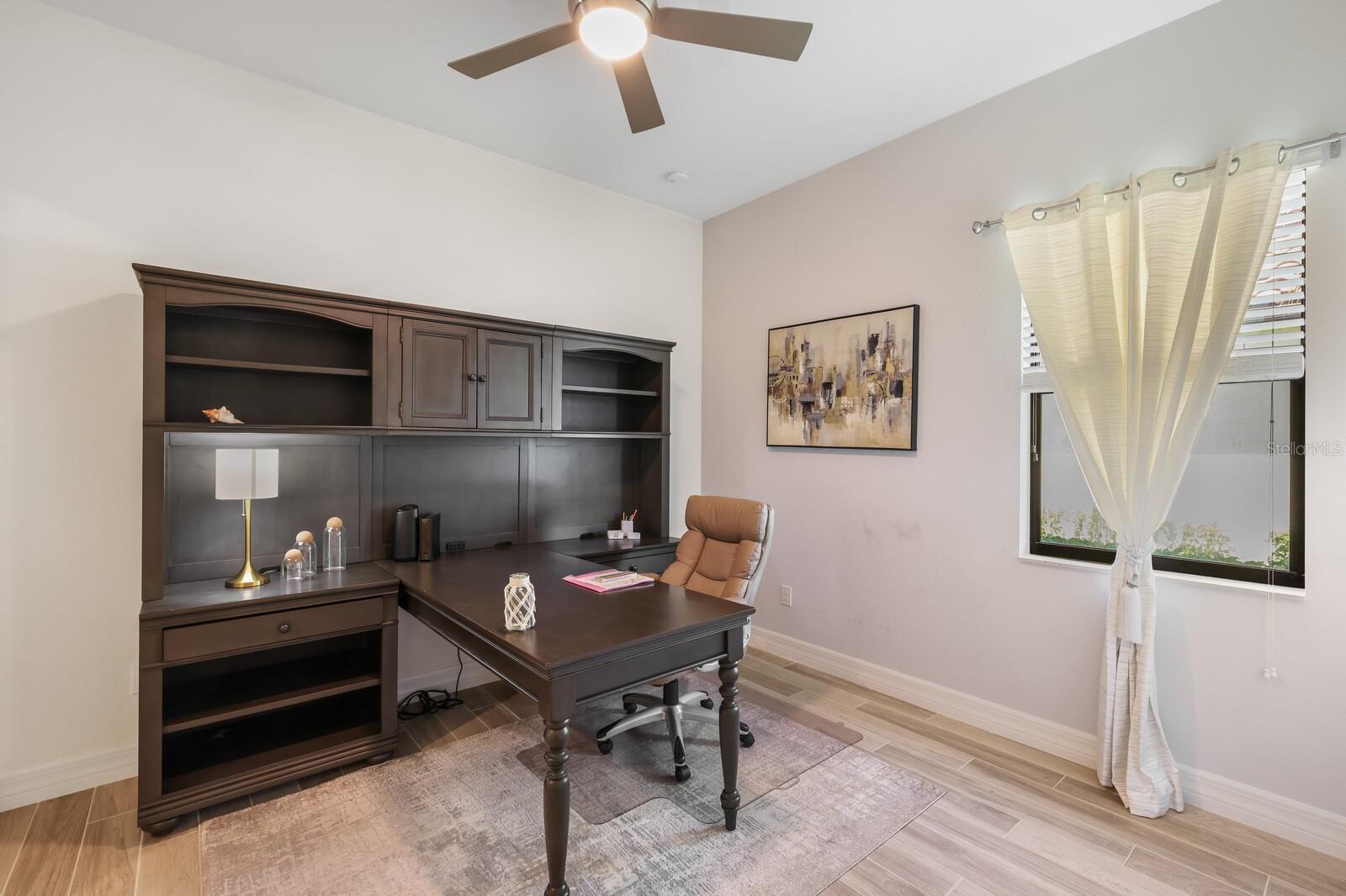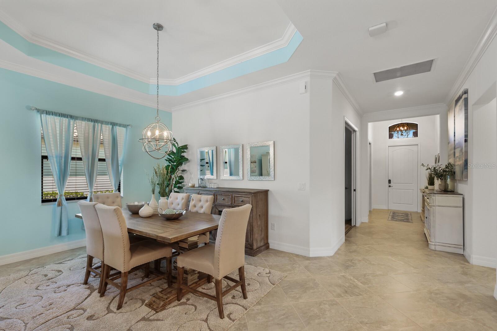- Ceiling Fans(s), Crown Molding, Eat-in Kitchen, High Ceilings, Kitchen/Family Room Combo, Living Room/Dining Room Combo, Open Floorplan, Primary Bedroom Main Floor, Split Bedroom, Stone Counters, Thermostat, Walk-In Closet(s), Window Treatments