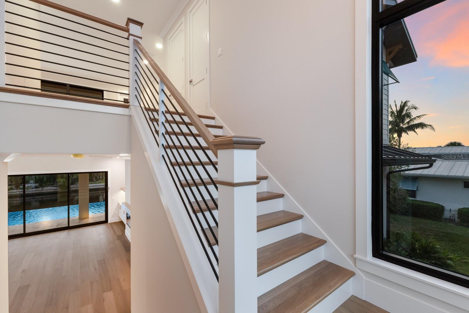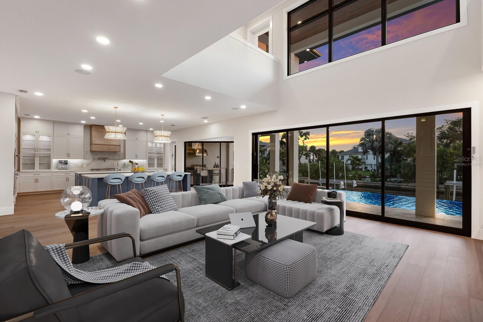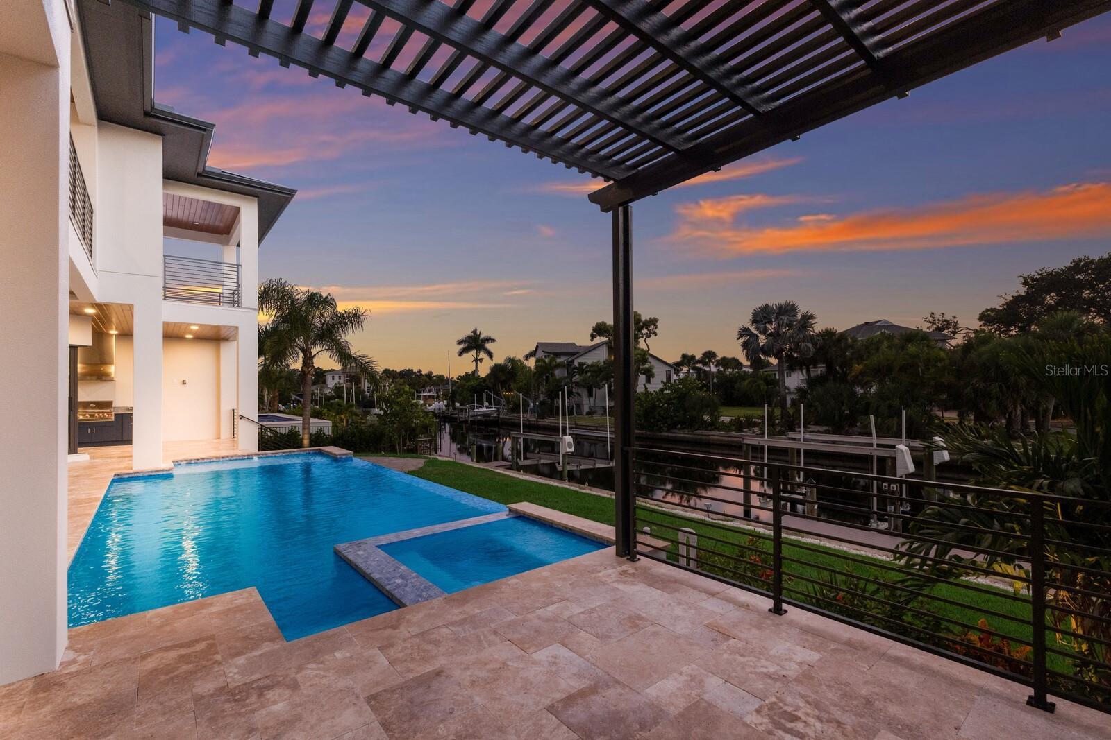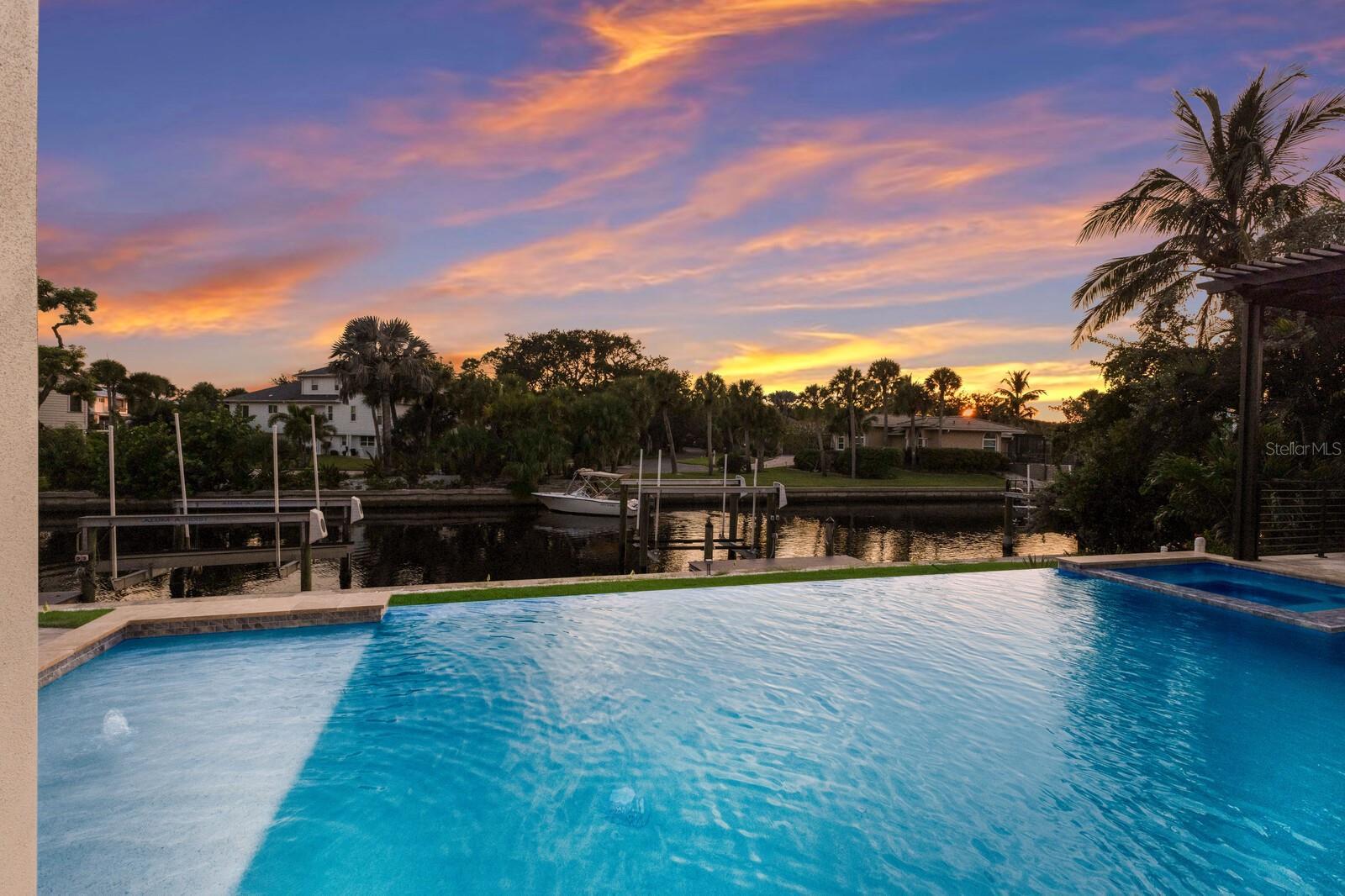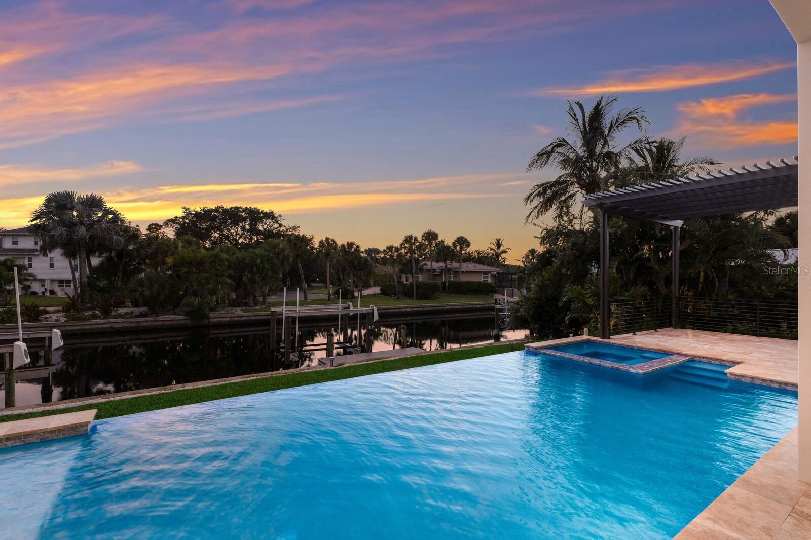 Under contract-accepting backup offers. One or more photo(s) has been virtually staged. Welcome to a brand-new coastal masterpiece that redefines luxury living on world-renowned Siesta Key. Designed with both sophistication and comfort in mind, this waterfront retreat blends timeless architecture with modern amenities, all just moments from Siesta Village and the powdery sands of Siesta Beach. Inside, soaring ceilings and walls of glass bathe the home in natural light, while light wood floors bring warmth and elegance throughout. The heart of the home is a double-island chef’s kitchen, complete with premium appliances, custom cabinetry, and a generous walk-in pantry—perfect for both intimate family meals and grand entertaining. This residence offers four en suite bedrooms, including two primary suites (one upstairs and one downstairs), providing flexibility and privacy for family or guests. An additional private office and 600± SF of unfinished space above the garage present endless possibilities for customization. Seamlessly integrated indoor and outdoor living spaces create a true resort-style atmosphere. Step outside to enjoy multiple balconies, a pool and spa overlooking the water, a fully equipped outdoor kitchen, and a dedicated pool bath. For the boating enthusiast, this property features two boat lifts and quick access—just five minutes by water to the open bay. The location at the end of a quiet dead-end street ensures both serenity and privacy, with the added bonus of no homes directly across the canal, offering wide and peaceful views. This is more than a home; it’s a statement of waterfront luxury and the perfect canvas for your Siesta Key lifestyle. Days on market shows from pre construction. Certificate of occupancy issued September 2025.