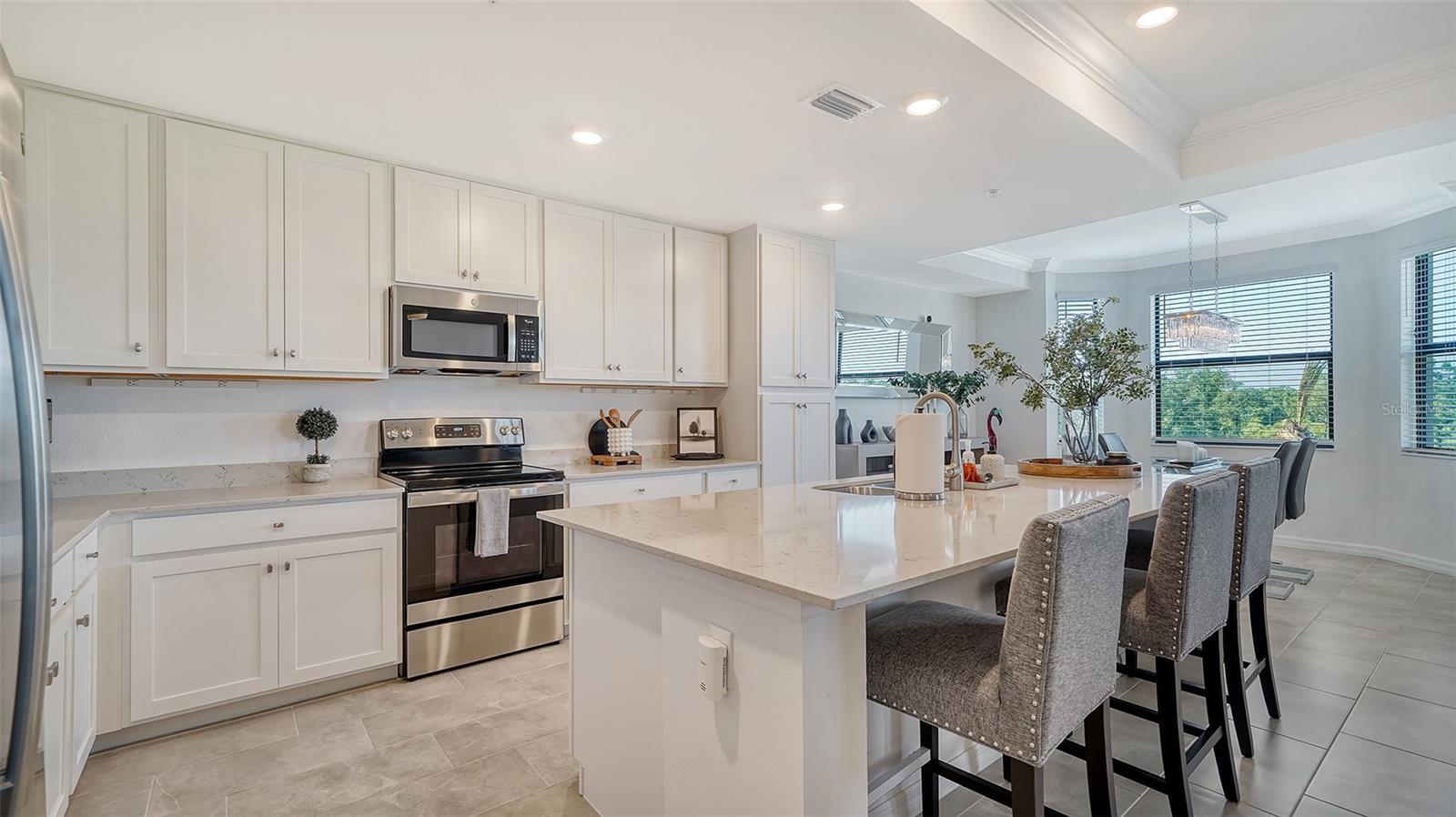 LAKEWOOD NATIONAL GOLF community. The trouble-free tranquility of condo living awaits you in this appealing unit. The feature-rich on-site amenities package includes two Arnold Palmer designed courses featuring 36 holes of championship golf. Resort style main pool with pool-side Tiki bar and casual dining available, 8 lighted Har-Tru tennis courts, 4 pickle ball courts, 2 Har-Tru bocce courts, fitness center, hair salon and spa. The welcoming interior is rich with comforts, offering a beautiful spacious kitchen and is brightened by stylish lighting. The ensuite primary bedroom is a great launch pad for the day. In addition to the convenience of the private bathroom (walk-in shower), you will find two walk in closets for ample closet space to let your wardrobe breathe. The second bedroom offers another quiet place to turn in for the evening. This condo is available for the 2025 winter season. Call Today!!!