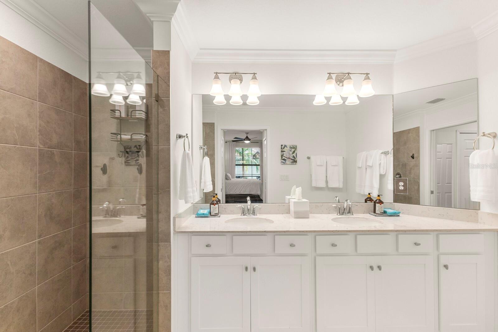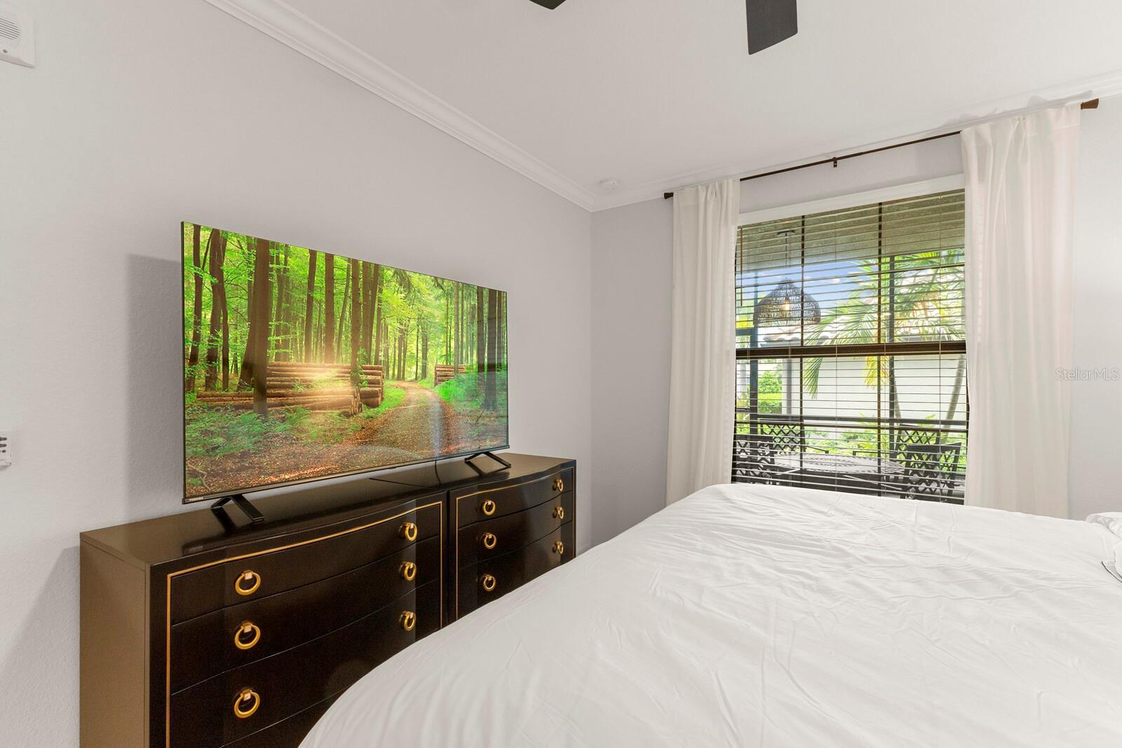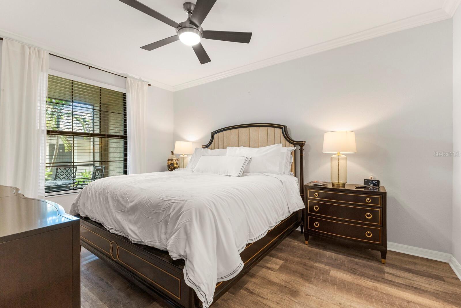 - Ceiling Fans(s), Crown Molding, Eat-in Kitchen, In Wall Pest System, Kitchen/Family Room Combo, Open Floorplan, Split Bedroom, Stone Counters, Thermostat, Walk-In Closet(s), Window Treatments