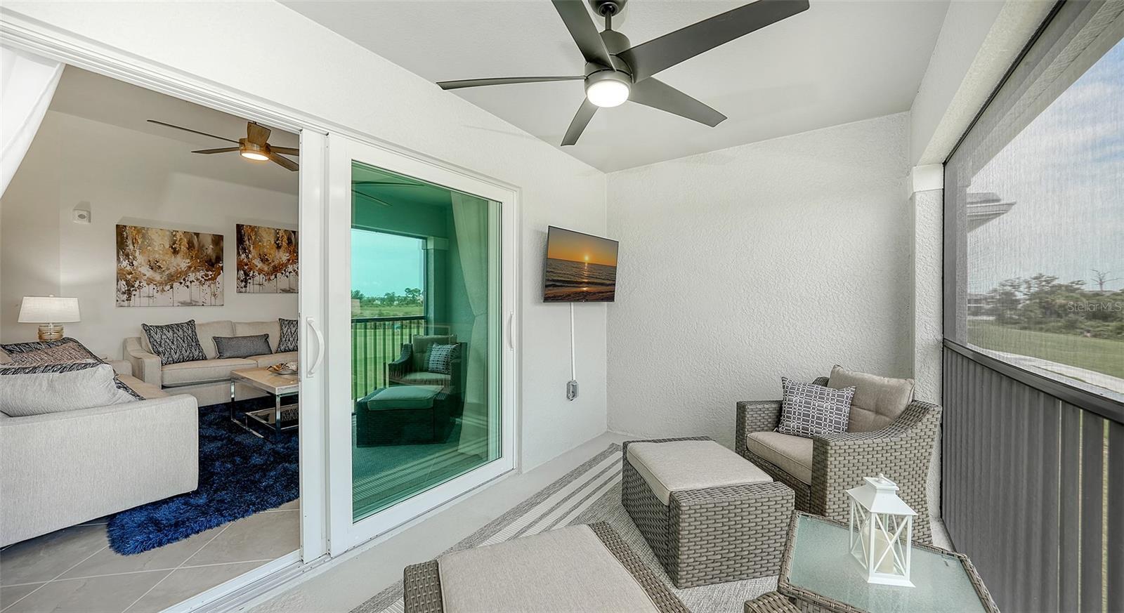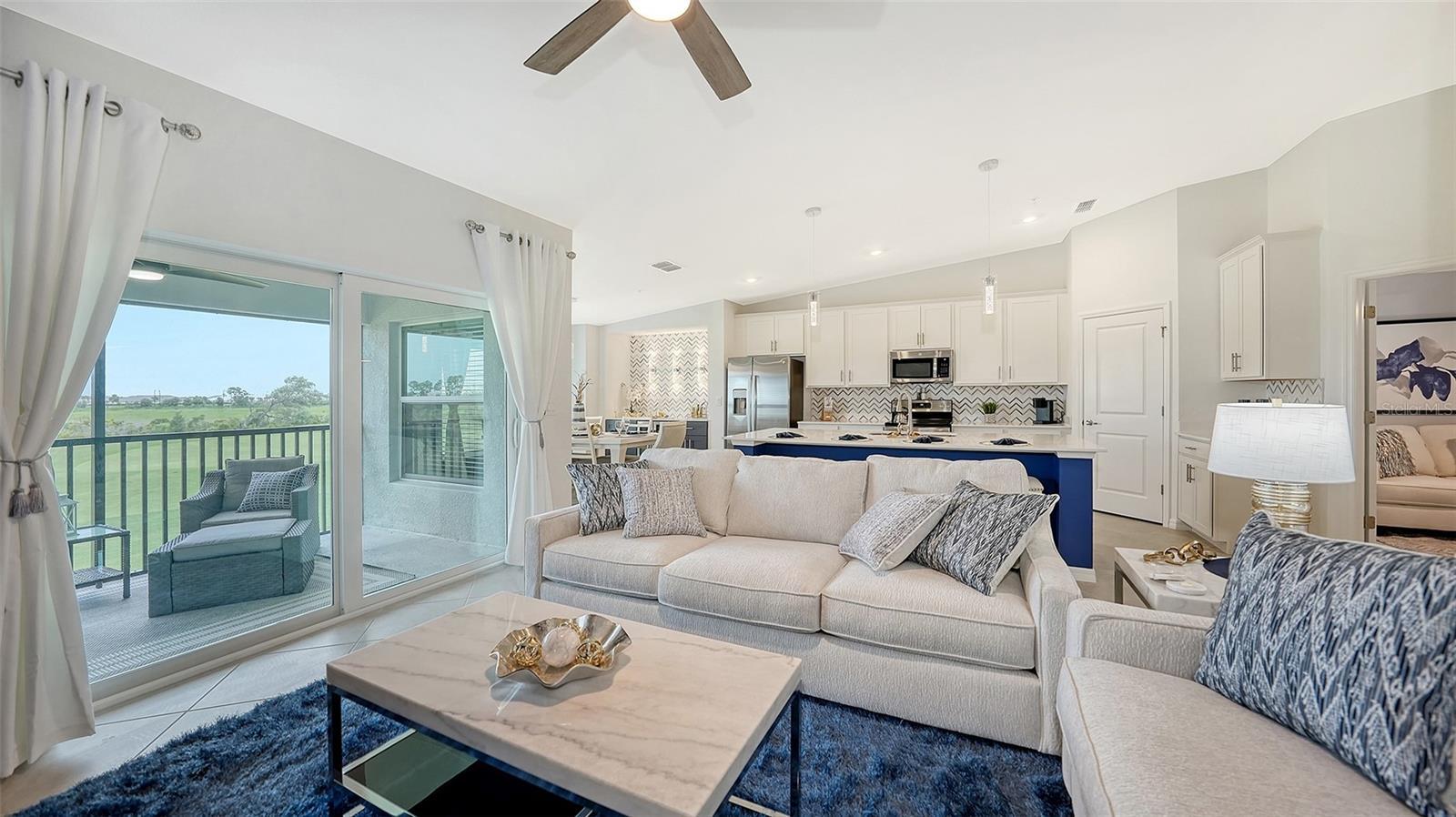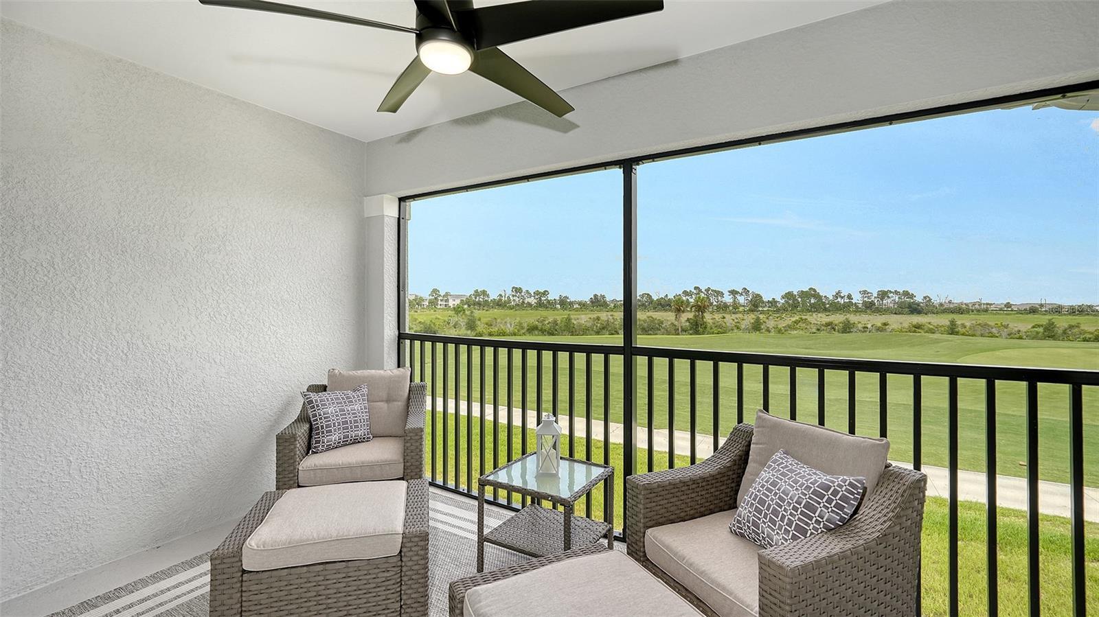 Stunning second floor 2-bedroom 2-bathroom condo with a den has stunning view of the fairway! This turnkey property has been professionally decorated with chic modern flair and upgrades galore which include a custom back splash and a built-in bar with wine refrigerator and upgraded lighting. Enjoy gorgeous sunny days and cross breezes on your very own front and back lanai. Functional open floor plan lends itself to Florida style living and entertaining. Nicely appointed kitchen boasts stainless steel appliances and granite counter tops. Master has king size bed and ensuite bathroom with double sinks and large tile walk in shower. Plenty of room for guests and family. Queen bed in the second bedroom. Third flex room has a pull-out sofa with a desk for additional sleeping quarters or working space. Separate detached 1 car garage for your car, golf clubs and beach gear. Entertain guests and enjoy meals as you watch the golfers navigate this new 18-hole Gordon Lewis designed course from your very own lanai! Amenities include TIKI BAR/RESTAURANT, FITNESS CENTER, RESORT STYLE SWIMMING POOL, POOLSIDE SERVICE, THREE SATELLITE POOLS, TENNIS COURTS, PICKLE BALL, BOCCE BALL AND MORE! Golf membership transfer available for purchase. $65.00 monthly minimum expenditure is required at the on-site Tiki- Bar/Restaurant (Alcohol Excluded). Easy access to I-75, downtown Wellen Park, Atlanta Braves Training stadium and local shopping and dining, minutes to Gulf Beaches and all Wellen Park has to offer. ***HIGH SEASON (DEC-APRIL) RATE~ $6,500.00 PER MONTH*** LOW SEASON (MAY-NOV.)