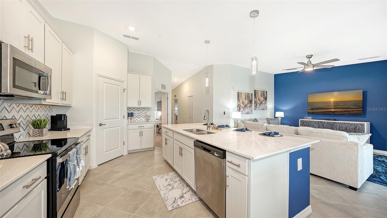 - Ceiling Fans(s), Crown Molding, Eat-in Kitchen, Kitchen/Family Room Combo, Living Room/Dining Room Combo, Open Floorplan, Solid Wood Cabinets, Stone Counters, Thermostat
