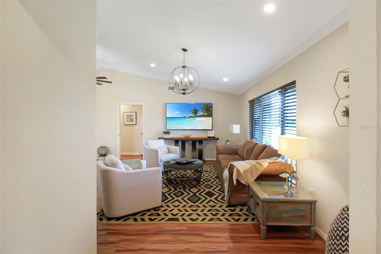 Welcome to Paraclete Paradise! This charming 3-bedroom, 2-bathroom private pool home, nestled in the sought-after community of Deep Creek, Punta Gorda. This delightful residence offers a blend of comfort, privacy, and outdoor enjoyment, making it an ideal choice for families or groups. The spacious primary bedroom is a true haven, featuring direct access to the inviting pool area, where you can start your mornings with a refreshing dip or unwind in the evenings. The primary bathroom has a spacious closet, a large walk-in shower, an updated vanity. The water closet can be accessed from the pool as well from the primary bathroom. The additional two bedrooms are equally comfortable, providing ample space for rest and relaxation. The second bedroom has a queen-size bed, and offers the perfect space to kick back after a long day of adventure. The second bathroom has a large vanity, with a shower/tub combo. The third bedroom has a queen-size bed, with plenty of natural light from the paned window. Step outside to your private oasis, where a sparkling pool awaits, surrounded by a beautifully landscaped, fenced yard. Enjoy al fresco dining under the stars at the outdoor dining area, or gather around the fire pit for warm and memorable nights with family and friends. The heart of the home is the cozy living room, perfect for gathering with loved ones or enjoying a quiet evening. The well-appointed kitchen and dining area are designed for convenience and style, making meal preparation and entertaining a breeze, with a breakfast bar, and lovely dining area overlooking the pool. There is a sleeper sofa to accommodate friends and family. Enjoy a nice relaxing nap in the Florida sunshine with the two twin-size daybeds on the back lanai. Located in the tranquil community of Deep Creek, this home offers the perfect blend of serenity and accessibility, with close proximity to local amenities, parks, and the vibrant attractions of Punta Gorda. House Rule: No smoking. No burning candles inside of lodging. No parties. No use of the fire place. Furry friends welcome, max 2, and require a $200 per pet non-refundable pet fee to be paid directly to the management company. Pool heating is optional, for an additional non-refundable fee of $25 per day + taxes to be paid directly to the management company after the reservation is confirmed. Pool heat request made after guest arrival will incur an additional $45 trip charge.