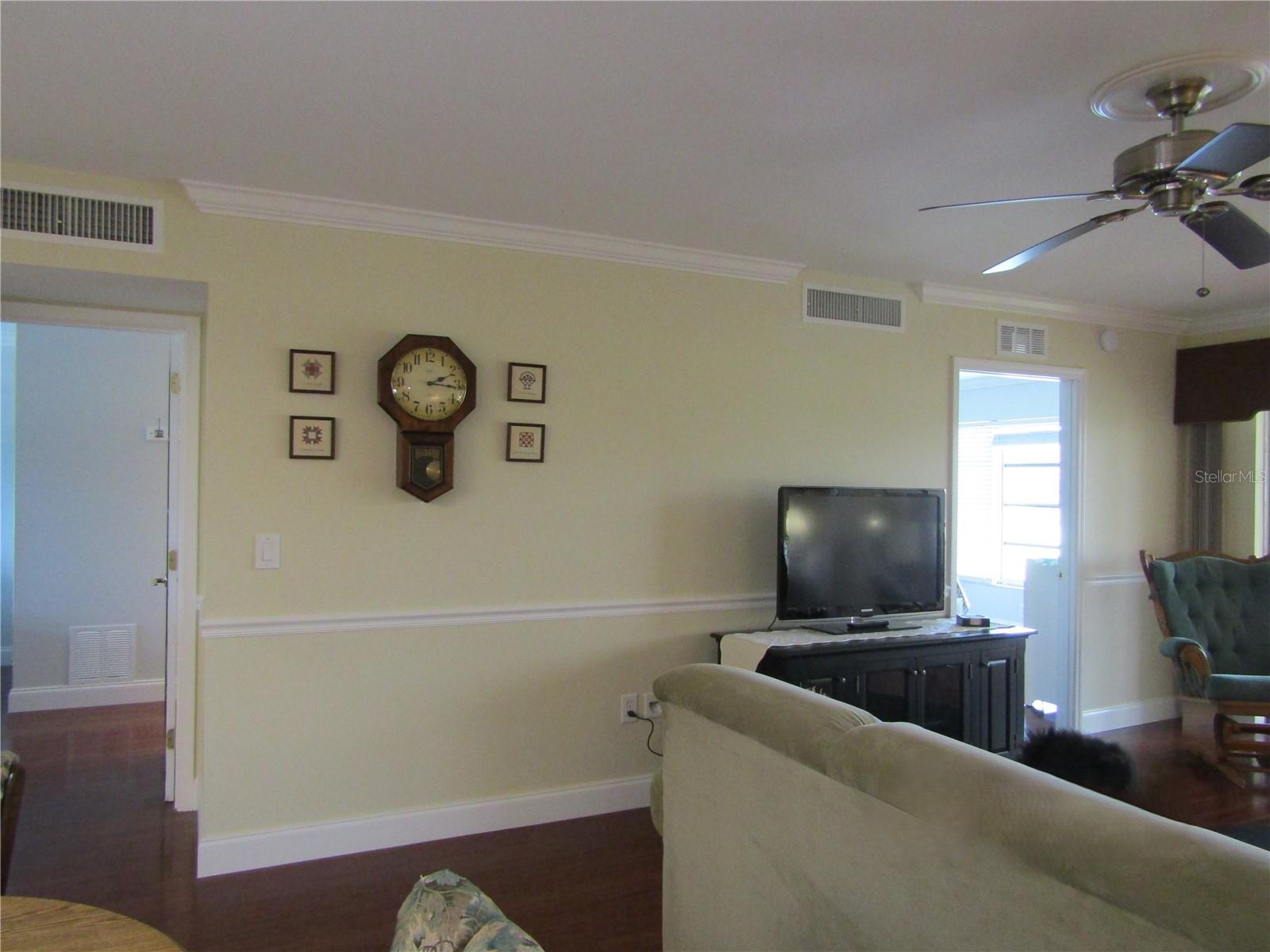 - Ceiling Fans(s), Crown Molding, Eat-in Kitchen, Living Room/Dining Room Combo, Solid Surface Counters, Solid Wood Cabinets, Stone Counters, Thermostat, Walk-In Closet(s), Window Treatments