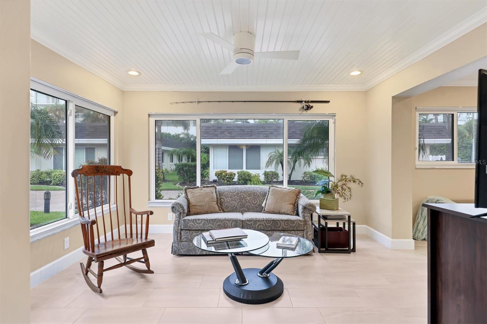 VACATION RENTAL: A gorgeous renovated 2 bedroom, 2 bath Villa located on Lido Key just steps to the beach! Come discover Lido South, a rare beach side treasure located at the south end of Lido Key, From the front entrance you’ll be wowed by the inviting interior. Beautifully designed, light and bright…you’ll feel right at home! A cook’s gem, the sleek kitchen with top-of-the-line appliances includes Subzero, Wolf, and Bosch which overlooks the dining and living room. An extra special feature is the lovely, enclosed lanai with its own TV seating area. The master bedroom retreat has a private bath, large walk-in closet and Smart TV for private viewing. The guest room features a very comfortable queen Murphy bed and closet with private entrance. Both bathrooms are modern, sleek, and functional. A shoji sliding barn door leads to the laundry room which holds an all-in-one washer/dryer, tankless hot water heater, and more storage space. For your added comfort this Villa incudes Wifi, carport and private BBQ grill. Lido South is a friendly, relaxed community with a large Gulf side heated pool with open deck, chaises, chairs and umbrellas, Club room and guest parking. Neighbors gather at the Sun deck at sunset for cocktails, and there is always someone to chat with at the pool. Looking to explore…World famous St. Armand's restaurants and shops and South Lido Park is just a short stroll with exercise trails, kayak launch and mangrove tunnels to explore. No pets and no smoking permitted. Jan - Mar 2026 not available.