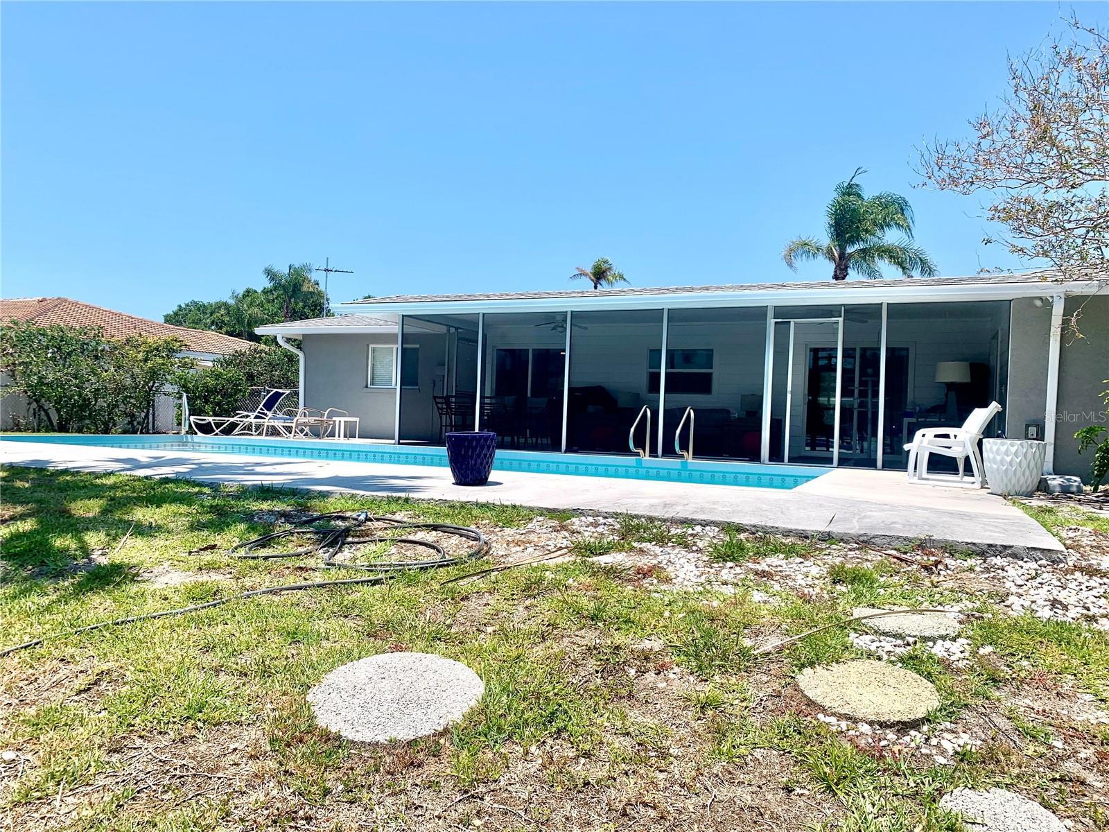 Back on the RENTAL market, after months of post hurricane rehab. Some interior and exterior improvements! Welcome to Heron's Aqua Breeze! This 3-bedroom 2 1/2 bath canal home with pool is back on the short-term rental market and located just 1 and as half miles to world famous SIESTA KEY BEACH! Spacious and well appointed, this home is equipped for a memory making vacation in a tropical paradise, The kitchen was recently remodeled with beautiful cabinetry and new stone counters and has been stocked with everything you might need for a romantic dinner or fun night with the family. Forget about Starbucks, owners have designated a coffee bar area complete with space and specialty appliances to kick start your mornings to lounge on the large private lanai overlooking the pool and canal with your perfect cup of coffee. Tons of natural light spill into every room and dining room looks right out to the canal. There is a large living room with lots of seating on the new and large luxury leather sectional, but also another gathering room to watch TV, read a book, or eat your eggs while watching the morning news. Owners have also appointed an office area with desk for those guests who have to do a little work. The generous sized primary bedroom has a large walk-in closet and has that Tommy Bahama feel. Two guest bedrooms are in the opposite side of the house, along with a bathroom with walk in and accessible shower. One of those guestrooms has a half bath as well. This neighborhood is the closest you get to Siesta Key. Four bikes are provided for guests, but BRING YOUR OWN BOAT, as this home has deep water docking outside your back door and it only takes 4 minutes to get to the Gulf of Mexico! Gorgeous view in the breezy back yard as it is lined with multimillion dollar estates that you will enjoy looking at while you are sipping your late afternoon libation. Go ahead and fire up that gas grill too, because sometimes you just want to stay in tank tops and shorts while enjoying the perfect temperatures Sarasota has to offer. This location is near great restaurants, shopping, and grocery/drug stores. Exterior of home has a driveway in front of a 2 car garage and circular drive space. When you are a guest here, you can't miss Sarasota's exceptional arts and theatre happenings, along with the very hyped about bustling downtown area, and thriving Main Street, located just 5-7 miles away. This property is a slice of heaven, feeling very private, and very casual. Owner will also consider an annual.