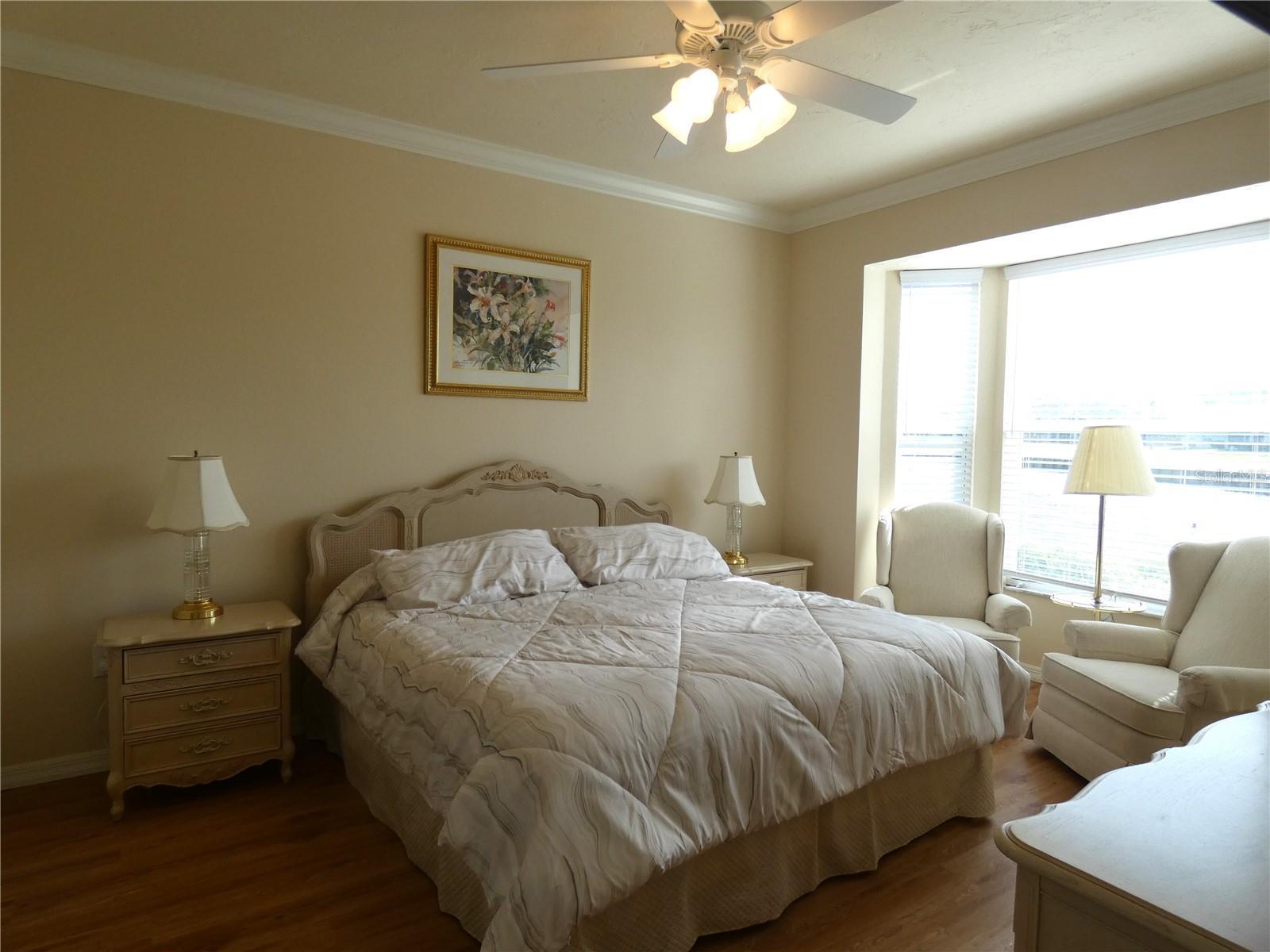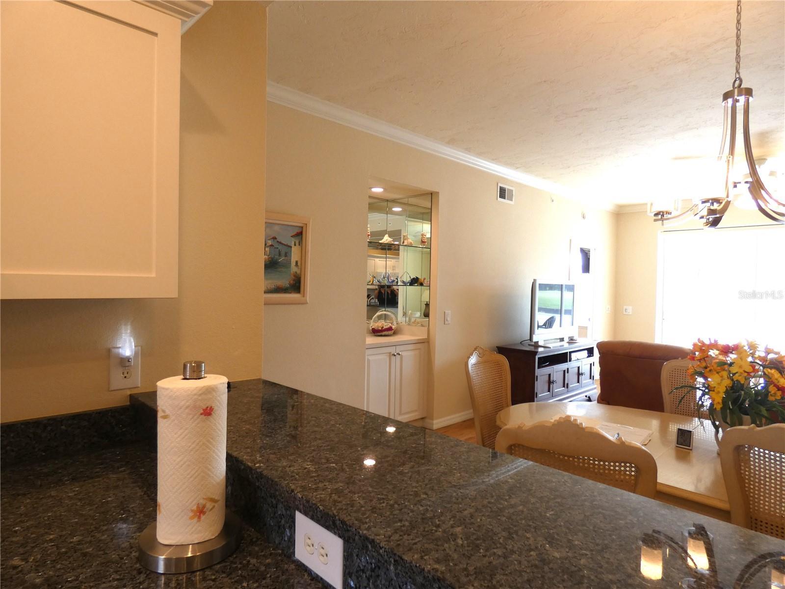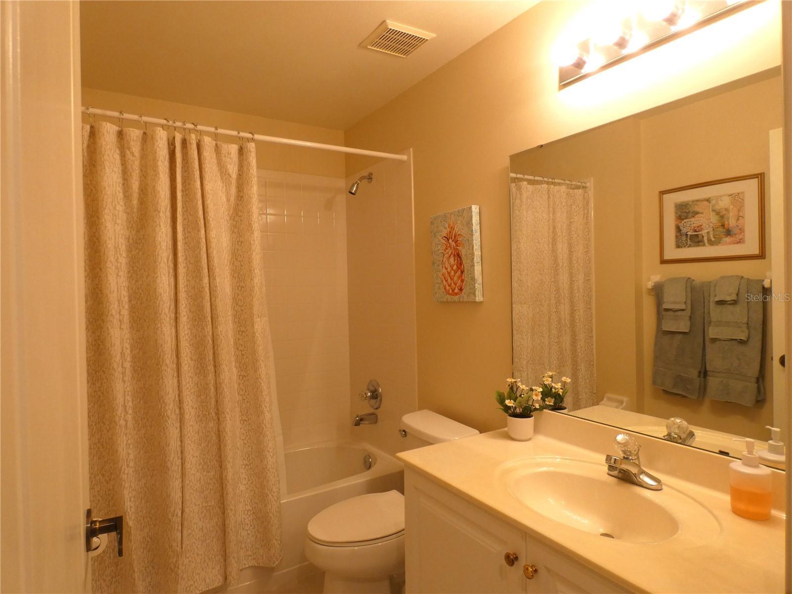 AVAILABLE NOVEMBER & DECEMBER 2025 & MAY THRU DECEMBER 2026: Exceptionally well cared for ground floor condo with vinyl flooring throughout, recently updated kitchen with granite counters and tile floors with breakfast bar that is open to the dining and living area, King bed in master bedroom and walk-in closets plus adjoining bathroom with two sinks and walk-in shower, 2nd bedroom has queen bed and is close to the adjoining guest bathroom. The lanai is glassed in and overlooks an amazing view of the lake and golf course, and there is a one-car detached garage. As an added benefit, the community heated pool and tennis court are directly across from the condo. The golf membership transfers for a fee (call the clubhouse for costs). It allows for the use of all amenities including the main pool, the restaurant, the fitness center, lighted tennis courts, participation in all activities that you would expect from a country club, yoga, card games, etc., and the community borders the Legacy walking and biking trail and is less than 20 minutes from the beaches.