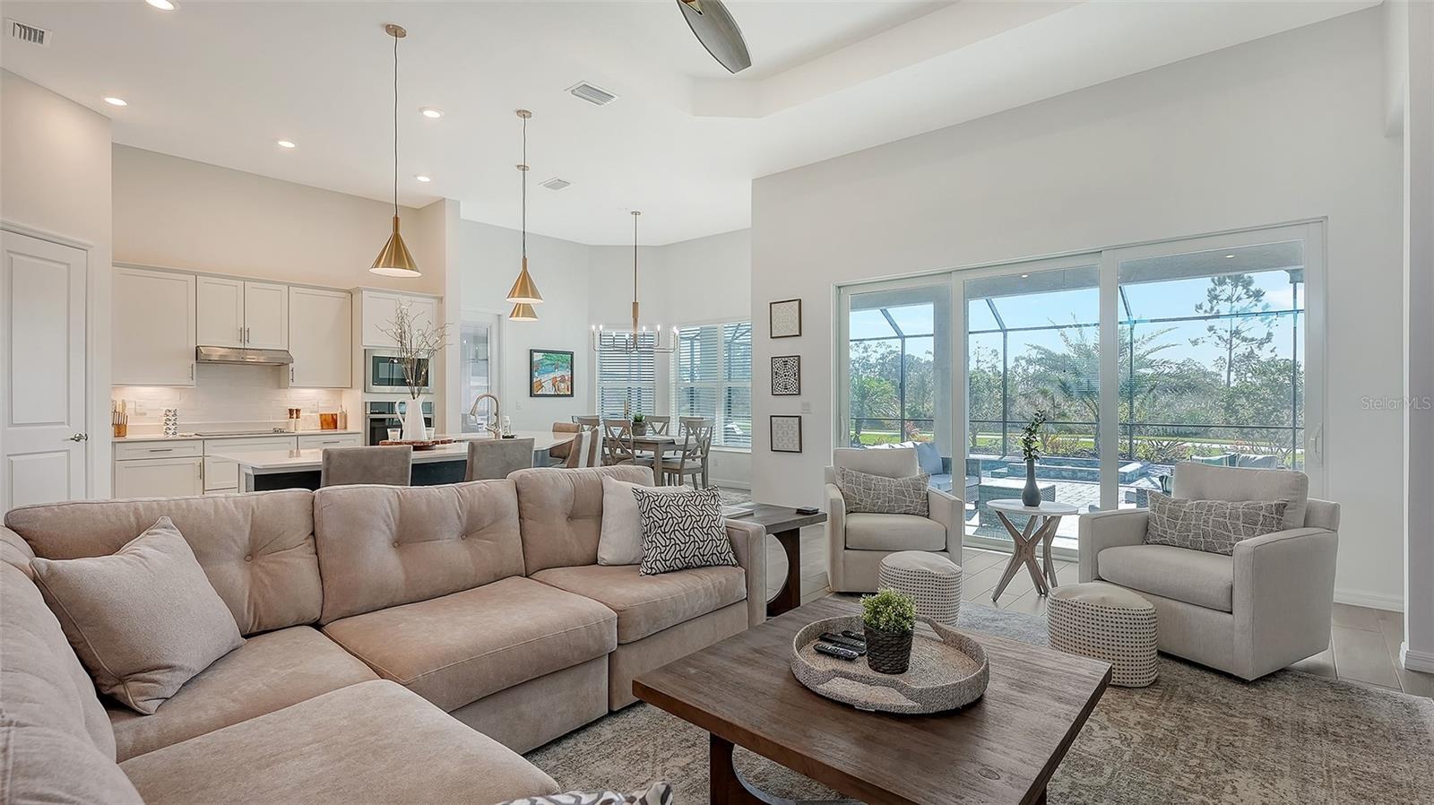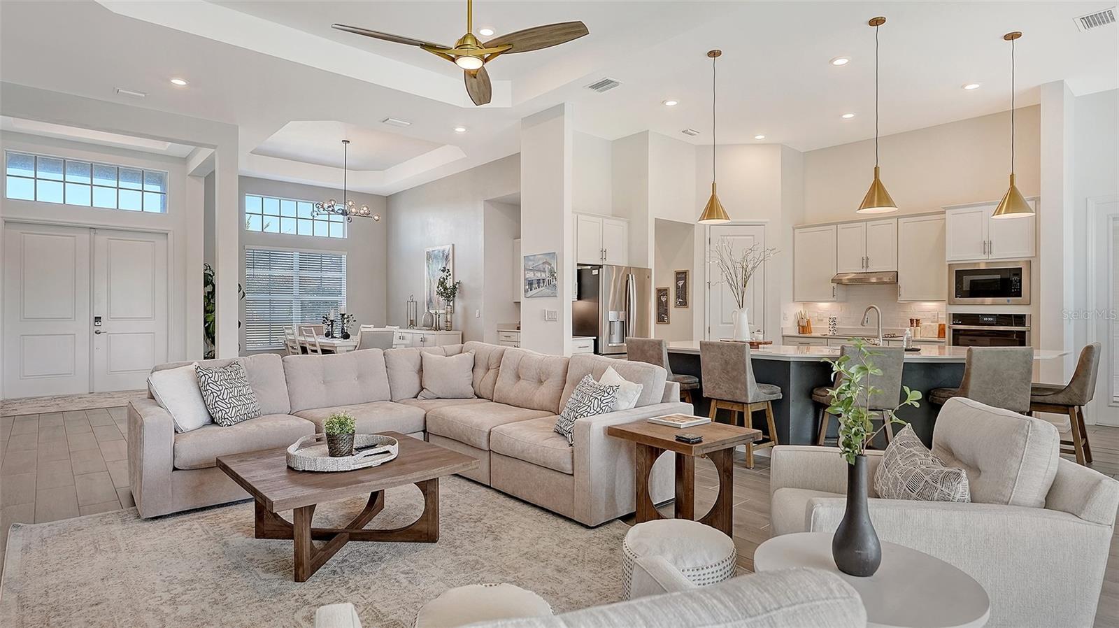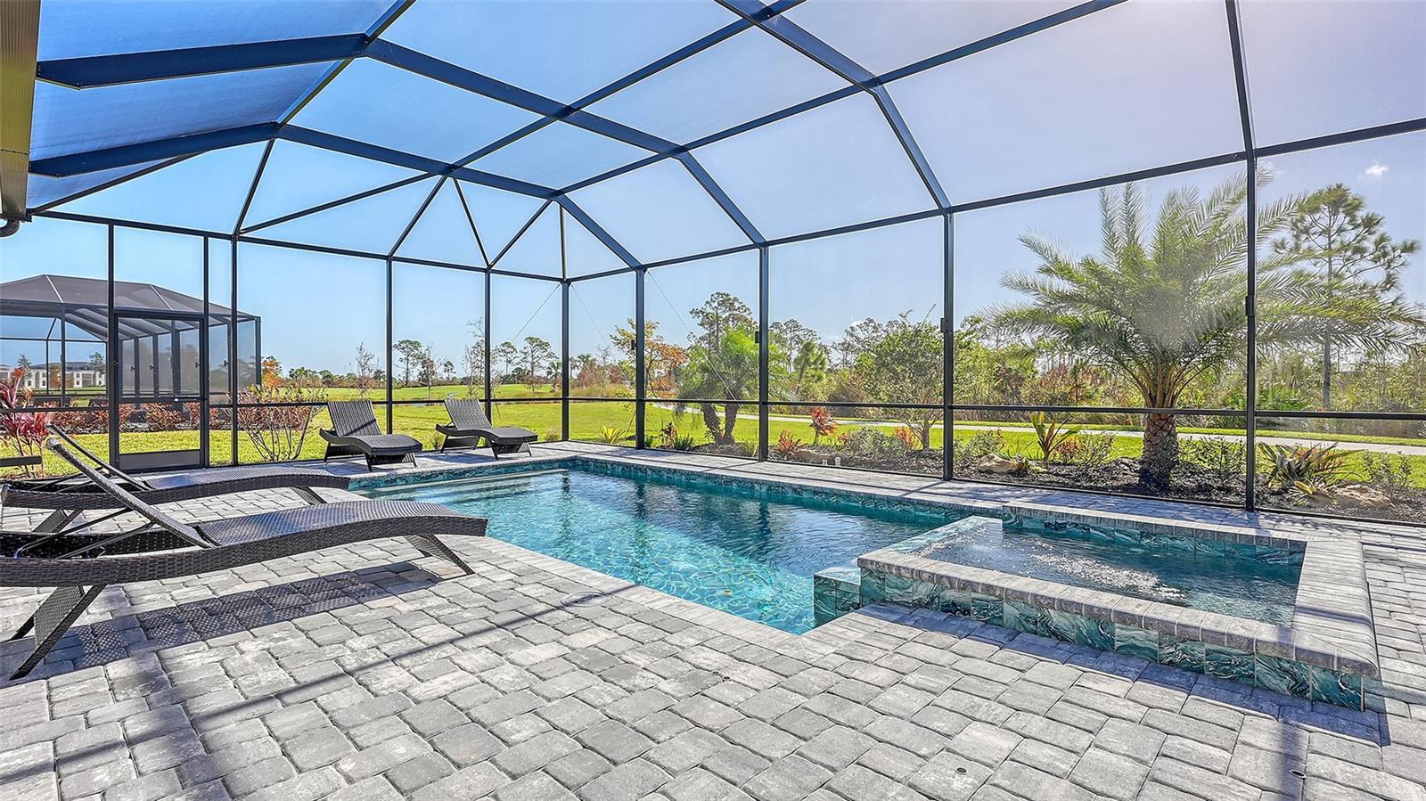 Welcome to Paradise! This gorgeous 3-bedroom 3-bathroom (plus Den) turnkey furnished single family home is located within the gated golf Community of Wellen Park Golf & Country Club. This Bougainvilla II Estate home offers 3,917 sq. ft total (including lanai, garage etc.) a clever open floor plan featuring well thought out living space and delivers an open airy feel designed for Florida resort style living and entertaining. Upgraded lighting, accent walls, built in kitchen and bar and sound system on the lanai with private heated pool and spa are just a few of the upgrades offered throughout with ceiling fans in all bedrooms. The large open kitchen is at the heart of this home and is every cook’s dream with large kitchen island, stainless steel appliances and ample storage. This split-plan offers privacy for owner and guests alike. The Master suite is on one end of the home and offers two walk-in closets, a gorgeous en-suite bath with dual sinks, large walk-in shower and private entry to the lanai. At the other side of the home, an additional master guest bedroom offers its own en-suite bath with access directly to the pool, the third bedroom is just off the kitchen with another full bath nearby across from the laundry room. This home is complete with a home office for those who work from home. This property also offers a street legal golf cart which can be rented for an additional fee! The Bougainvillea II has plenty of room for the whole family. Hurricane impact resistant windows and doors are featured. Take your love of the game to the next level on the newest Gordon Lewis championship golf course. This home is being offered with option to purchase golf membership as well as access to resort style amenities such as main resort style pool, 3 satellite pools, fitness center, tiki bar, pickle ball, tennis courts, bocce ball and more! $65.00 monthly food & Bev. min required at the on-site Tiki Bar. This community is located in close proximity to the Cool Today Atlanta Braves Training Stadium and Downtown Wellen Park which offers an array of shops, live music, events, restaurants, lake, walking trails, kayak and paddle board rentals, farmers market, and more. Only a short distance to our beautiful Gulf beaches. Call for a showing today!