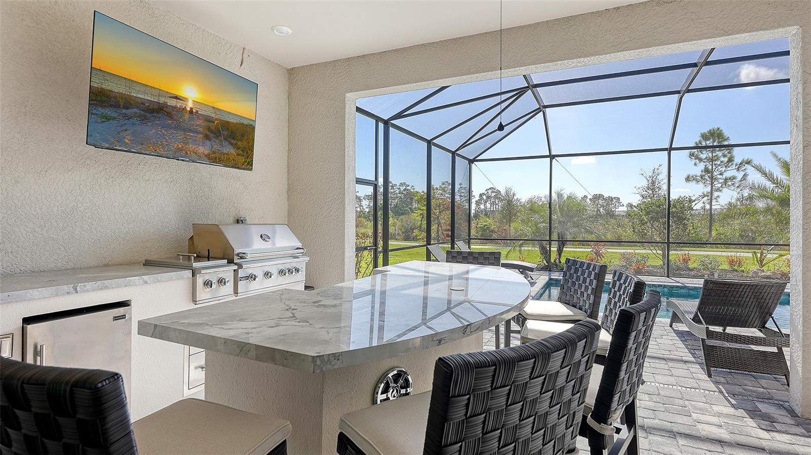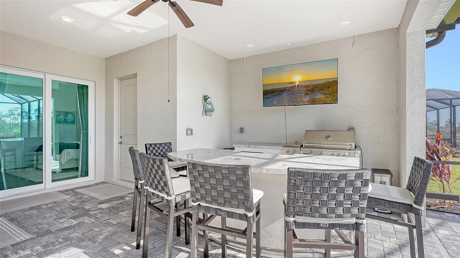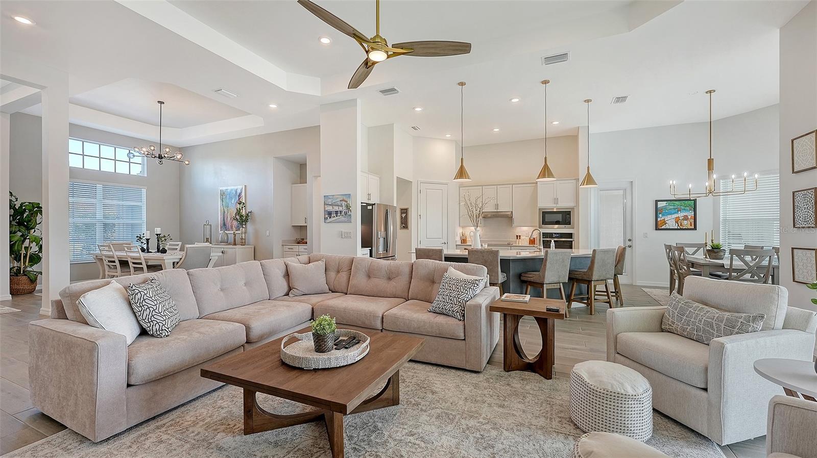 Welcome to Paradise! This gorgeous 3-bedroom 3-bathroom (plus Den) turnkey furnished single family home is located within the gated golf Community of Wellen Park Golf & Country Club. This Bougainvilla II Estate home offers 3,917 sq. ft total (including lanai, garage etc.) a clever open floor plan featuring well thought out living space and delivers an open airy feel designed for Florida resort style living and entertaining. Upgraded lighting, accent walls, built in kitchen and bar and sound system on the lanai with private heated pool and spa are just a few of the upgrades offered throughout with ceiling fans in all bedrooms. The large open kitchen is at the heart of this home and is every cook’s dream with large kitchen island, stainless steel appliances and ample storage. This split-plan offers privacy for owner and guests alike. The Master suite is on one end of the home and offers two walk-in closets, a gorgeous en-suite bath with dual sinks, large walk-in shower and private entry to the lanai. At the other side of the home, an additional master guest bedroom offers its own en-suite bath with access directly to the pool, the third bedroom is just off the kitchen with another full bath nearby across from the laundry room. This home is complete with a home office for those who work from home. This property also offers a street legal golf cart which can be rented for an additional fee! The Bougainvillea II has plenty of room for the whole family. Hurricane impact resistant windows and doors are featured. Take your love of the game to the next level on the newest Gordon Lewis championship golf course. This home is being offered with option to purchase golf membership as well as access to resort style amenities such as main resort style pool, 3 satellite pools, fitness center, tiki bar, pickle ball, tennis courts, bocce ball and more! $65.00 monthly food & Bev. min required at the on-site Tiki Bar. This community is located in close proximity to the Cool Today Atlanta Braves Training Stadium and Downtown Wellen Park which offers an array of shops, live music, events, restaurants, lake, walking trails, kayak and paddle board rentals, farmers market, and more. Only a short distance to our beautiful Gulf beaches. Call for a showing today!