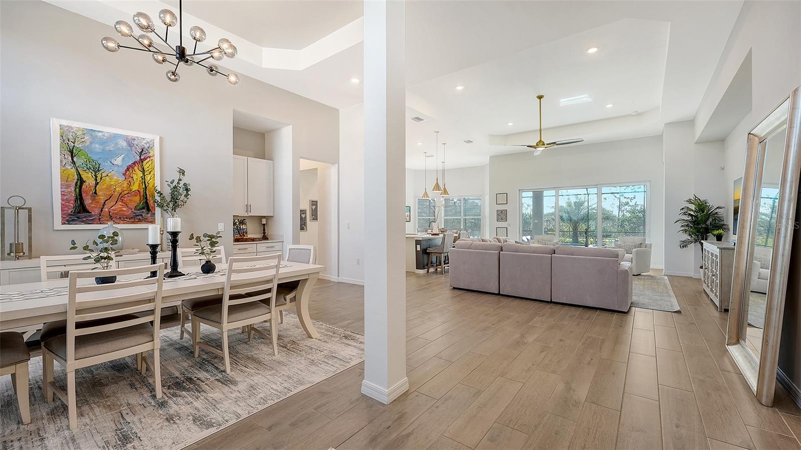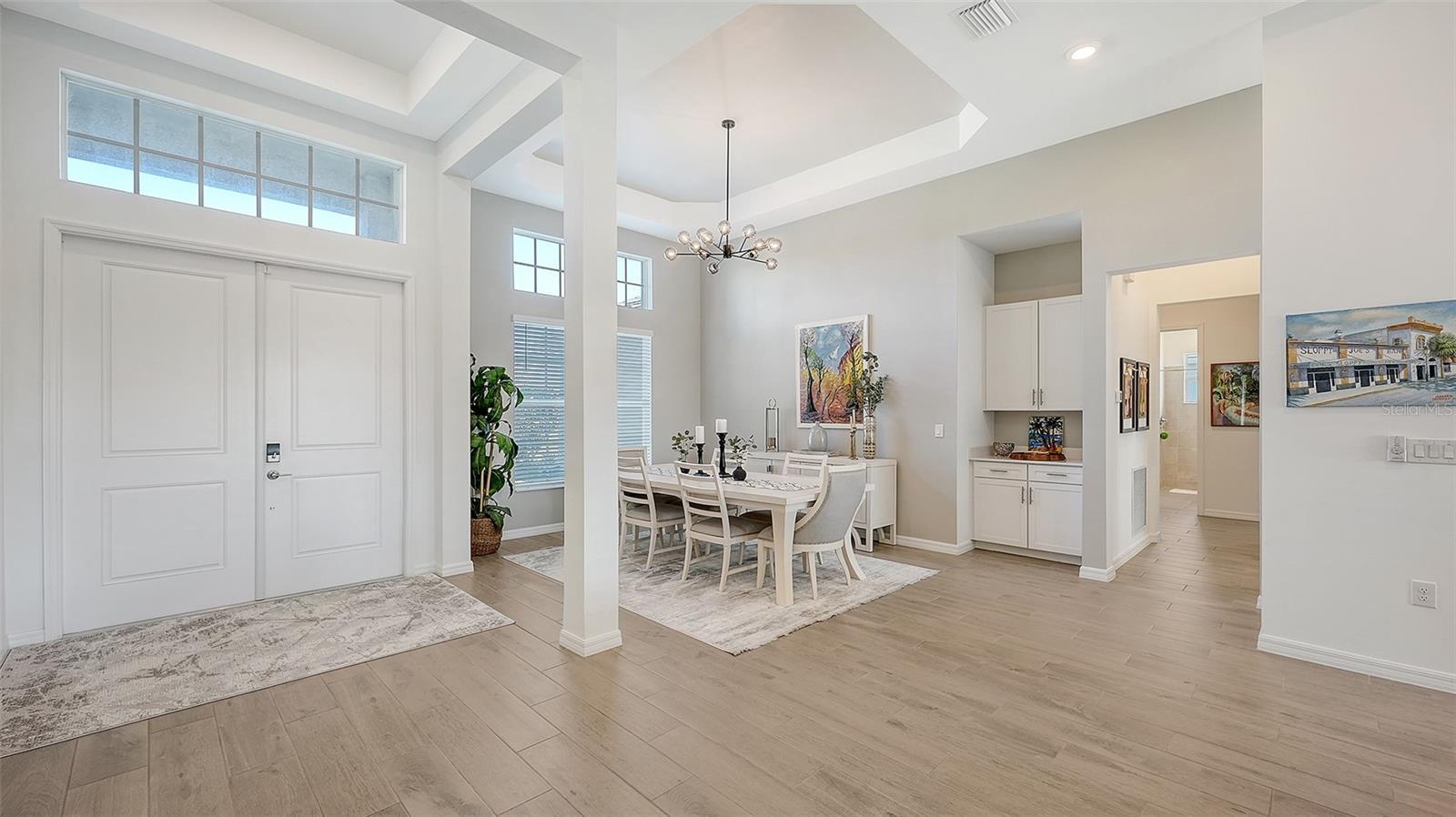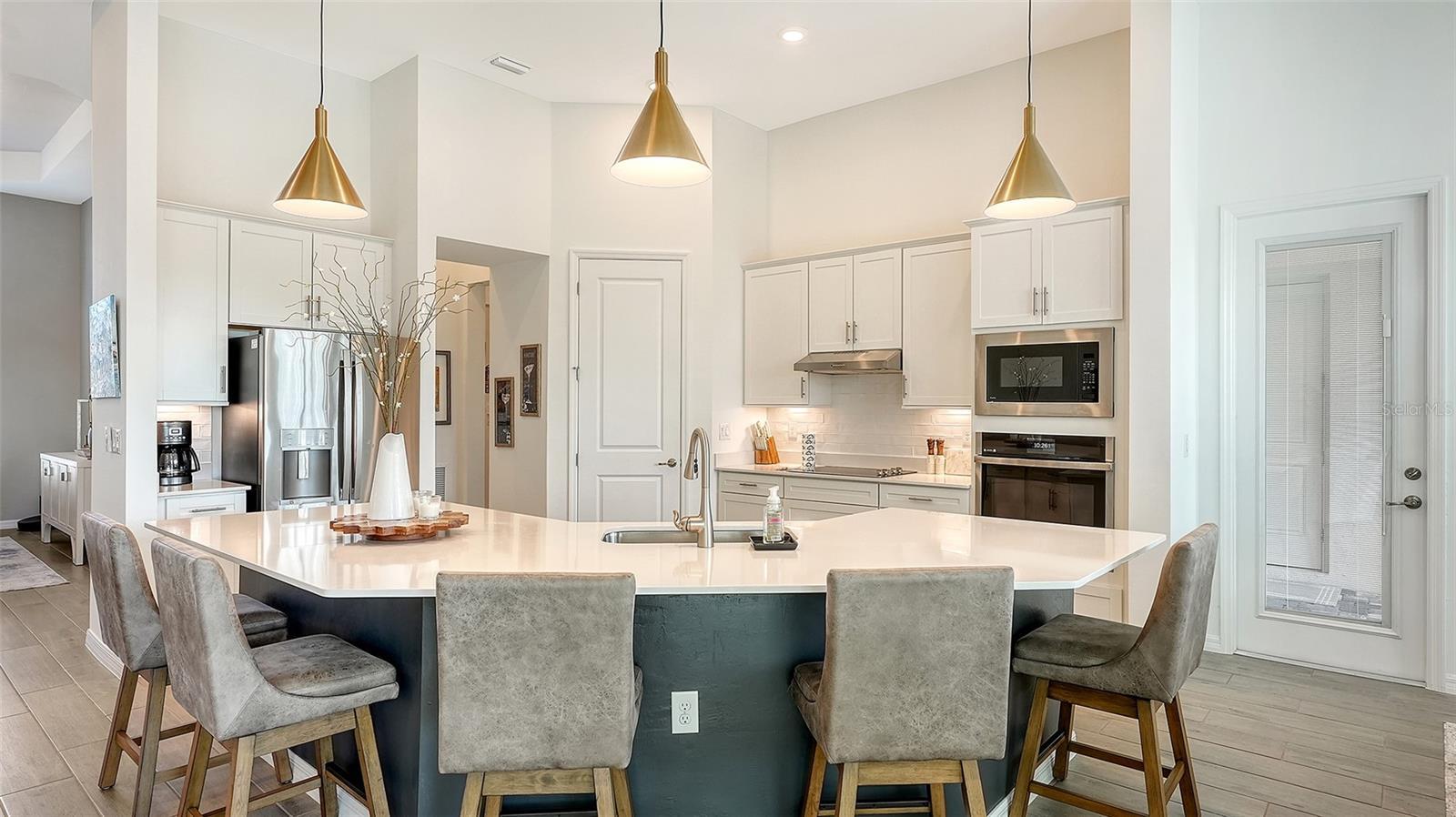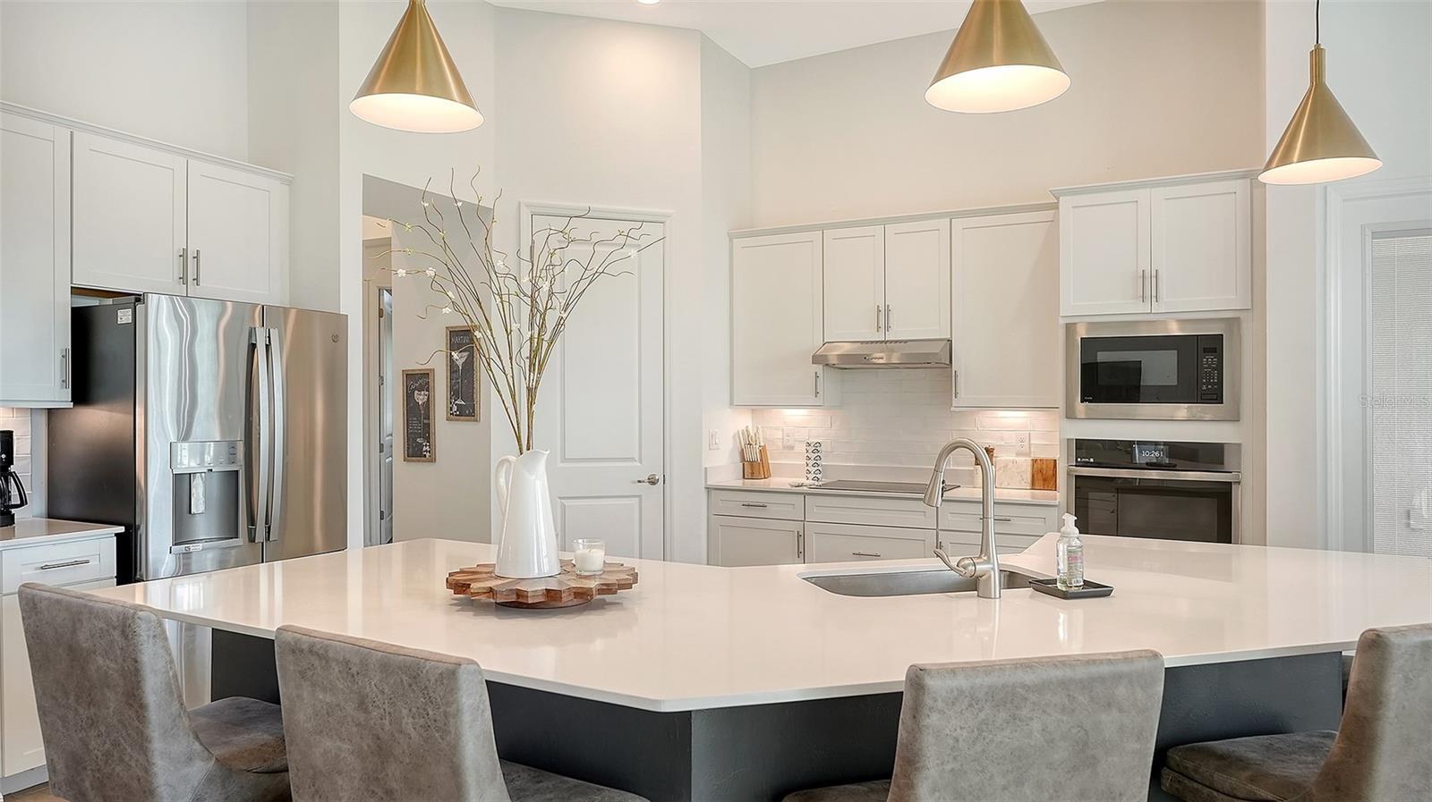 - Crown Molding, Dry Bar, Eat-in Kitchen, High Ceilings, In Wall Pest System, Kitchen/Family Room Combo, Open Floorplan, Stone Counters, Thermostat, Walk-In Closet(s)