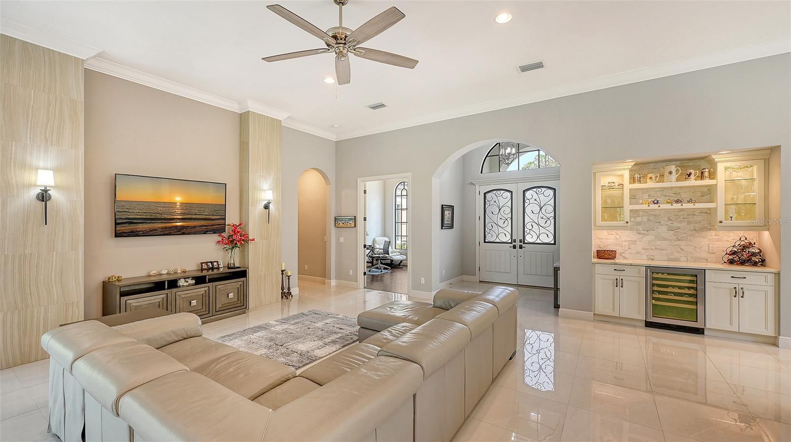 Welcome to 9291 Swaying Branch Road—a luxurious private retreat set on one of the largest estate lots in The Forest at Hi Hat Ranch. This exclusive 270-acre gated enclave in the heart of Sarasota, Florida, is home to only 54 custom residences, each uniquely designed with no architectural repeats, offering an unmatched level of privacy, character, and distinction. Enjoy the rare expanse of a 5.95-acre homesite, providing an exceptional sense of space and seclusion. This single-story residence blends elegance, functionality, and thoughtful design throughout. Inside, three generously sized bedrooms—each with its own en suite bathroom—ensure comfort and privacy for family and guests. The home also features two dedicated studies, ideal for dual work-from-home needs, plus a versatile bonus room that can transform into a game room, theater, gym, or even a fourth bedroom. Step outside to your personal resort-style sanctuary. The saltwater pool is positioned for maximum privacy and surrounded by lush, mature landscaping and expansive patio space. A gourmet outdoor kitchen, cozy fire pit, and covered lanai create the perfect setting for year-round entertaining or peaceful relaxation. Built to current hurricane codes, the home offers full hurricane-impact windows for maximum peace of mind. Foam insulation in the attic enhances energy efficiency, and a whole-home water system—with reverse osmosis in the kitchen—ensures exceptional water quality. The property is also prewired for a whole-home generator, providing an added level of security and readiness during storm season. The chef’s kitchen impresses with premier appliances including a Sub-Zero refrigerator, Miele range and oven, and a dedicated wet bar with wine fridge—ideal for effortless entertaining. Tucked within a quiet, gated community and just minutes from top-rated schools, upscale shopping, fine dining, and Sarasota’s vibrant cultural amenities, this home offers the pinnacle of privacy and convenience. 9291 Swaying Branch Road is more than a home—it’s a lifestyle. Schedule your private showing today and experience the space, serenity, and sophistication of this exceptional Sarasota estate.