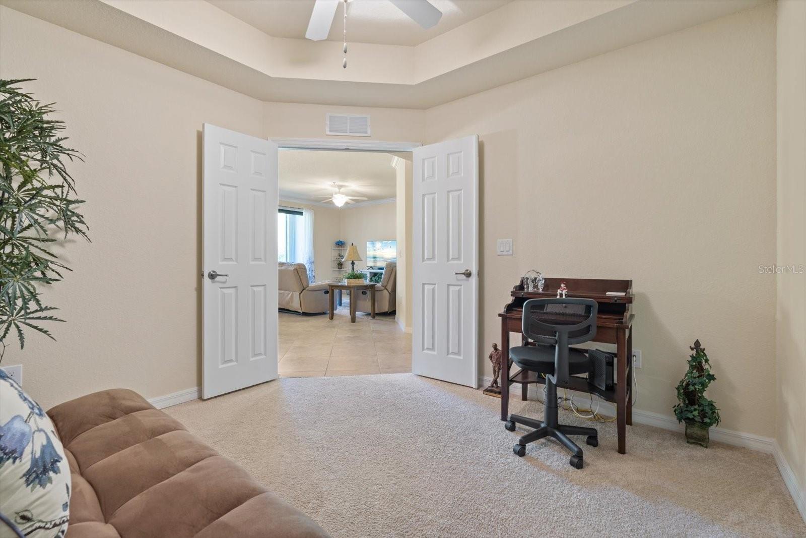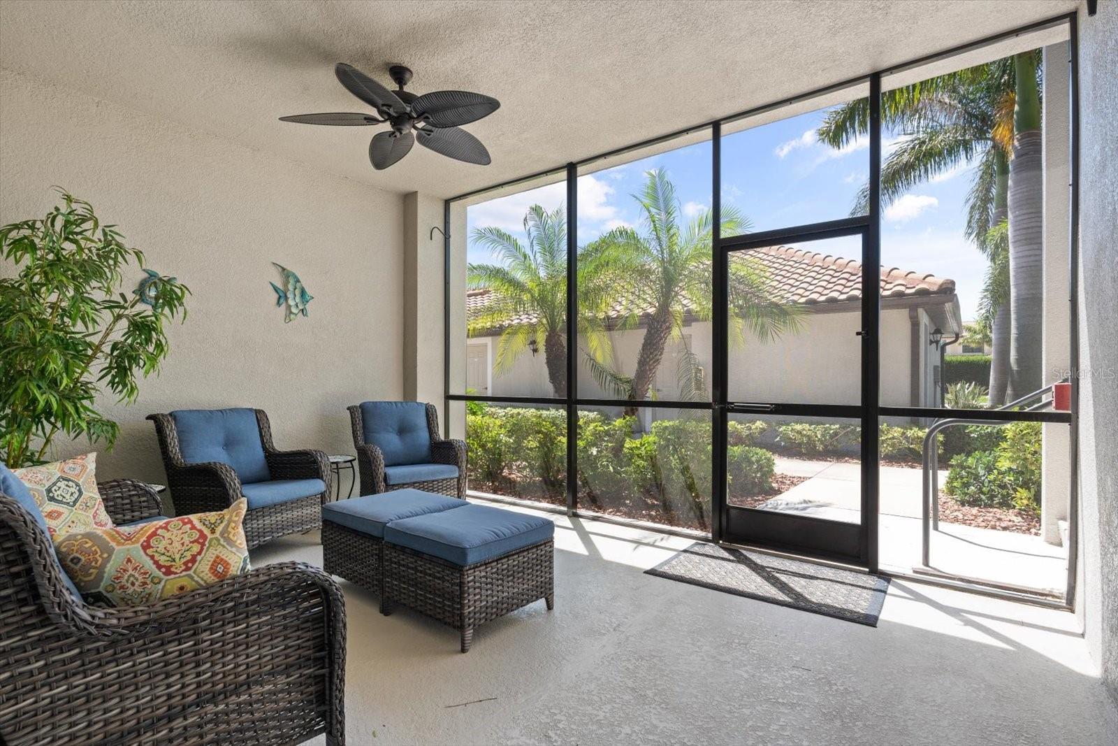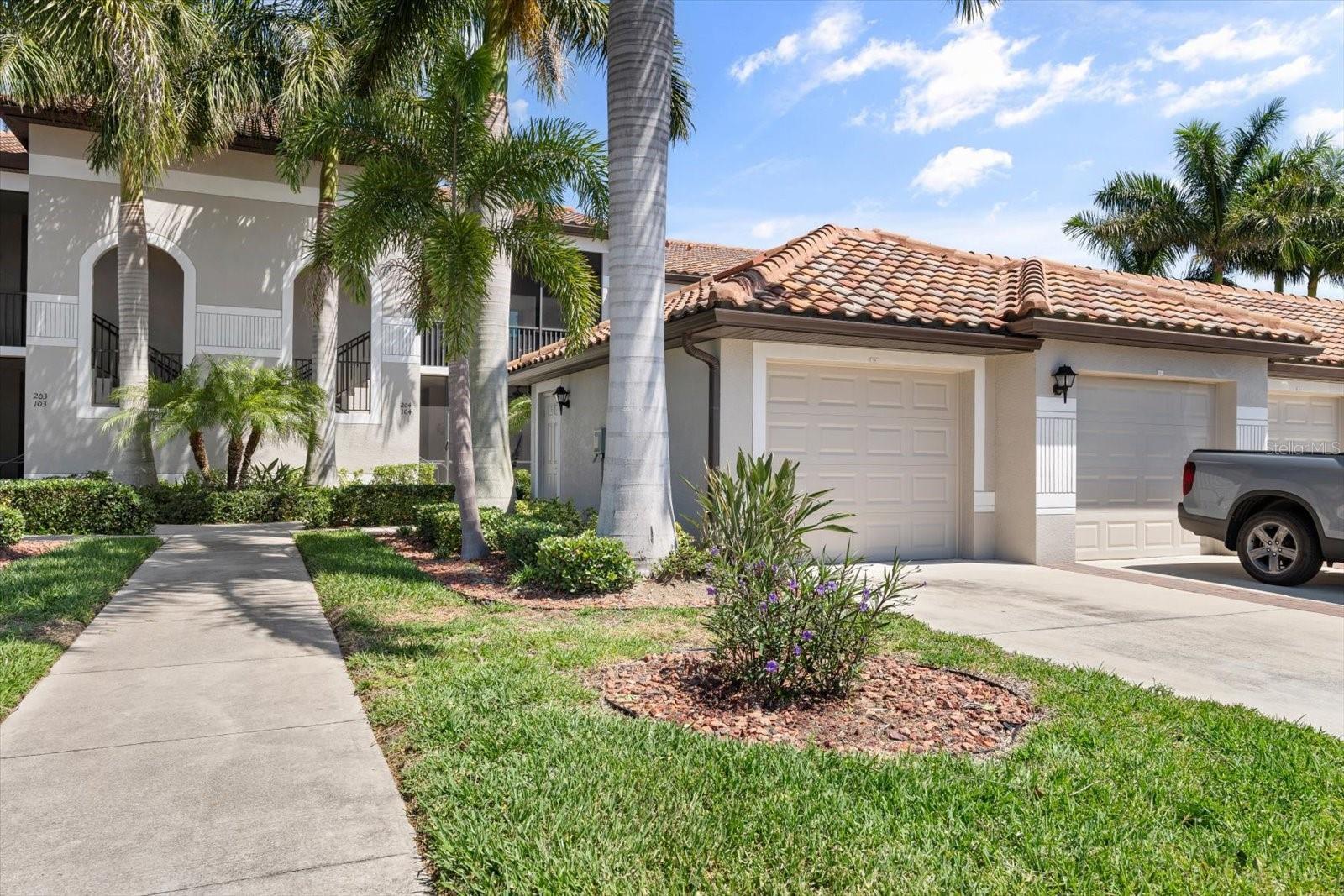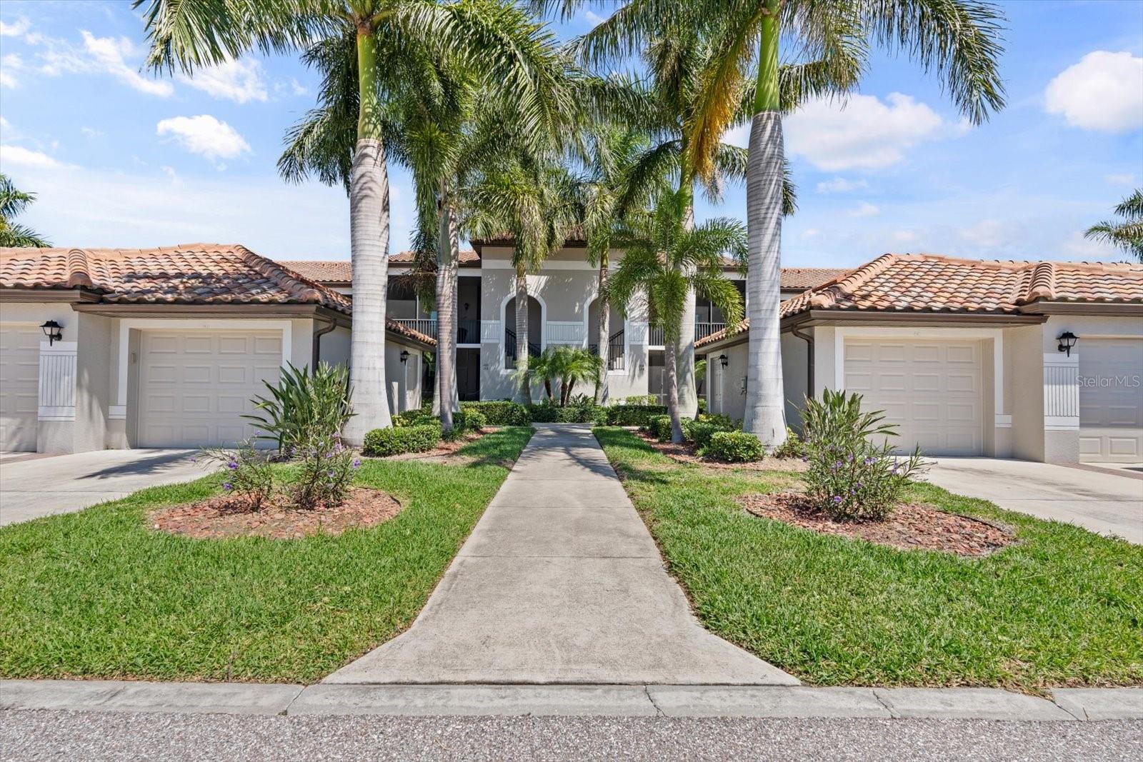 GROUND FLOOR CONDO. OPEN FOR 2/1/2026 - 3/30/26 RESERVATION. River Strand Ground. Golf anyone? Ground floor bright, open plan Veranda unit with 2 bedrooms, 2 bathrooms, den with doors, 2 lanais and a detached garage with GOLF privileges. Experience the epitome of luxury living in this stunning ground floor Veranda condo nestled within the prestigious River Strand, a renowned Resort Style Golf Community. Boasting 2 bedrooms, 2 bathrooms, and a den, this gorgeous residence offers unparalleled comfort and tranquility. Marvel at private panoramic views of the lush greenbelt and breathtaking sunsets from your own veranda. The master bedroom features a lavish King size bed, a flat-screen TV, and a spacious walk-in closet. The adjoining master bathroom is a sanctuary with a vast shower and double sinks, providing ample counter space. The guest bedroom offers two Twin beds and is conveniently located near the second bathroom, equipped with a shower/tub combination. The den, thoughtfully designed as a comfortable office and reading room, also doubles as a guest space with a Queen size sofa bed for visiting family and friends. With two screened lanais – one in the front and another in the back – furnished with cozy seating, you can unwind in your private paradise, savoring the tranquility of your surroundings. Inside, an open-concept layout seamlessly connects the family room, kitchen, formal dining area, and breakfast nook. The kitchen is a chef's delight, featuring granite countertops, stainless steel appliances, a substantial pantry, and a breakfast bar. Enjoy your meals in the breakfast nook overlooking the family room, which boasts movie-style couches and a flat-screen TV that opens to the refreshing back lanai. This exceptional condo also includes a one-car detached garage for your convenience. Residents have access to a nearby heated pool, and there are seven pools scattered throughout the community for your enjoyment. As part of the River Strand community, when you transfer the membership, you'll have access to outstanding amenities, including 27 holes of championship golf, eight illuminated tennis courts, resort-style pools, a spa, a spacious fitness center, two restaurants, bars, and much more. Current membership price is $572.45 per family. Conveniently located near downtown Bradenton, downtown Sarasota, Lakewood Ranch, beaches, UTC Mall, University Parkway, Lakewood National, and I-75, this condo offers the perfect blend of convenience and luxury. Please note that pets are not allowed. Whether you're seeking a vacation home, short-term rental, corporate housing, or a golf retreat, this unit is your ticket to paradise. WELCOME HOME! Short term rentals, seasonal rentals, corporate rentals, Baseball Spring Training, IMG, Tennis, Golf, Lecom, Medical students housing.