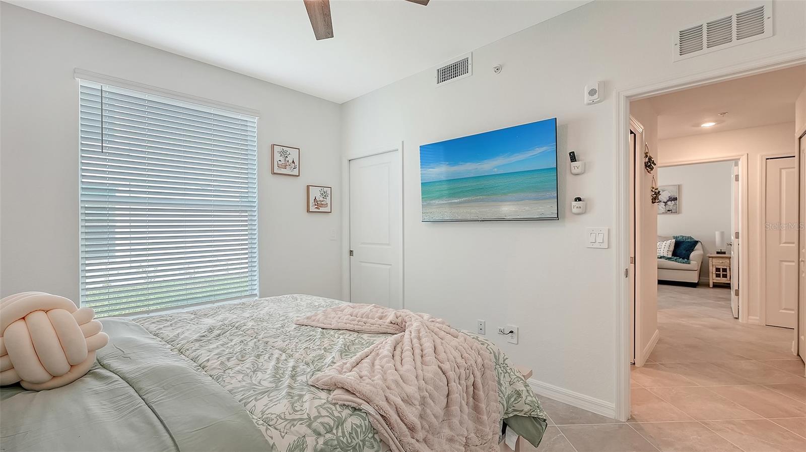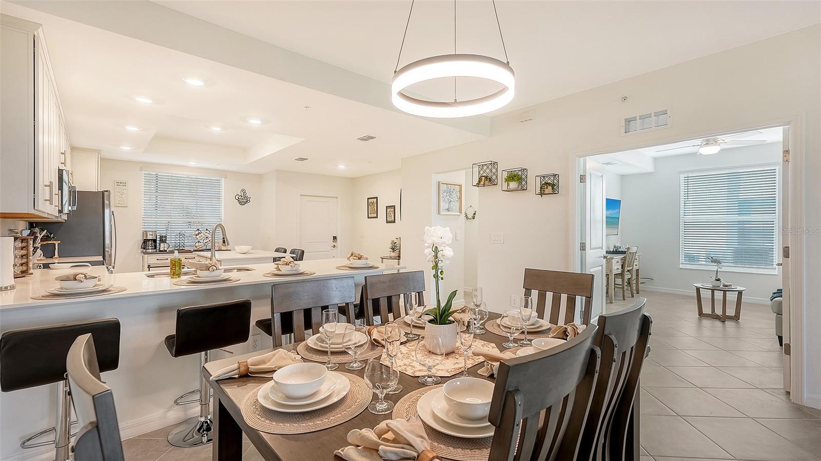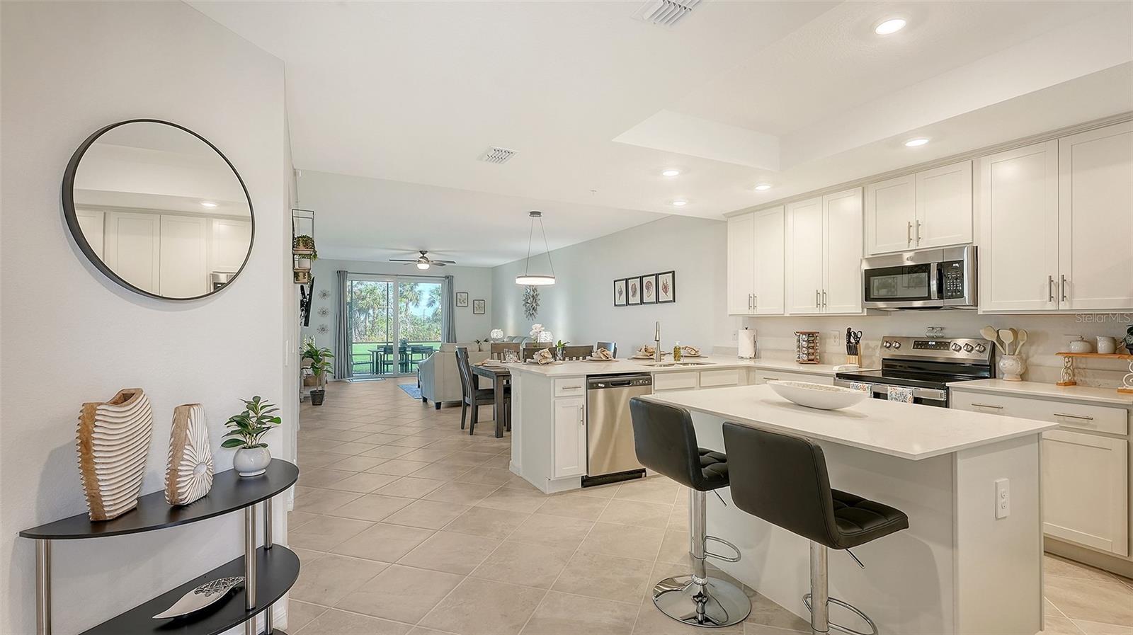 Gorgeous professionally decorated Arabella II end unit on the first floor in the premier Golf Community of Wellen Park Golf & CC. This clever open floor plan is the largest of the Veranda Homes featuring 1,569 sq. ft. of well thought out living space, 1,886 including both screened in lanai's on the front of the condo and the back. This home also offers a den with a desk and a queen size sofa bed that can be used as an office or additional guest quarters. This home has been professionally decorated with coastal chic furnishings and a soothing color pallette. Master bedroom features an en-suite bath with double sinks walk-in shower and closets. Guest room is located at the front of the home and offers a queen bed. This home is well stocked with all the comforts of home including a coffee bar. Enjoy morning coffee and evening meals on your screened in lanai. Entertain guests and enjoy hours of entertainment as you watch players navigate this new and exciting Gordon Lewis designed 18- Hole Championship Golf Course! Just a short walk to the Tiki bar for a bite and refreshments. Come and experience resort style living in Wellen Park's newest golf Community! Amenities will include: TIKI BAR WITH POOLSIDE FOOD & BEVERAGE SERVICE, FITNESS CENTER, RESORT STYLE SWIMMING POOL, THREE SATELLITE POOLS, TENNIS AND BOCCE COURTS AND MORE! Golf Membership transfer available. $65.00 monthly min. expenditure is required at the on-site Tiki Bar/Restaurant (Alcohol Excluded). Easy access to I-75, shopping, dining, Farmers market, live music and more in downtown Wellen Park. Close proximity to the Cool Today Atlanta Braves Stadium, gulf beaches and downtown Venice, THIS FURNISHED PROPERTY IS AVAILABLE FOR A LONG OR SHORT TERM RENTAL- All utilities paid with monthly cap. Includes WIFI, cable and electricity.