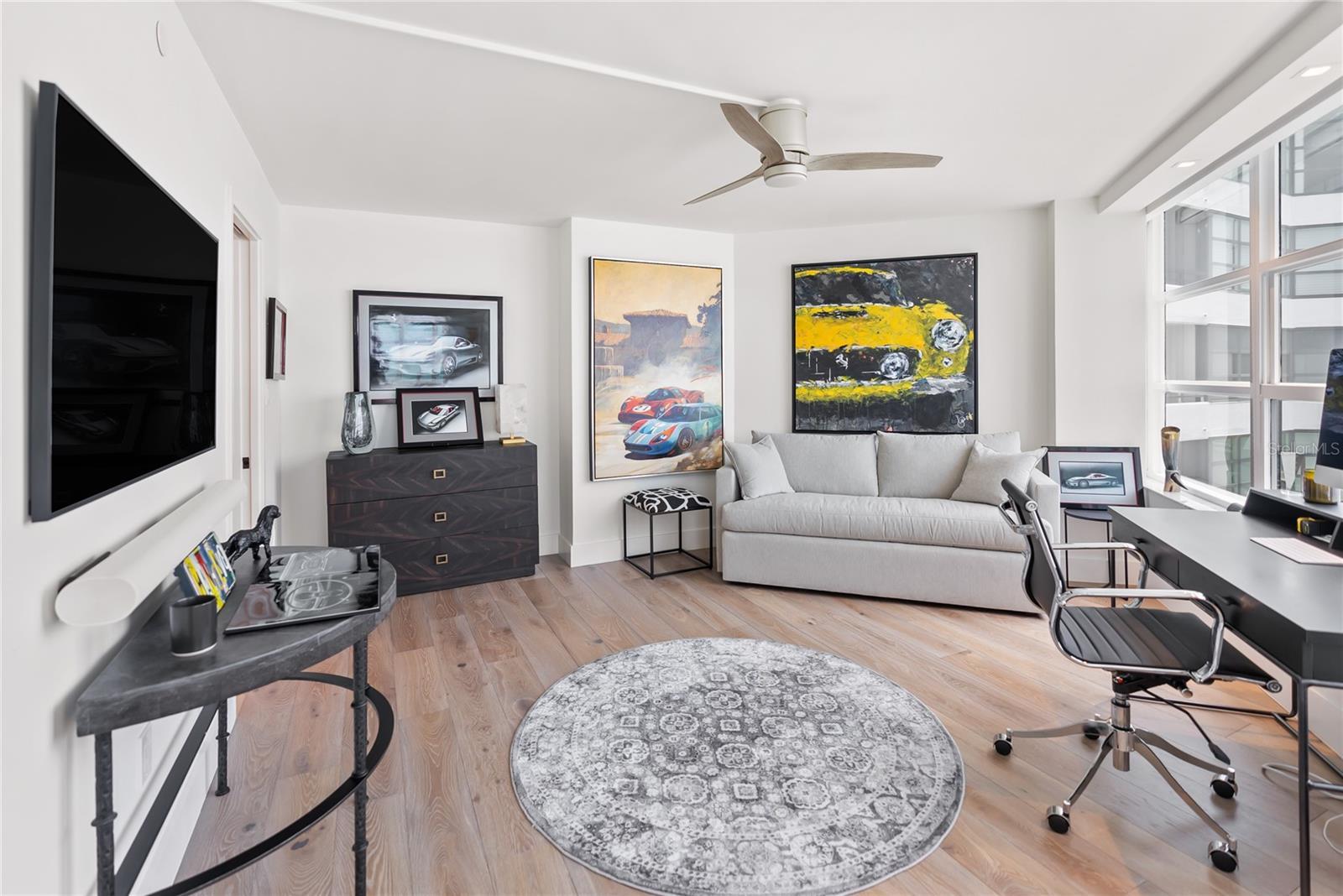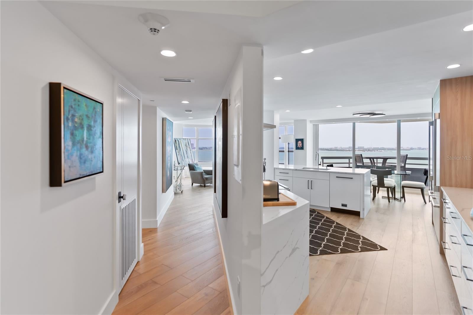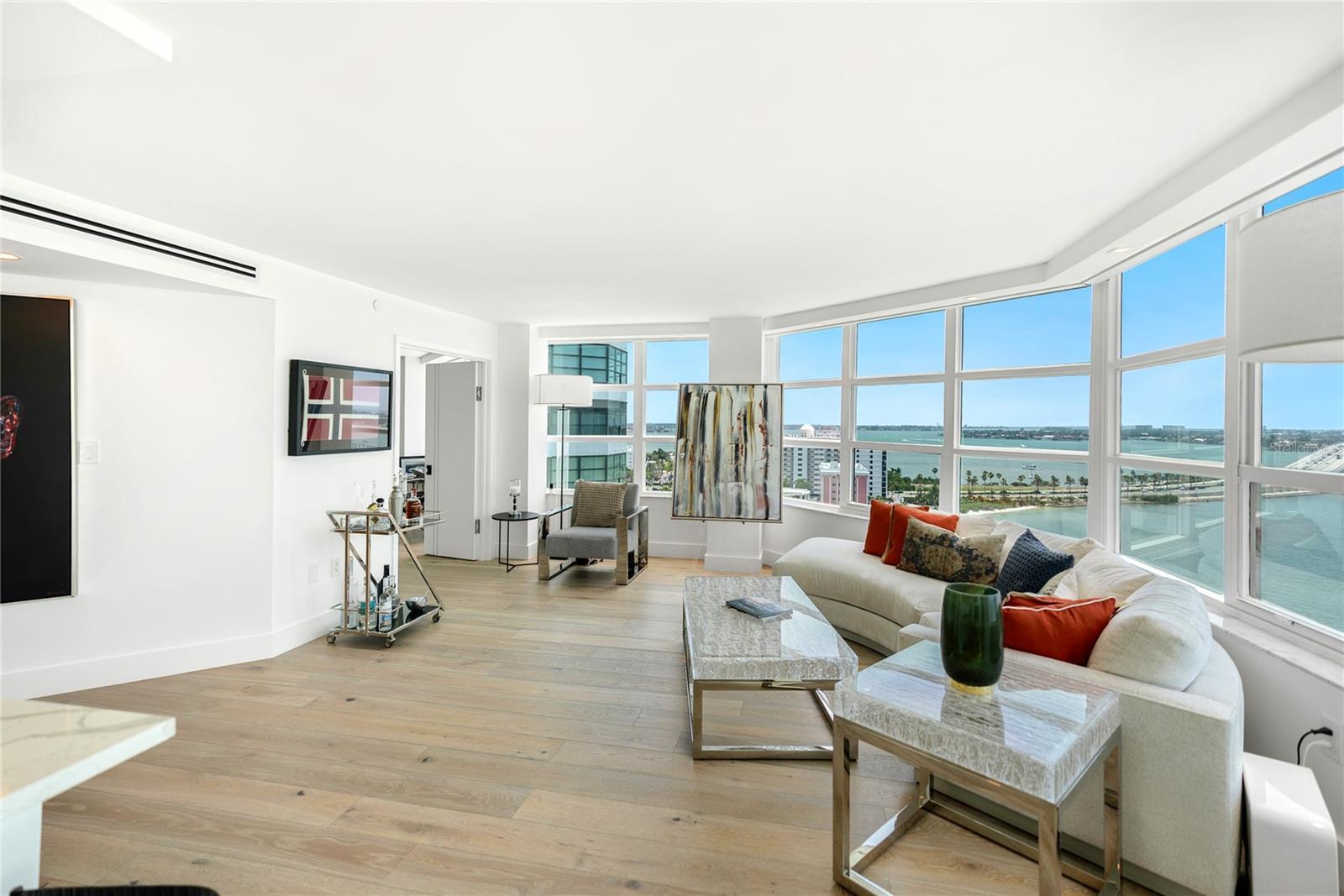Step into the most luxurious waterfront condo that awaits you in this stunning two bedroom, two-bath condo in the heart of Sarasota! Enjoy breathtaking views of the Bay of Sarasota and The Gulf of America from one of two of your private balconies. This stunning 100% completely renovated 5 stack VanGogh located on the 17th floor will leave you breathless. You will not believe your eyes when you see the attention to detail built into this stunning condo. Floor to ceiling mirrors in entryway accentuate the grand view as you enter the condo. Seller did a complete demolition of all interior drywall, ceiling tiles, all interior AC ductwork, plumbing, flooring and electrical. Installed all new plumbing, electrical, AC ductwork and / outdoor lighting. All new indoor lighting design and hardware throughout. The gorgeous all new wood flooring is in main areas and bedrooms, with all new tile in the bathrooms and patios. Raised the ceilings for maximum grand feeling and the stunning views. Both bathrooms completely remodeled with top of the line marble, quartz and waterworks hardware. Extended the width of the hall to open up laundry area with a stackable washer and dryer as well as a tankless water heater. Installed all new hurricane doors at both patios. Custom doors and hardware throughout. Brand new cabinetry along with custom closet cabinetry in primary suite. Installation of a completely new and hard wired AV system for Sound, TV, lighting & shades for the entire house. Hard wired the WiFi Sonos system through out the entire condo. And wait until you see this extraordinary kitchen, it is a culinary dream… brand new top of the line Fulgor Italian appliances! Waterfall quartz island countertop and quartz backsplash. Full size counter depth refrigerator, wine cellar, and 2 freezers. Microwave, convection combo, built in coffee maker, induction range top, oven & dishwasher. Smart home features include Ring and Nest. When you are ready to retire for the evening you simply use the remote powered shade system by Creston for all windows. Entry into 888 Boulevard of the Arts has a 24 hour guarded gate station. Just steps outside the condo you will find access to kayaks and/or boats. You can also enjoy the resort style heated pool along with pickleball, tennis courts and fitness room. Assigned underground parking (this unit has the best spot in the building) as well as 2 EV charging stations up on the top deck. You are close to all the key spots that beautiful Sarasota has to offer: Lido Beach, Siesta Key, Anna Maria Island, Long Boat Key and St Armands Circle. Sarasota offers exquisite restaurants, shopping, theaters and many cultural activities including Asolo Theater, Van Wezel Performing Arts Center and John Ringling Museum. You don’t want to miss this extraordinary condo with the most precise attention to detail at every turn. This unit is truly perfection.