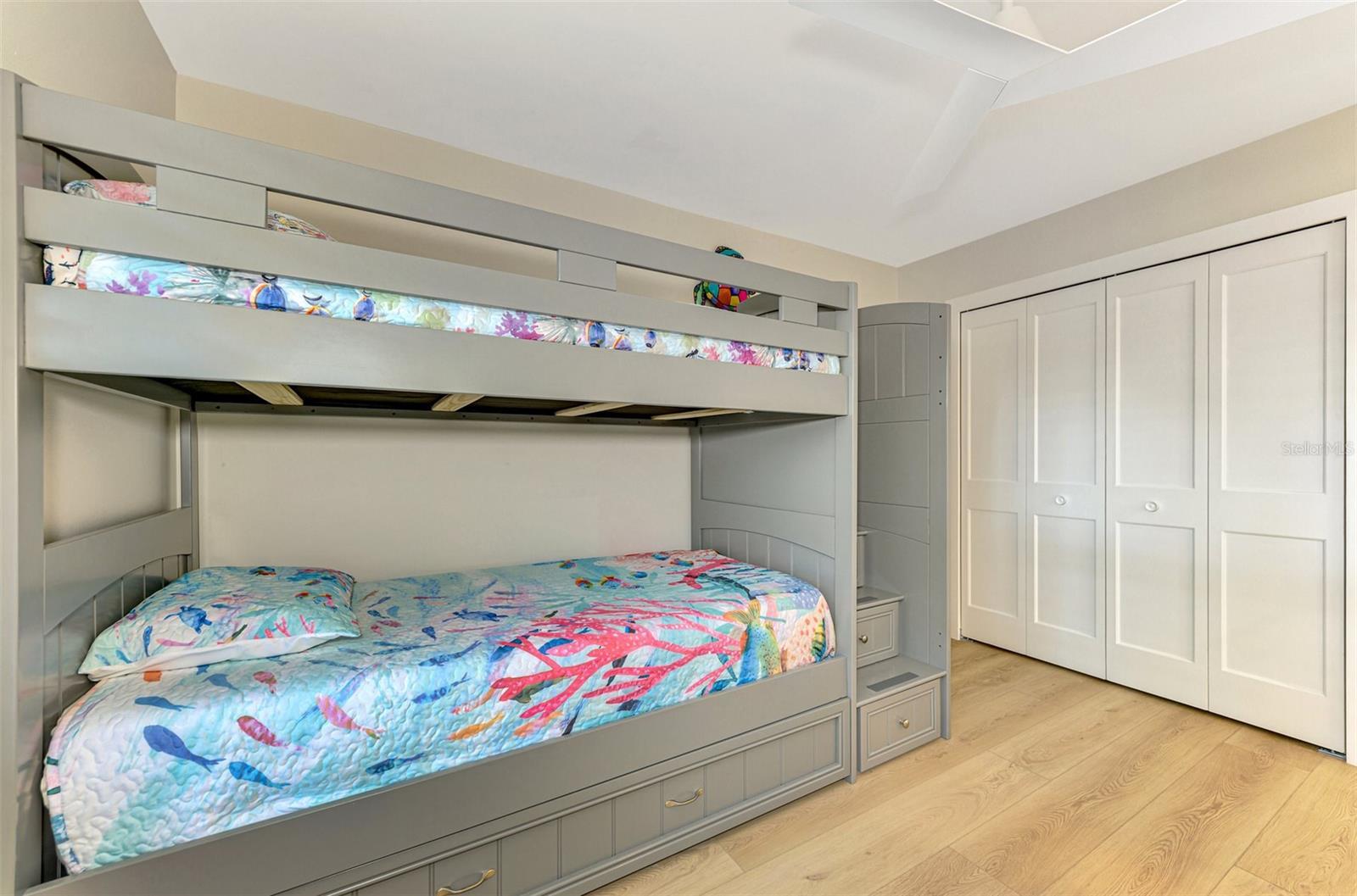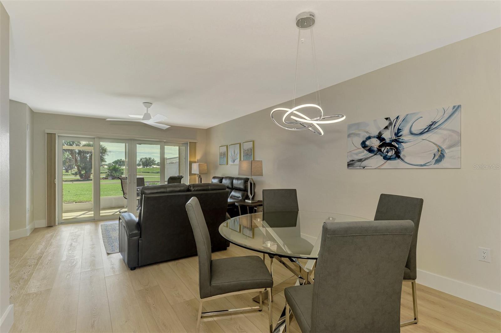 Experience the ultimate in relaxation and comfort with our updated ground floor condo, boasting views of the golf course within the picturesque Plantation Golf and Country Club of Venice, Florida. Entering, you find an open-concept living area that merges the living room, dining space, and kitchen. The living room features a cozy sofa set and a modern entertainment unit with an electric fireplace and flat-screen TV. The dining area has a stylish table for four, surrounded by elegant chairs. The kitchen is equipped with stainless steel appliances, ample counter space, and chic cabinetry with a trendy tile backsplash. The master suite offers soft tones, luxurious furnishings, and an en-suite bathroom with high-end finishes. The guest room features a charming bunk bed and playful decor. Beautiful flooring and tasteful artwork add elegance, while the large sliding glass door provide stunning golf course views and a bright ambiance. This modern retreat offers a perfect blend of style and convenience, inviting you to unwind in a serene setting. Whether you're a golf enthusiast or simply looking to enjoy the tranquil beauty of the area, this vacation rental promises an unforgettable stay.