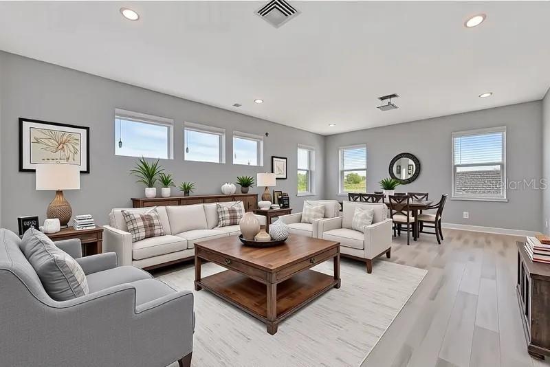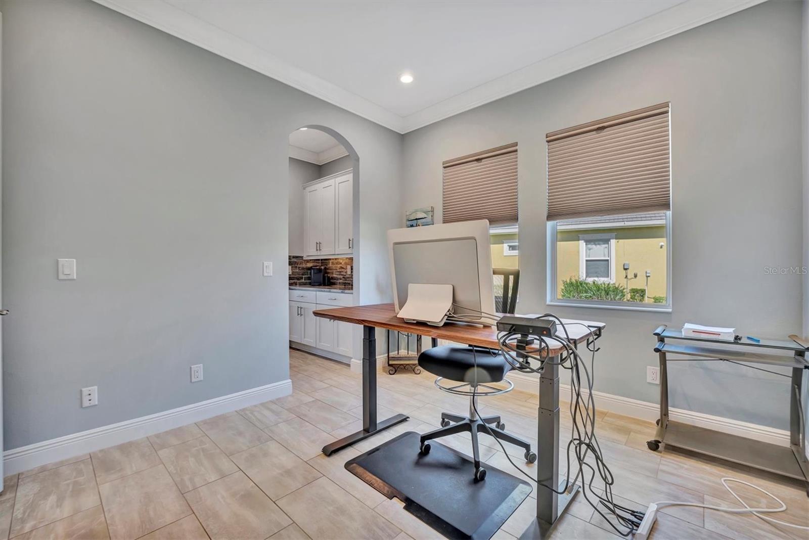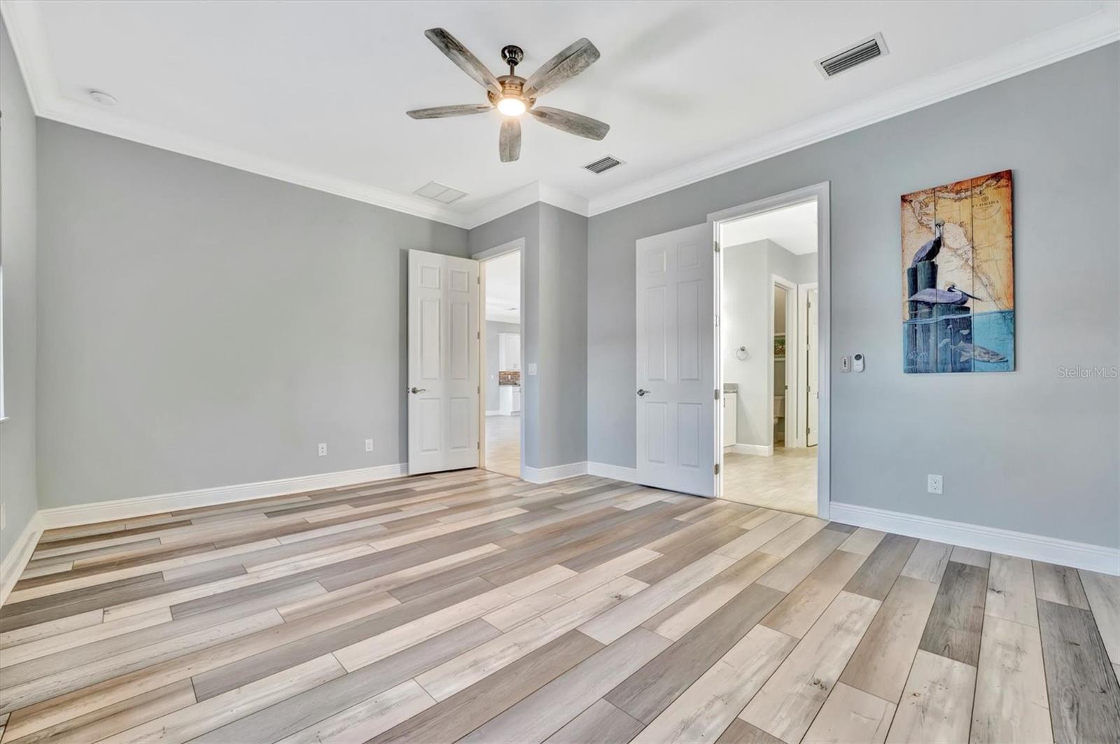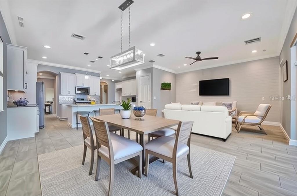 - Ceiling Fans(s), Crown Molding, High Ceilings, In Wall Pest System, Living Room/Dining Room Combo, Open Floorplan, Pest Guard System, Primary Bedroom Main Floor, Solid Surface Counters, Solid Wood Cabinets, Split Bedroom, Walk-In Closet(s), Window Treatments