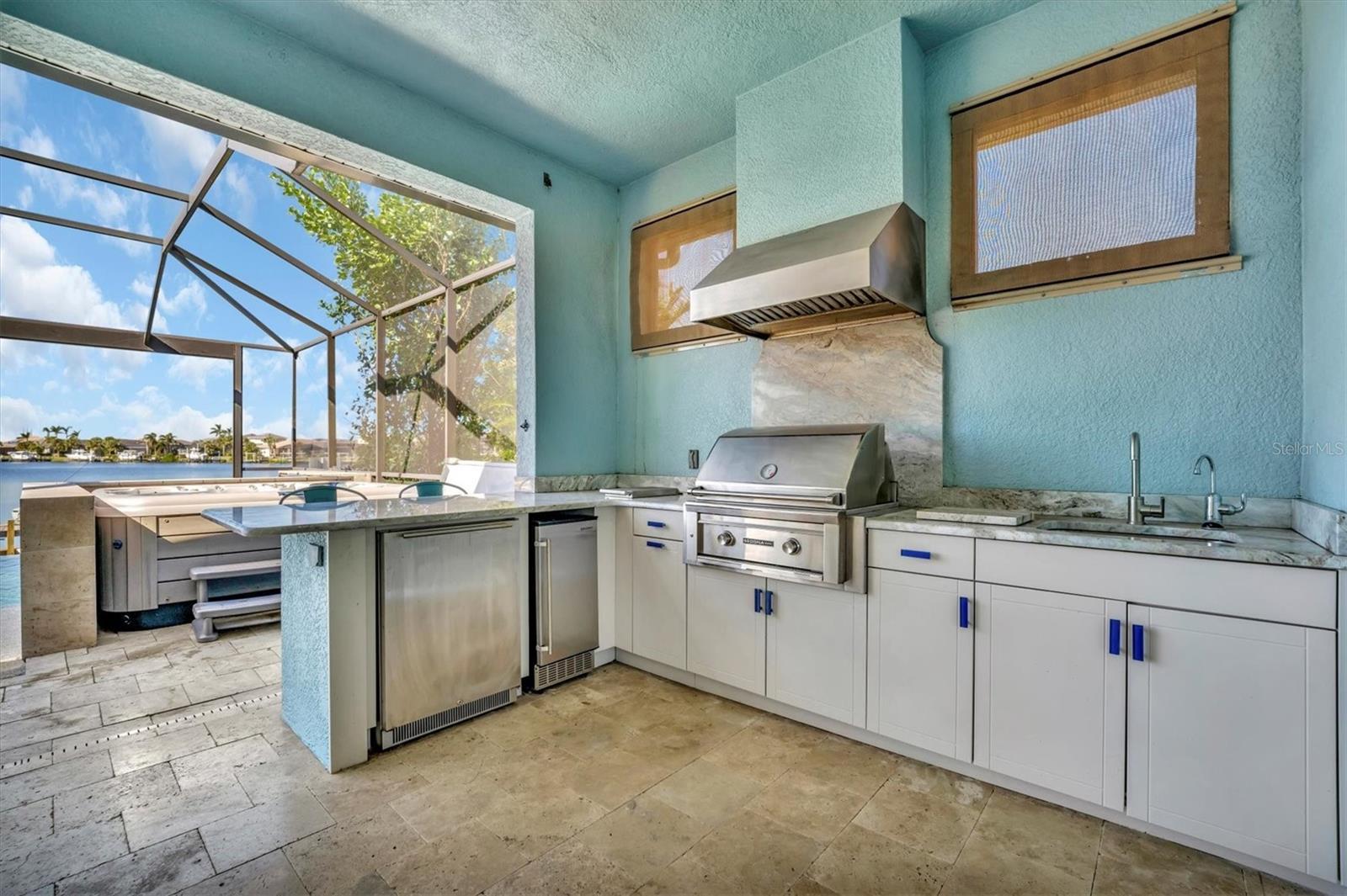 - Hurricane Shutters, Outdoor Grill, Outdoor Kitchen, Sidewalk, Sprinkler Metered, Tennis Court(s)