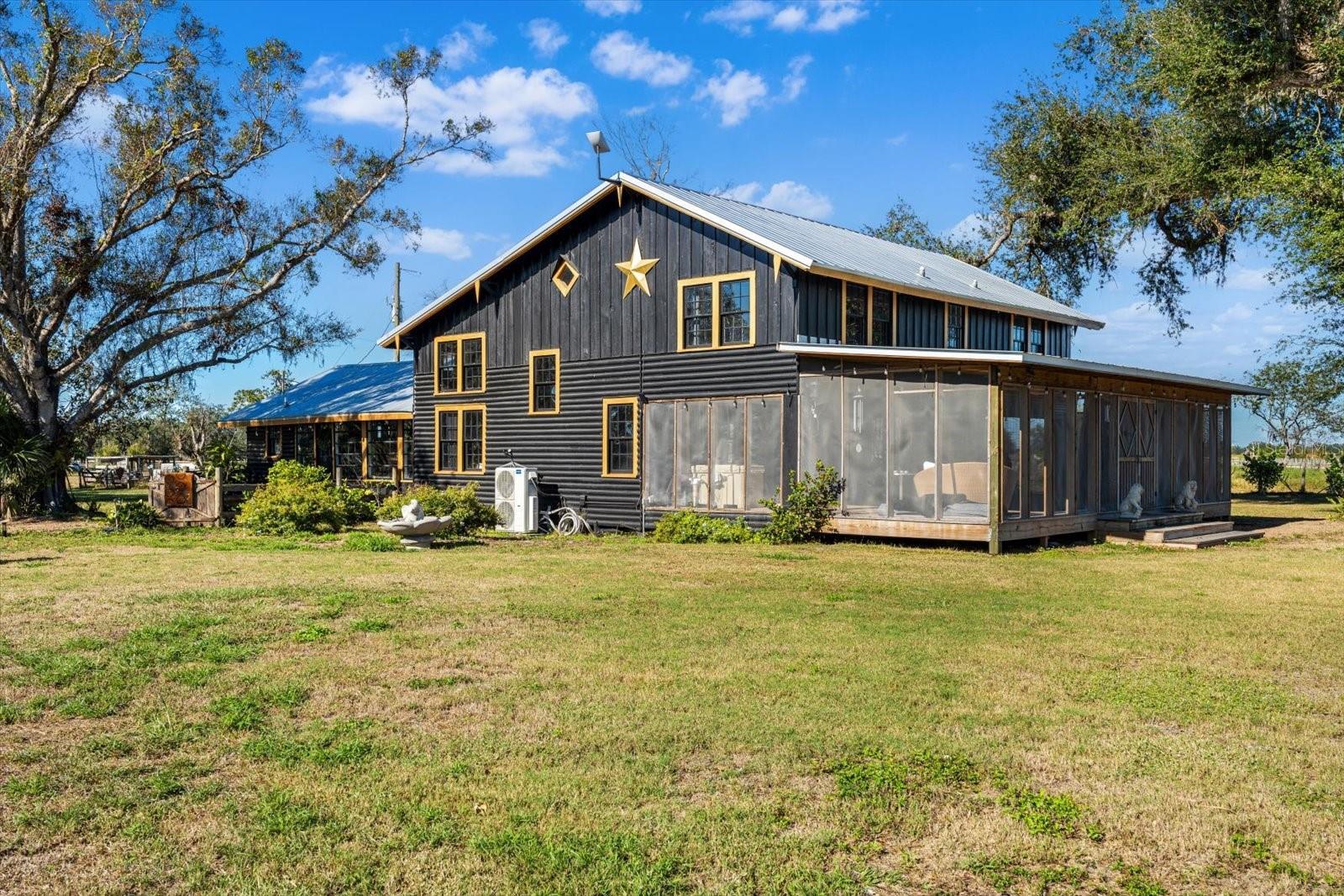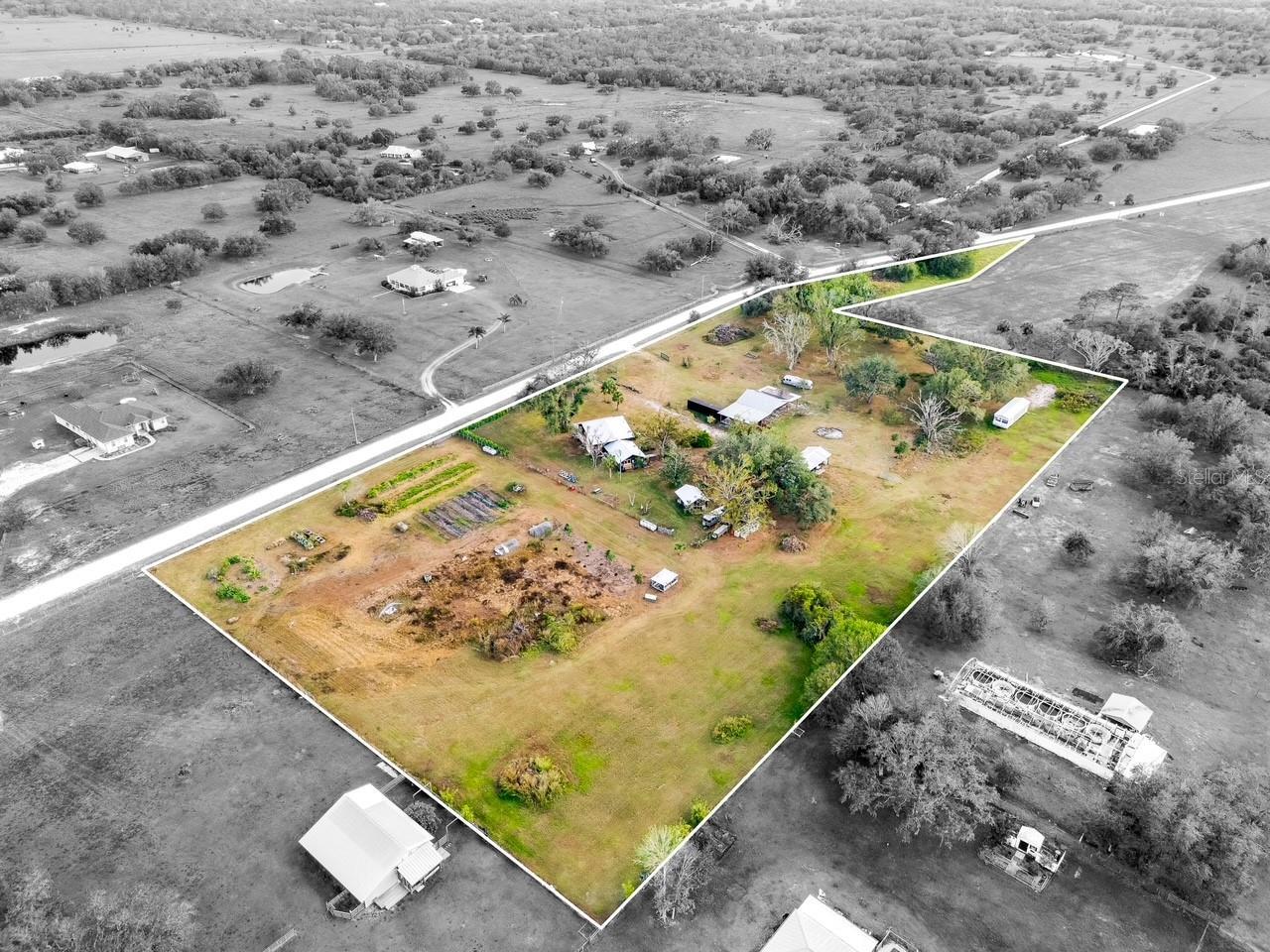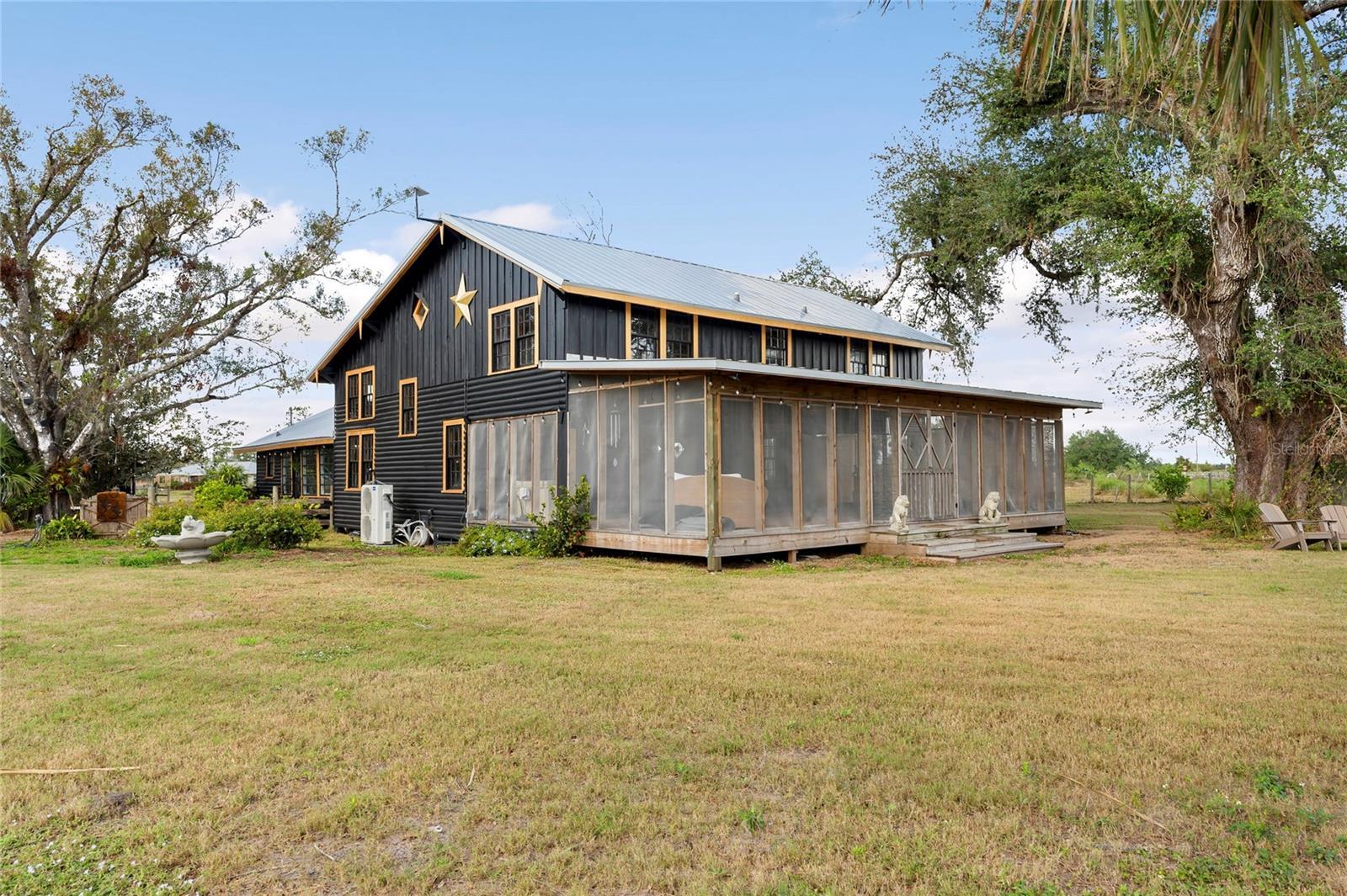 Step into ‘Old Florida’ with this fully restored historic farmhouse on 8 acres in rural Myakka City. Originally built in 1941 by Clint and Eva Hutches, both former Manatee County Sheriffs, this authentic log home is steeped in history and charm. Restored by French designer, Gaëlle Wizenberg, this home has been beautifully reimagined while preserving its original, historic character. If you've ever dreamed of living ‘off the grid’, becoming fully sustainable, and growing your own food, while still being within close proximity to modern conveniences such as shopping & dining found at Lakewood Ranch or the stunning beaches of Lido & Siesta Key, your dream is now a reality. The restoration of this home included extensive updates such as a new metal roof, AC units, plumbing, tankless water heater, well equipment, and a top-of-the-line solar system with batteries, which powers the entire property. As you approach the property, you'll be greeted by the awe-inspiring beauty of the home and its surroundings. The soaring vaulted ceilings and exposed beams reflect the beautiful, rustic heritage of Florida’s cattle ranching era. The rich, warm tones of cedar and tidewater pecky cypress wood create an inviting, natural atmosphere. The centerpiece of the home is an impressive brick fireplace, while the floors feature original pine and ash wood. For the culinary enthusiast, the farmhouse boasts two kitchens: a spacious prep kitchen with ample pantry storage, and a chef's kitchen designed to impress. Features include a state-of-the-art porcelain island, black cabinetry accented with gold hardware, thick butcher block countertops, and high-end appliances such as a Bertazzoni 6-burner gas stove, Fisher & Paykel double-drawer dishwasher, and a large double-door fridge/freezer. The kitchen offers a direct view of the thriving vegetable garden and fruit tree grove. The home features a new, fully screened front porch, perfect for relaxing while enjoying the shade of a majestic Grand Oak in the front yard. The property is a true retreat, having served as a yoga and wellness center, as well as an educational hub for students interested in organic and regenerative farming practices. The property has a thriving “food forest” with a wide variety of vegetables, herbs, and fruit trees, including cabbage, arugula, tomatoes, cucumbers, kale, citrus, papaya, mango, avocados, and much more. A true homesteader’s dream, this property also has multiple chicken coops and even a rabbit hutch. The property also includes a charming cabin, also built in 1941, that has a full bathroom and kitchenette; ideal for use as a guest suite or office. There are 2 large pole barns that provide ample storage and could easily be converted into horse stables. Located on a quiet, dead-end road, the property offers privacy and tranquility. It backs up to the 4,500-acre Blackbeard Ranch and is just minutes from Terra Nova Equestrian Center, making it ideal for horse lovers and equestrian pursuits. Additional amenities are on the horizon, including the new Miakka Golf Club just 2 miles away, and the vibrant communities of Waterside and Lakewood Ranch are just a 30-minute drive. Mineral rights convey with the 3 parcels. Bitcoin is accepted for purchase of this property.