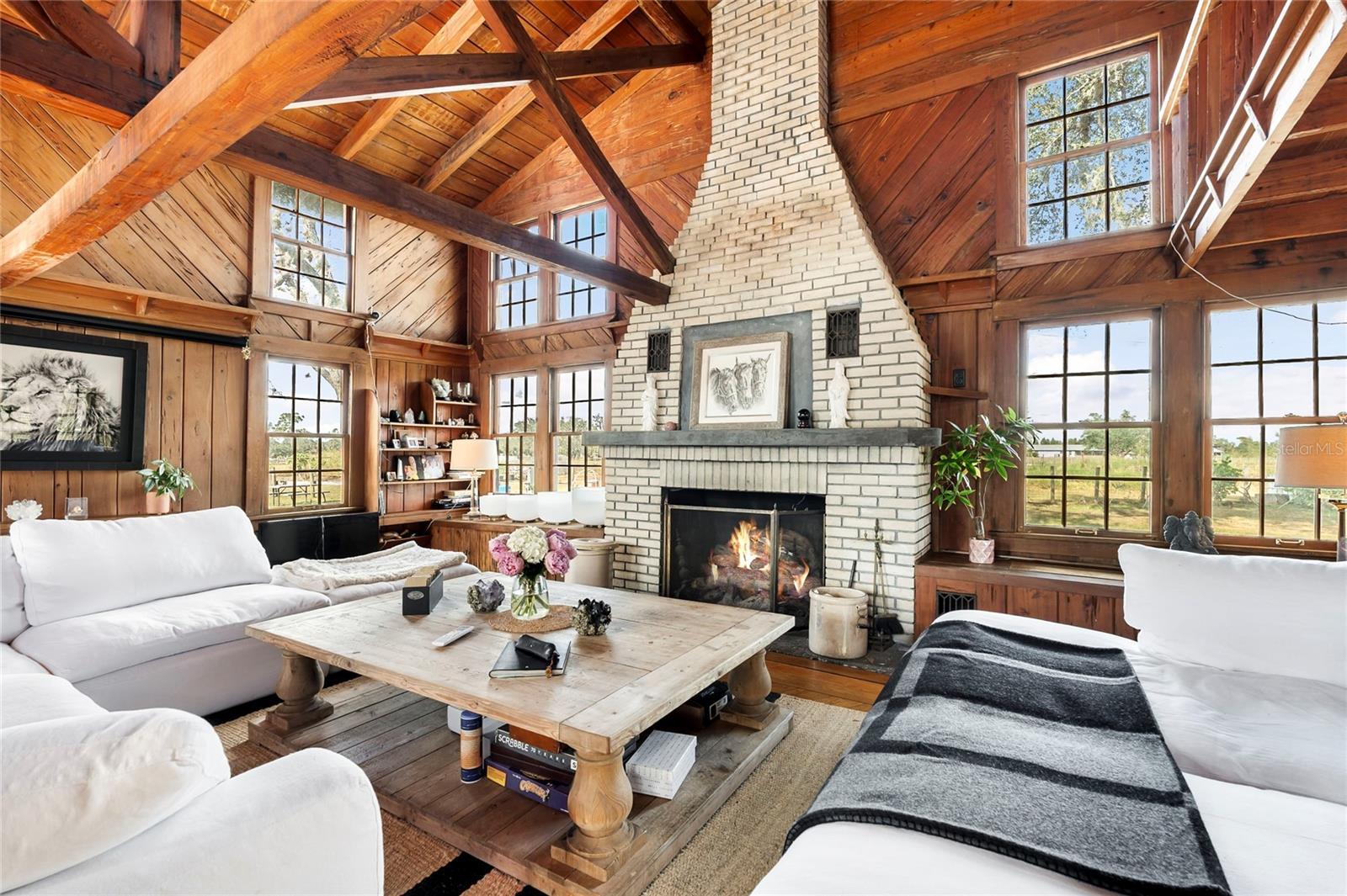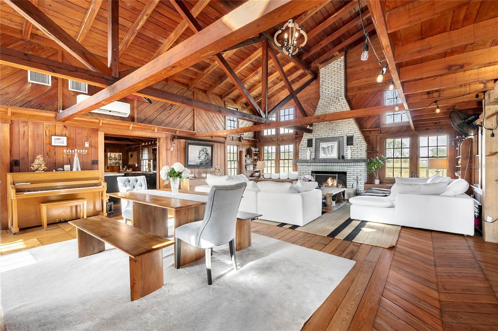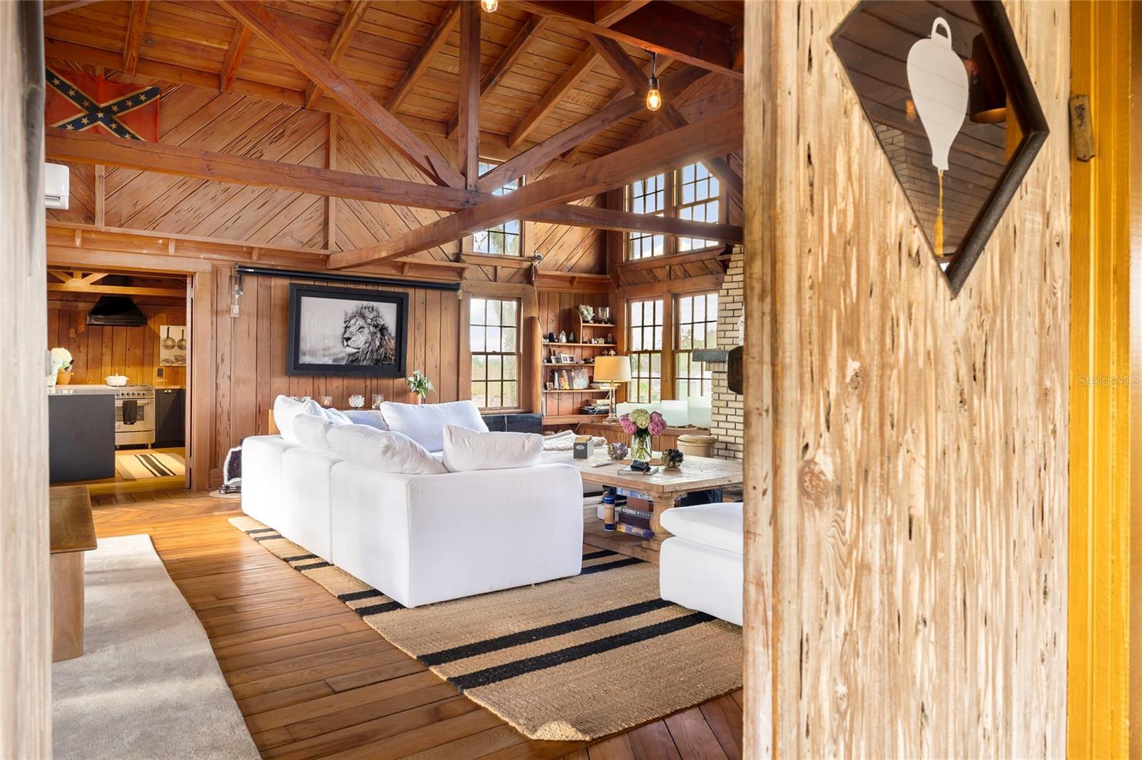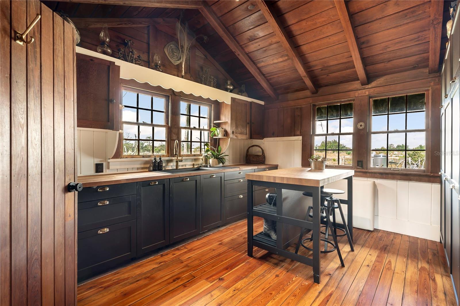 Step into ‘Old Florida’ with this fully restored historic farmhouse on 8 acres in rural Myakka City. Originally built in 1941 by Clint and Eva Hutches, both former Manatee County Sheriffs, this authentic log home is steeped in history and charm. Restored by French designer, Gaëlle Wizenberg, this home has been beautifully reimagined while preserving its original, historic character. If you've ever dreamed of living ‘off the grid’, becoming fully sustainable, and growing your own food, while still being within close proximity to modern conveniences such as shopping & dining found at Lakewood Ranch or the stunning beaches of Lido & Siesta Key, your dream is now a reality. The restoration of this home included extensive updates such as a new metal roof, AC units, plumbing, tankless water heater, well equipment, and a top-of-the-line solar system with batteries, which powers the entire property. As you approach the property, you'll be greeted by the awe-inspiring beauty of the home and its surroundings. The soaring vaulted ceilings and exposed beams reflect the beautiful, rustic heritage of Florida’s cattle ranching era. The rich, warm tones of cedar and tidewater pecky cypress wood create an inviting, natural atmosphere. The centerpiece of the home is an impressive brick fireplace, while the floors feature original pine and ash wood. For the culinary enthusiast, the farmhouse boasts two kitchens: a spacious prep kitchen with ample pantry storage, and a chef's kitchen designed to impress. Features include a state-of-the-art porcelain island, black cabinetry accented with gold hardware, thick butcher block countertops, and high-end appliances such as a Bertazzoni 6-burner gas stove, Fisher & Paykel double-drawer dishwasher, and a large double-door fridge/freezer. The kitchen offers a direct view of the thriving vegetable garden and fruit tree grove. The home features a new, fully screened front porch, perfect for relaxing while enjoying the shade of a majestic Grand Oak in the front yard. The property is a true retreat, having served as a yoga and wellness center, as well as an educational hub for students interested in organic and regenerative farming practices. The property has a thriving “food forest” with a wide variety of vegetables, herbs, and fruit trees, including cabbage, arugula, tomatoes, cucumbers, kale, citrus, papaya, mango, avocados, and much more. A true homesteader’s dream, this property also has multiple chicken coops and even a rabbit hutch. The property also includes a charming cabin, also built in 1941, that has a full bathroom and kitchenette; ideal for use as a guest suite or office. There are 2 large pole barns that provide ample storage and could easily be converted into horse stables. Located on a quiet, dead-end road, the property offers privacy and tranquility. It backs up to the 4,500-acre Blackbeard Ranch and is just minutes from Terra Nova Equestrian Center, making it ideal for horse lovers and equestrian pursuits. Additional amenities are on the horizon, including the new Miakka Golf Club just 2 miles away, and the vibrant communities of Waterside and Lakewood Ranch are just a 30-minute drive. Mineral rights convey with the 3 parcels. Bitcoin is accepted for purchase of this property.