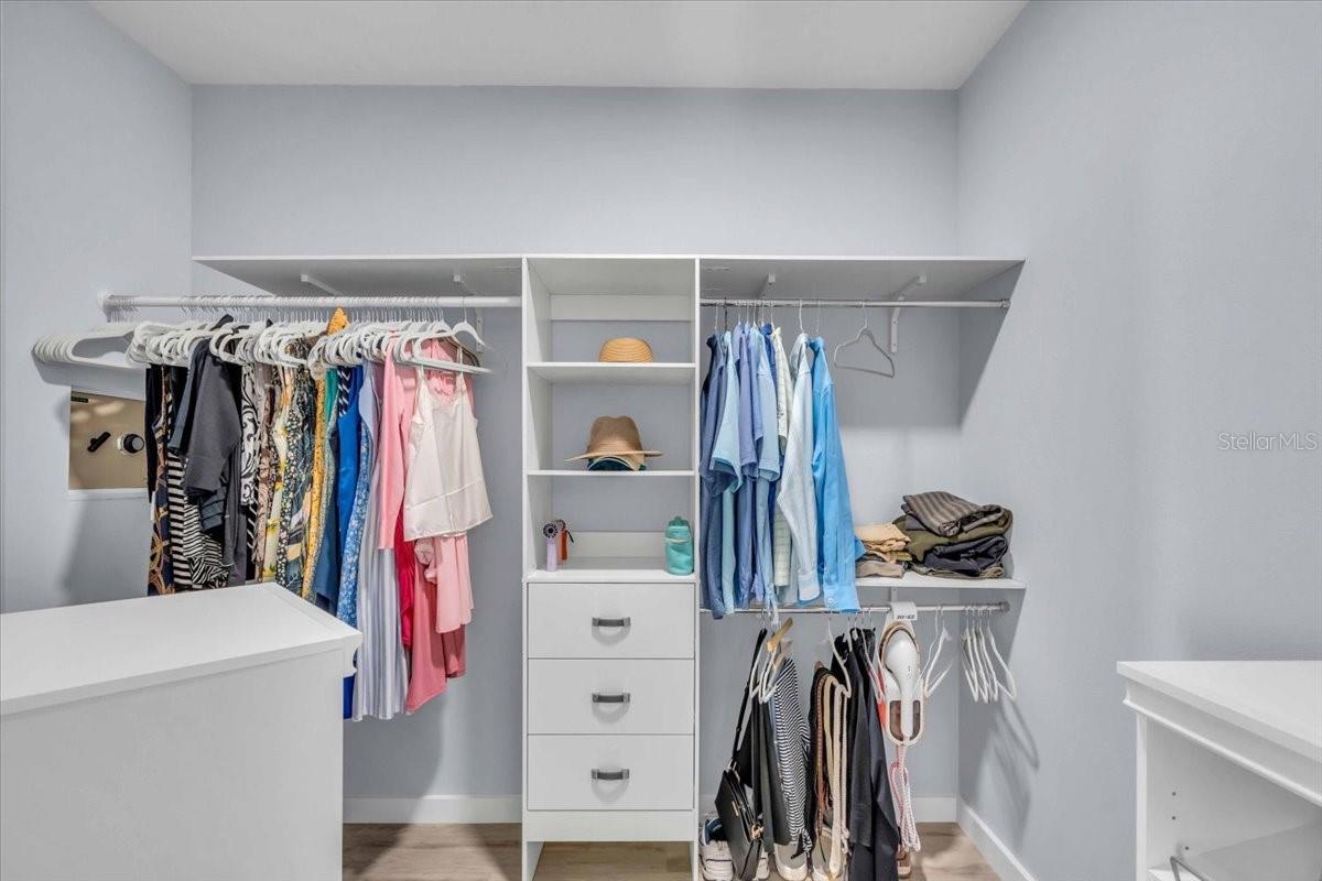 - Ceiling Fans(s), Eat-in Kitchen, Elevator, High Ceilings, Living Room/Dining Room Combo, Open Floorplan, Primary Bedroom Main Floor, Solid Surface Counters, Split Bedroom, Thermostat, Walk-In Closet(s), Wet Bar, Window Treatments