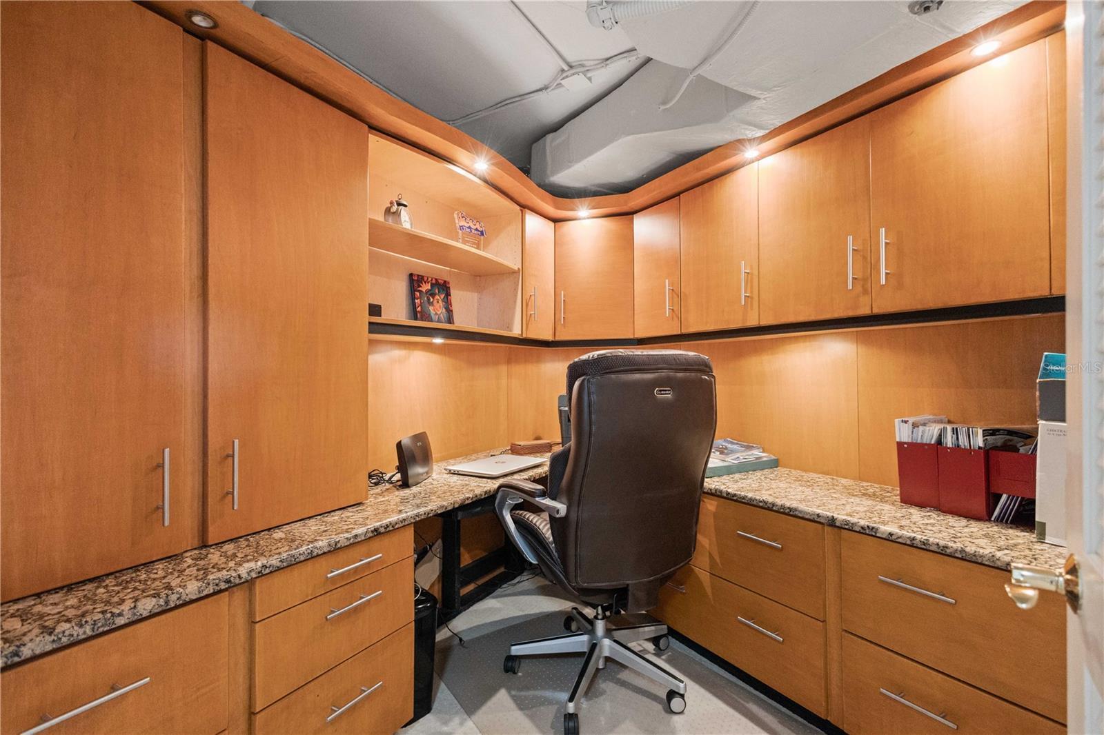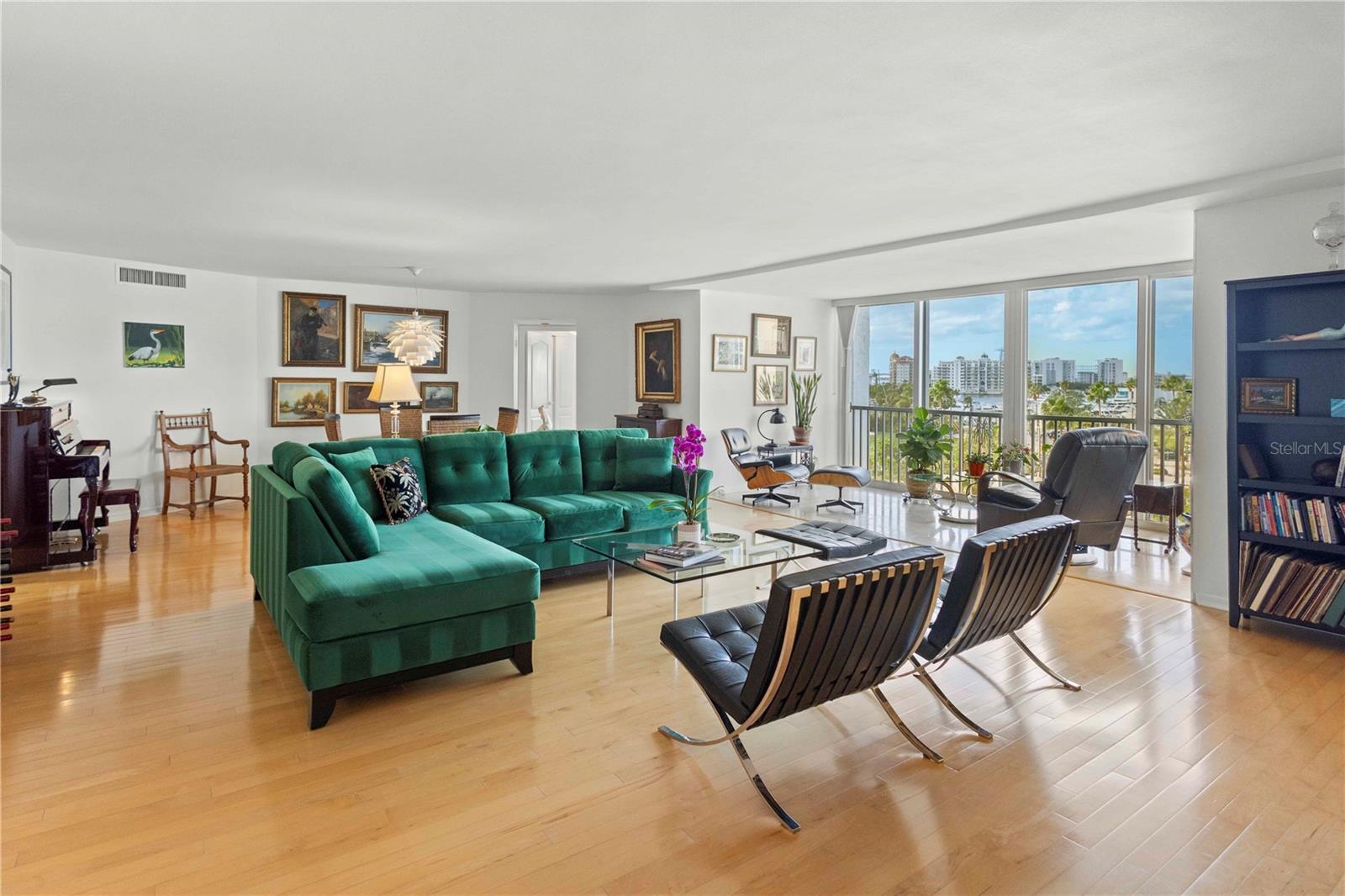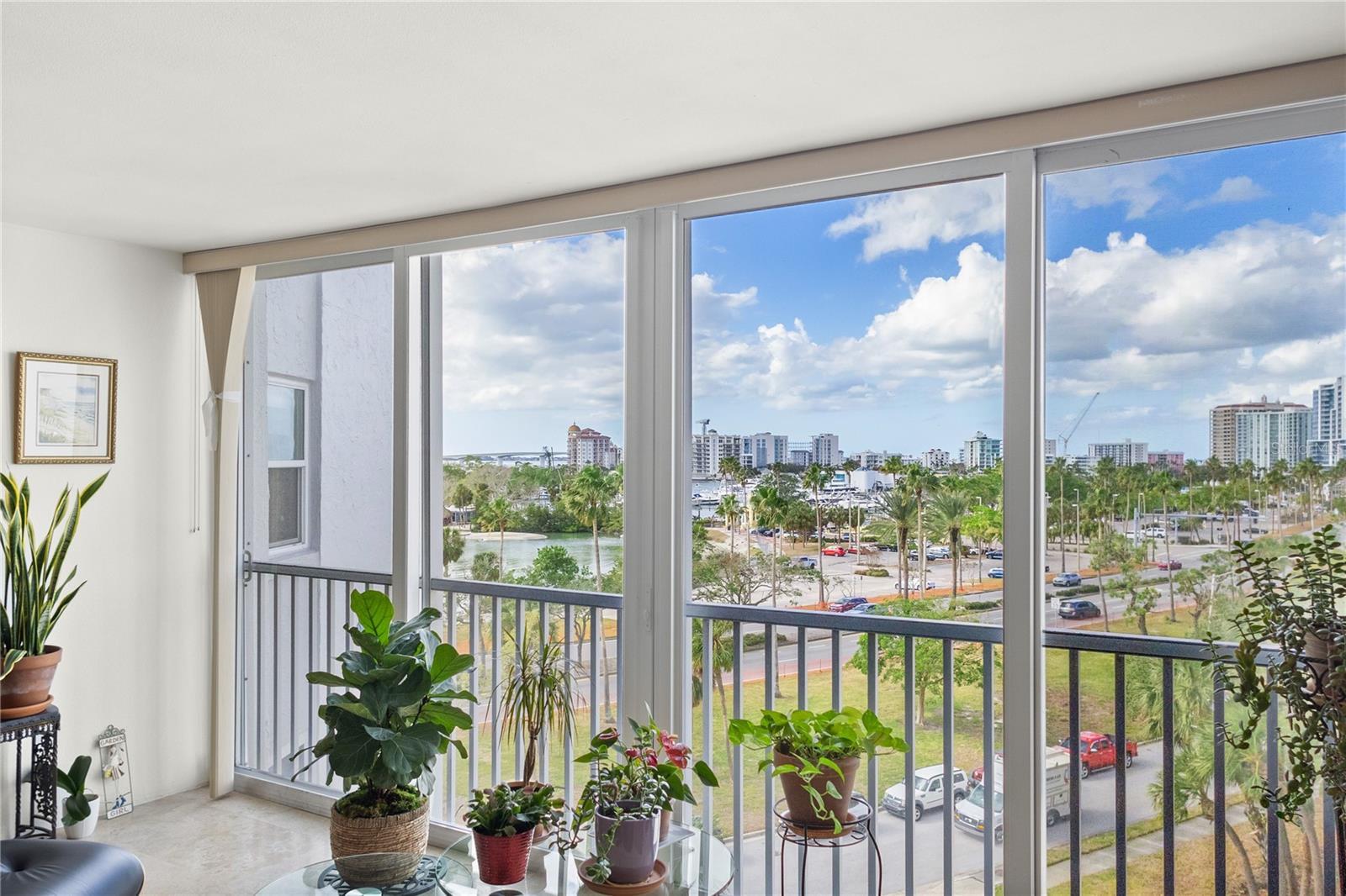 EXCEPTIONAL PRICE… Experience downtown living in a prime Sarasota location just moments from the bayfront, restaurants, galleries, and cultural attractions. This spacious 2-bedroom, 2-bath residence offers 1,705 sq. ft. of thoughtfully designed comfort and style. The unique split-bedroom floor plan provides privacy for both owners and guests, while the generous great room creates an inviting space to relax or entertain. Step into the enclosed lanai and take in captivating and expansive city and bay views which provide the perfect backdrop for morning coffee or a relaxing evening. The modern kitchen showcases quartz countertops, wood cabinetry, and stainless-steel appliances. And the living space was thoughtfully enhanced by creating a dedicated home office with built-in shelving, filing cabinets and lighting that offer a quiet retreat for work or creative pursuits. With excellent storage throughout, this residence is ideal for full-time or seasonal living. Residents can enjoy the peace of mind that comes with a well-managed building, featuring an onsite manager and 24-hour concierge service. Management is always quick to respond with a recently added 2 ft. flood barrier for added protection. Residents also have access to an array of amenities, including a heated pool, grilling area, bicycle racks, fitness room, library, and social room. Situated on a quiet and serene tree lined street, this downtown Sarasota residence captures the essence of urban sophistication with coastal charm.
