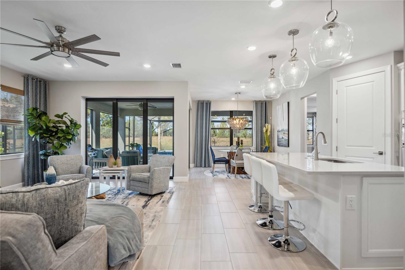 Lowest Price Per Sq. Ft. Pool Home in Del Webb Lakewood Ranch — Significant Price Improvement Welcome to 17530 Northwood Place, now priced to stand out as one of the best values in Del Webb Lakewood Ranch. With the recent price reduction, the heated saltwater pool and spa are essentially free, making this home an exceptional opportunity. This upgraded 1.5-story home offers over 3,000 sq. ft., 4 bedrooms, 3 baths, PLUS a den/flex room, situated on a private lot in the community with no neighbors directly behind. Built in 2021, this home has been hardly lived in by the snowbird owners...don't wait to build! The home provides peaceful green views while remaining just minutes from the clubhouse. The upstairs guest retreat or fabulous games room, includes a bedroom, full bath, and large living area—ideal for visitors or multigenerational living. The open main level features high ceilings, abundant natural light, and a chef’s kitchen with quartz countertops, stainless steel appliances, oversized island, and ample storage. The primary suite is located on the main floor with a spa-style bath and large walk-in closet. Outdoor living shines with a heated saltwater pool and spa, extended paver lanai, and lush tropical landscaping that enhances privacy. The lot offers a rare fenced-feel, is set away from ponds, and provides easy access to the community dog park just 3 doors away. Del Webb Lakewood Ranch features resort-style amenities including a clubhouse, fitness center, pools, pickleball, tennis, walking trails, clubs, and a full social calendar—all with low HOA fees. Conveniently located near medical facilities, shopping, dining, and UTC Mall. A rare combination of space, privacy, amenities, and value in Del Webb Lakewood Ranch. Schedule your private showing today.