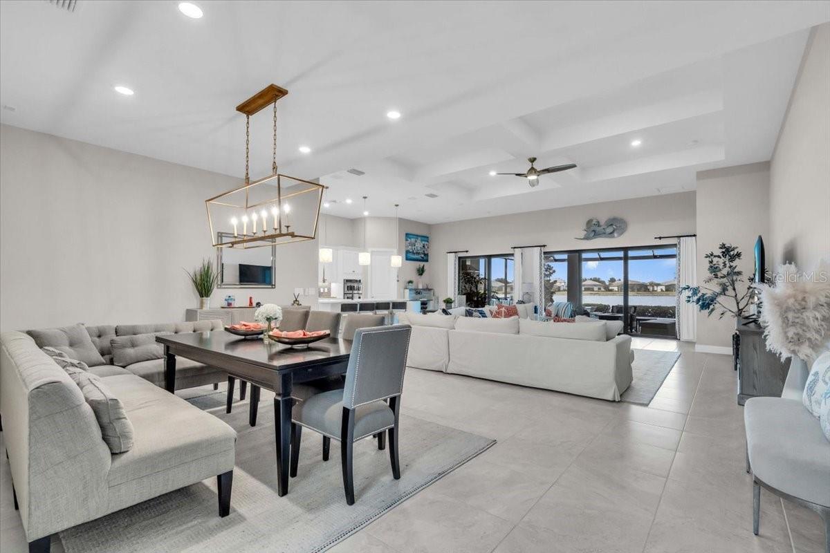 Grand residence on Grande Shores! This home is located in the Shoreview neighborhood in the Waterside Place area of Lakewood Ranch. Built in 2021, this floorplan features a loft for flexible living. This lakefront home has four bedrooms and a flex space with built-in bar seating currently being used as a media room. This home boasts over 4,000 square feet of living space, with an luxurious extended lanai with outdoor kitchen. The open floor plan with high ceilings, oversized impact windows, and impact glass sliders flood the space with natural light. The kitchen is a dream with a large island, breakfast bar, pendant lighting, stainless steel appliances, quartz countertops, and a walk-in pantry complete with high end shelving. Split bedroom floorplan grants privacy for all bedrooms. The primary suite has tranquil pool and lake views, a tray ceiling, and a walk-in closet with built-in shelves. Going upstairs, you will find a loft perfect for a game area or another living space. The loft is complete with the fourth bedroom and fourth full bathroom. The beautiful lanai features a Clearview screen around the luxurious, heated, saltwater infinity edge pool. This pool comes complete with a sun shelf, waterfalls, and a large built in spa. The lanai has access to a half bath for convenience: keeping wet swimsuits out of your home. Your outdoor oasis is complete with an equipped kitchen featuring a Blackstone grill, television, icemaker, and refrigerator drawers. This property offers the potential to add a dock. Plenty of parking and storage with a wide driveway and extended three-car garage with epoxy flooring. Home is being offered turn-key with all furniture included. Resort style amenities await you at Shoreview at Lakewood Ranch Waterside. This community offers a clubhouse, an outdoor bar, grilling areas, heated community swimming pool, spa, fitness center, a lakefront deck, tennis and pickleball courts, fishing, walking trails, a beach area, and much more. Not only do you have amazing amenities in your neighborhood, you are also near everything Waterside Place has to offer. Waterside is an amazing city center with restaurants, shopping, Sunday Farmer's Market, Ranch Nite Wednesdays with food trucks and endless activities. Easy access to University Town Center, I-75, and about 14 miles to the nearest beach (Lido Key). This home puts you in the center of it all!