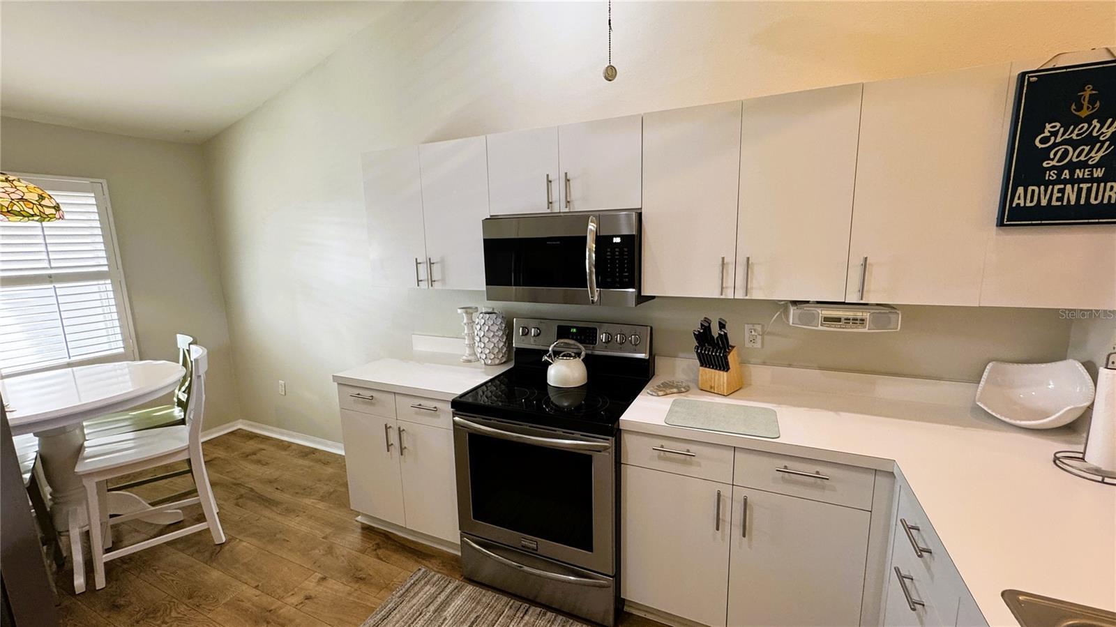 Turnkey Furnished Short Term Rental Available beginning 1/5/26 (Booked 2/1/26 - 3/31/26). Wide open views from this 3rd Floor Condo with Vaulted Ceilings, Engineered Oak Wood Floors Throughout the Main Living areas and views of the 8th Fairway. Don't miss this chance to enjoy the Sunrise Views of the Fairway and across to the Preserve land and Lake. The 2 Bedroom 2 Bath unit Boasts Stainless Steel Appliances, updated shower in the Master Bath with High Quality Shower Head System and a whirlpool tub with shower in the Guest bathroom. Stylish Paint throughout. Master Bedroom has its own slider out to the lanai and walk in closet. Offered Partially Furnished. Carport for the Owners and lots of guest parking as well. Terraces Condo Group has Recently New tile roofs, Modernized Paint colors, community pool and great Pickleball/Tennis court. Community Grills and Gathering Areas make for a social and fun community to be a part of part time or year a round.
