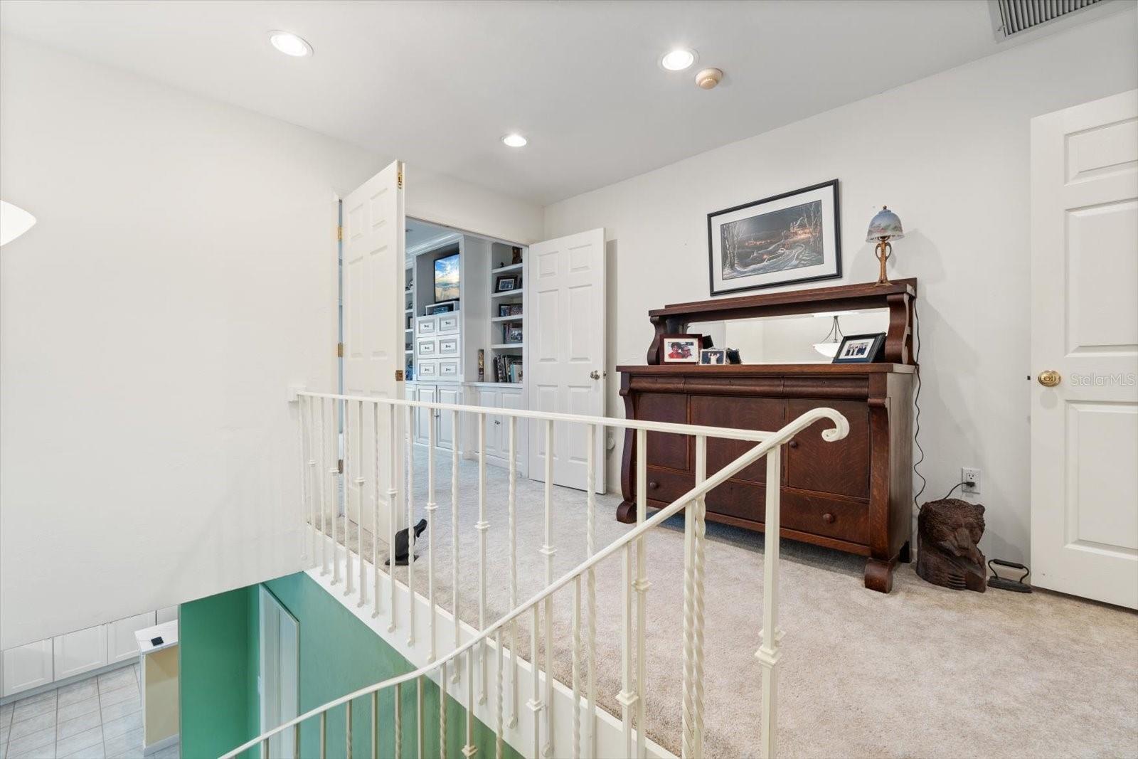 - Built-in Features, Crown Molding, PrimaryBedroom Upstairs, Solid Wood Cabinets, Split Bedroom, Stone Counters, Thermostat