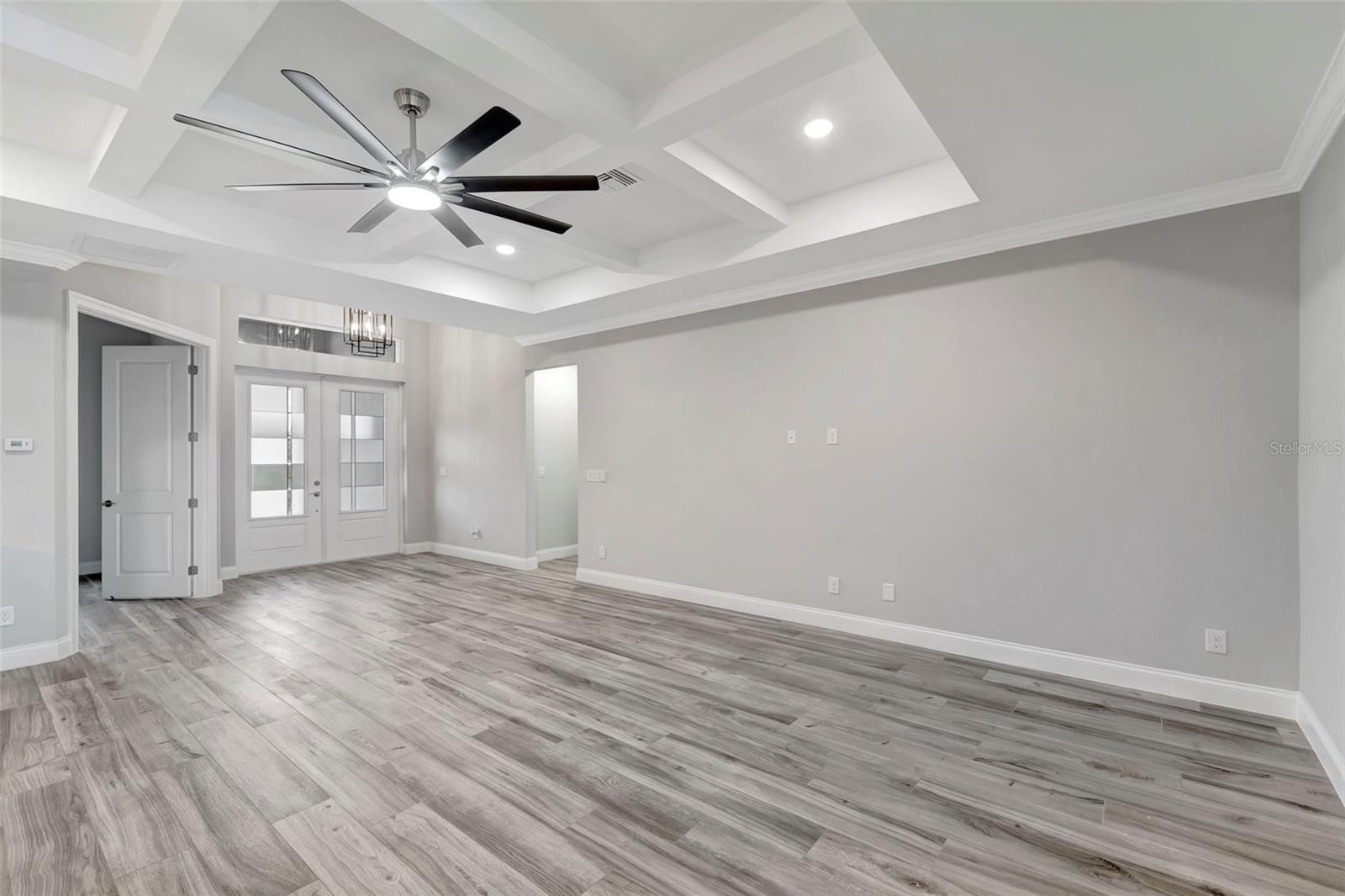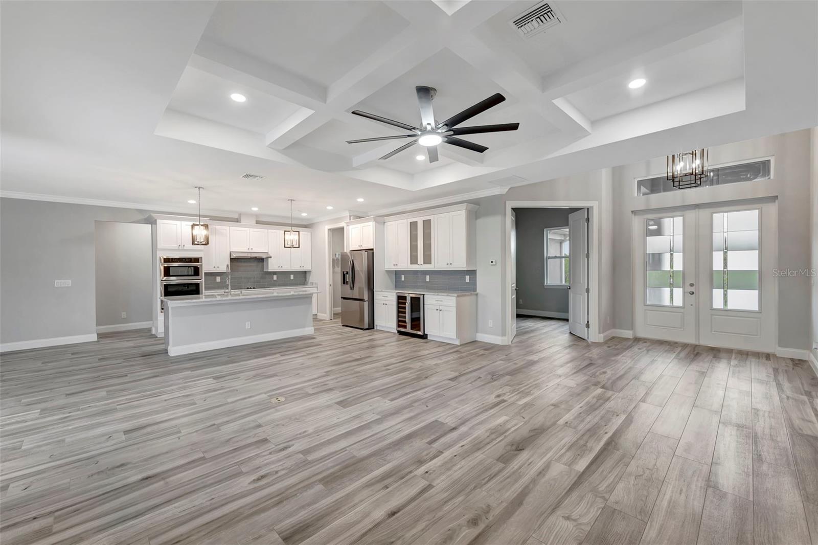 - Ceiling Fans(s), Crown Molding, Dry Bar, Eat-in Kitchen, High Ceilings, Kitchen/Family Room Combo, Living Room/Dining Room Combo, Open Floorplan, Primary Bedroom Main Floor, Split Bedroom, Stone Counters, Thermostat, Tray Ceiling(s), Walk-In Closet(s)