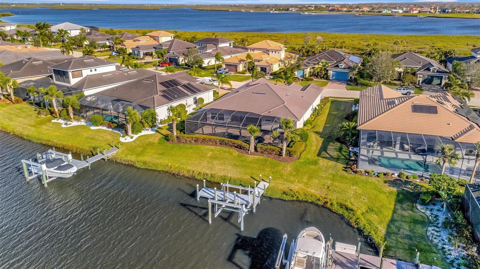 One or more photo(s) has been virtually staged. Interior Freshly painted! Seller Motivated – Offering a $5,000 credit toward closing costs or buyer’s choice of use! Flood insurance is transferable to the new owner, adding immediate value and peace of mind. Welcome to Tidewater Preserve, Bradenton’s premier boating community, perfectly situated along the scenic Manatee River. This stunning Boretto Model offers breathtaking waterfront views and blends luxury finishes with resort-style living in a private, guard-gated setting. Featuring 3 bedrooms plus a den, 3 baths, and a 3-car garage, this freshly painted home boasts a spacious open floor plan designed for both comfort and entertaining. The two guest bathrooms have recently been renovated, adding a modern touch for family and visitors. The chef’s kitchen showcases wood cabinetry, quartz countertops, a large island, stainless steel appliances including a new Samsung refrigerator (2023) and dishwasher (2024), a touchless faucet, and a walk-in pantry with custom shelving. The primary suite offers maximum privacy with a spa-like bath featuring dual sinks, a soaking tub, a walk-in shower, and expansive custom his-and-her closets. Two guest bedrooms with their own updated baths are located on the opposite side of the home for separation and comfort, while a large den provides the perfect office or flex space. Set on a 110-foot waterfront lot with a 12,000 lb boat lift and Trex dock, the outdoor oasis is designed for year-round enjoyment. The oversized salt-generated Pebble Tec pool and spa feature LED lighting, a dramatic waterfall with fire feature, and a new rapid heater, all enclosed by a no-see-um screen for comfort. Entertain with a fully equipped outdoor kitchen, relax around the gas firepit with cozy seating, or unwind under the remote-controlled awning and privacy screens. Additional features include a dedicated pool bath, whole-house Kinetico water softener, smart thermostat, Ring doorbell, tankless water heater, custom closets, premium surround sound system inside and out, and extended driveways. Recent updates in 2024 include freshly painted interior and exterior, roof cleaned and sealed, new pool heater and pool filter, and HVAC and ductwork serviced. Tidewater Preserve offers a true Florida lifestyle with 24-hour guard security, three resort-style pools, two fitness centers, tennis courts, clubhouse, riverfront nature trails, dog park, playground, kayak launch, and marina—with no CDD fees. Boating enthusiasts will love the community boat lift with direct access to the Manatee River, ideal for reaching waterfront restaurants, Anna Maria Island, or Egmont Key. End each day with breathtaking sunsets from your private dock and embrace the ultimate waterfront lifestyle in Bradenton’s most sought-after community.