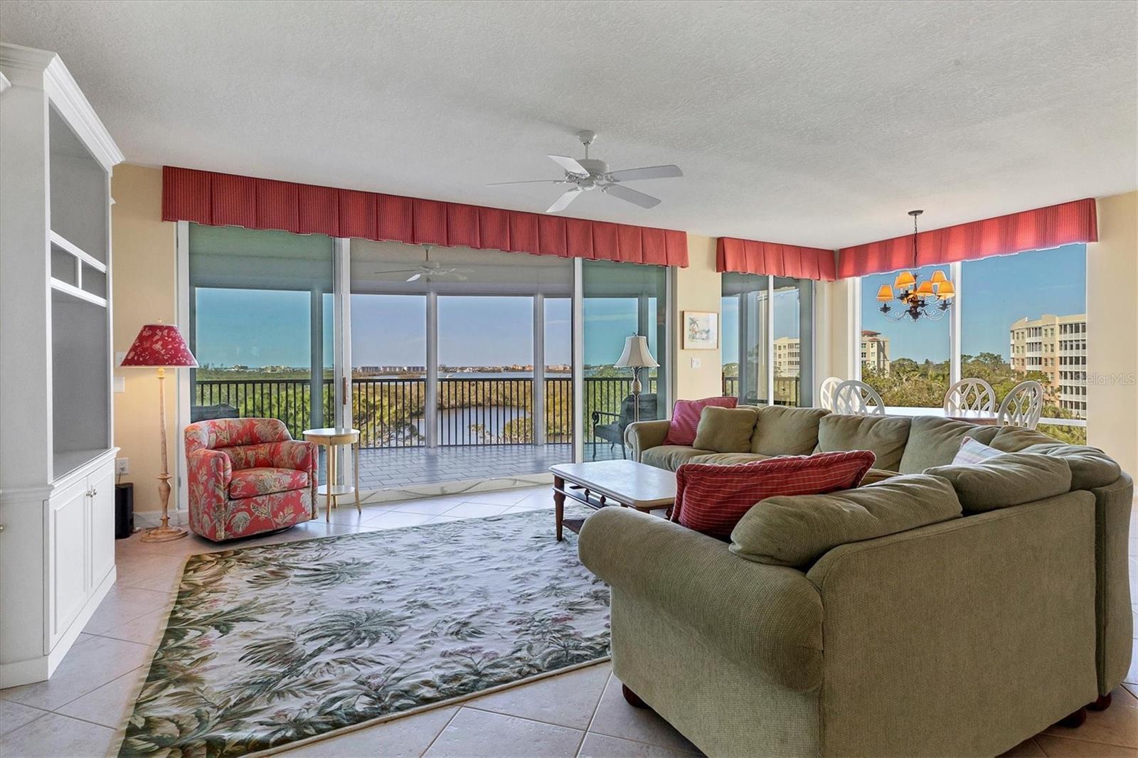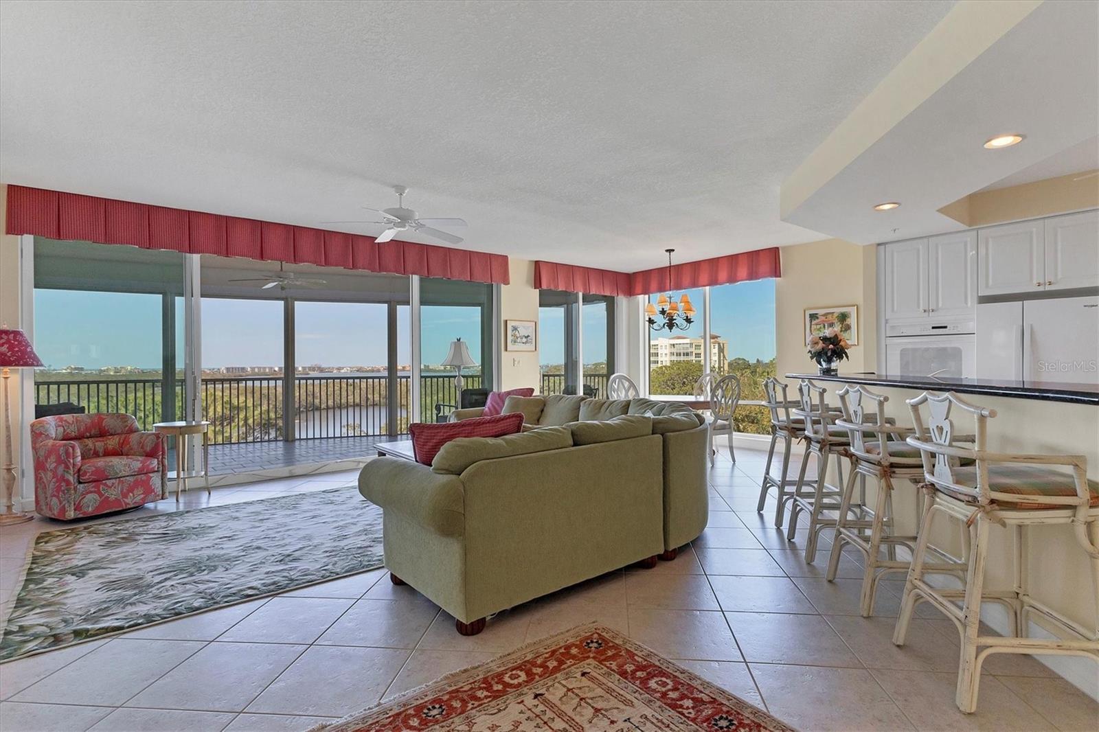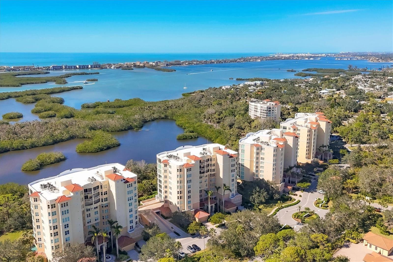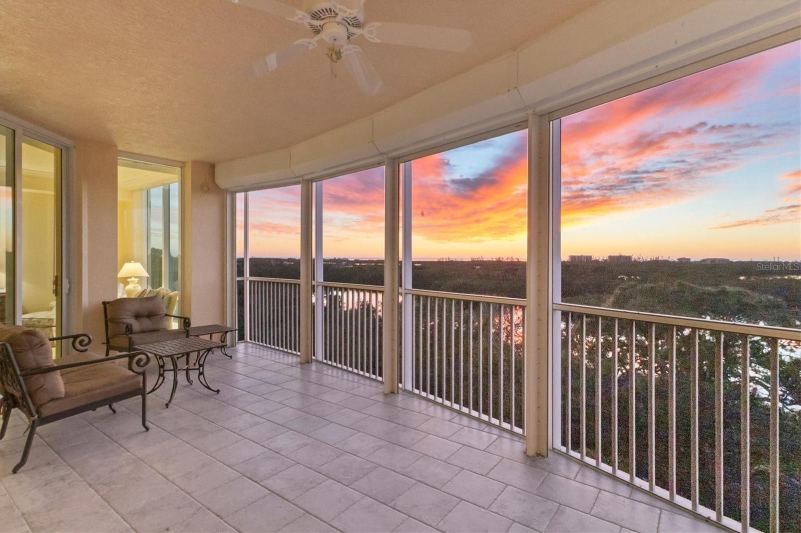 Immerse yourself in the unparalleled, unobstructed views of Little Sarasota Bay, the Gulf of Mexico and Midnight Pass, with Casey Key and Siesta Key gracing the horizon from this 6th-Floor Corner Unit Condo. Marvel at the gorgeous water views during the day and the stunning sunsets in the evening from your expansive, sweeping balcony, which feels like an additional room. Experience the epitome of seamless indoor-outdoor living in this expansive condo that spans nearly 2,800 square feet. Designed to emulate the ambiance of a single-family home, the open floor plan features a great room, a separate dining area, and a versatile den. The great room impresses with soaring 10-foot ceilings, floor-to-ceiling windows, and sliding doors that effortlessly blend the indoors with the outdoors, leading to a large, screened balcony with breathtaking water views. This harmonious flow floods the living space with natural light and offers a tranquil backdrop of sparkling vistas. The spacious kitchen is a culinary delight, boasting an eat-in area and granite high bar countertops, perfect for casual meals and entertaining guests. The popular split floor plan provides privacy and convenience, featuring 3 bedrooms and 3 baths. The den adds a layer of versatility to the home. The large kitchen includes an eat-in space and granite high bar countertops. The luxurious primary suite is separate from the guest rooms for privacy and includes stunning water views, large walk-in closets, and a luxurious bathroom. Additional features include an elegant entry, and an exclusive private foyer and elevator. The lanai is equipped with electric hurricane shutters ensuring safety and peace of mind. This secure building offers a wonderful lifestyle with private entry and elevator access. This unit is available for purchase fully furnished and is well-maintained. The Oaks community offers a distinguished, 24-hour guarded country club experience with numerous accolades, including Platinum Club of America, Emerald Club of the World, Elite Distinguished Club of the World. Amenities include three restaurants, a ballroom, two 18-hole championship golf courses, an award-winning racquets program with 12 Har-Tru Hydro-Grid tennis courts, 4 pickleball courts, a wonderful croquet facility, a state-of-the-art fitness center, a junior Olympic heated community swimming pool, bocce, a basketball court, a playground, a 7000 square foot fitness center, a brand new $9,000,000 dining room and bar with outdoor dining overlooking the golf course. Residents of the Meridian enjoy private amenities, including a heated pool and spa, a fitness center, and an outdoor grill. The Oaks provides well-lit sidewalks, ideal for strolls around the 100-acre preserve. It also boasts scenic trails, perfect for biking and walking while taking in the views of nature. The Oaks is just minutes from the nationally ranked Pine View School the Legacy Bike Trail, shopping, and area beaches. It is conveniently situated near both Venice and Sarasota, offering easy access to the amenities and attractions of both cities, while providing a beautiful, luxurious, and well-rounded country club lifestyle. Membership is required, and there is no waitlist for golf or social membership. Be sure to make an appointment to see this stunning condominium **ENJOY THE 3D VIRTUAL TOUR**