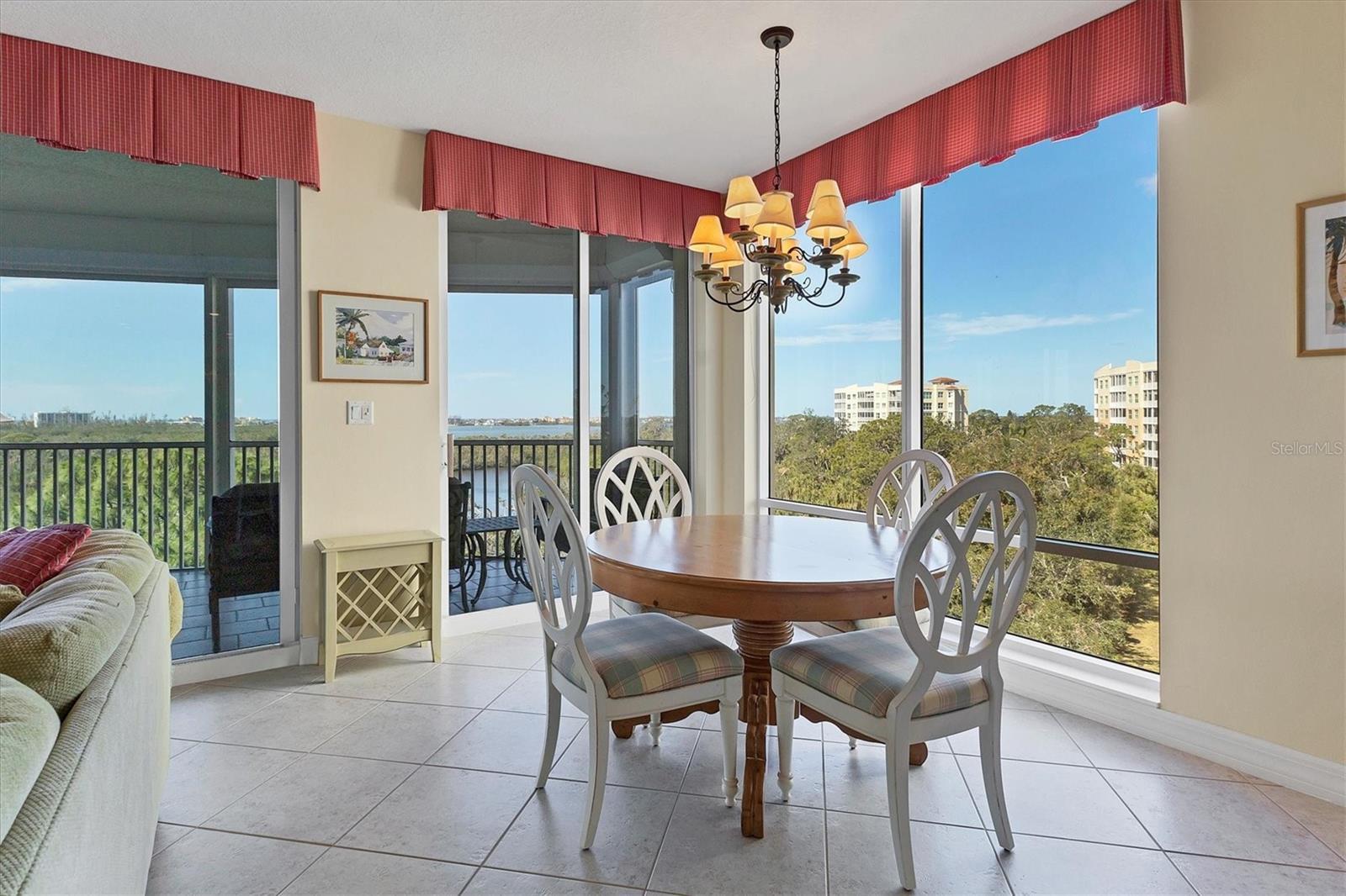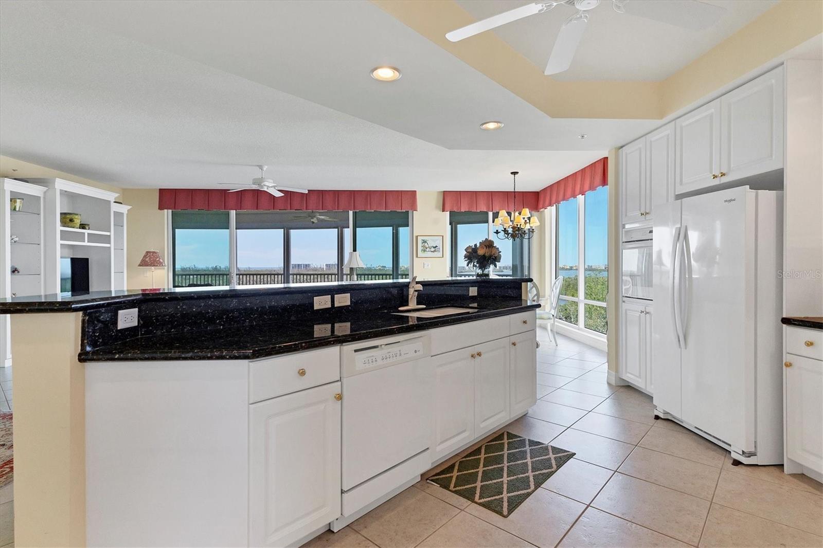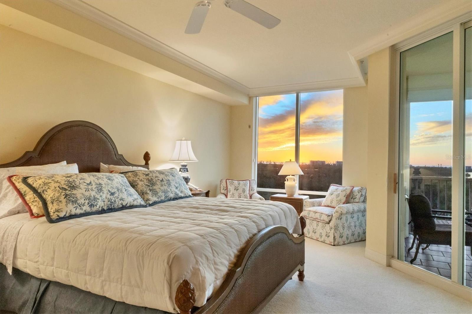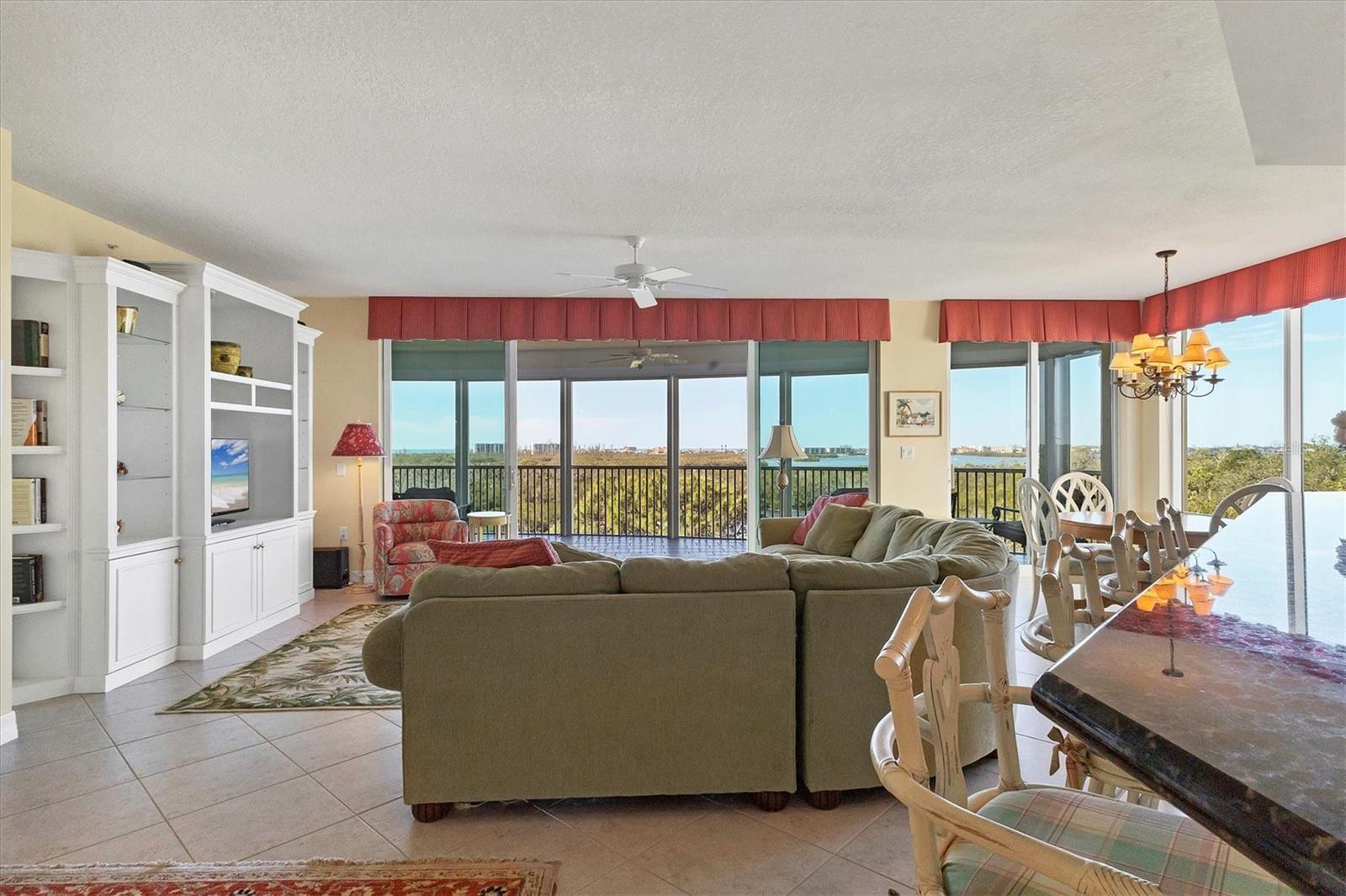 Immerse yourself in the unparalleled, unobstructed views of Little Sarasota Bay, the Gulf of Mexico and Midnight Pass, with Casey Key and Siesta Key gracing the horizon from this 6th-Floor Corner Unit Condo. Marvel at the gorgeous water views during the day and the stunning sunsets in the evening from your expansive, sweeping balcony, which feels like an additional room. Experience the epitome of seamless indoor-outdoor living in this expansive condo that spans nearly 2,800 square feet. Designed to emulate the ambiance of a single-family home, the open floor plan features a great room, a separate dining area, and a versatile den. The great room impresses with soaring 10-foot ceilings, floor-to-ceiling windows, and sliding doors that effortlessly blend the indoors with the outdoors, leading to a large, screened balcony with breathtaking water views. This harmonious flow floods the living space with natural light and offers a tranquil backdrop of sparkling vistas. The spacious kitchen is a culinary delight, boasting an eat-in area and granite high bar countertops, perfect for casual meals and entertaining guests. The popular split floor plan provides privacy and convenience, featuring 3 bedrooms and 3 baths. The den adds a layer of versatility to the home. The large kitchen includes an eat-in space and granite high bar countertops. The luxurious primary suite is separate from the guest rooms for privacy and includes stunning water views, large walk-in closets, and a luxurious bathroom. Additional features include an elegant entry, and an exclusive private foyer and elevator. The lanai is equipped with electric hurricane shutters ensuring safety and peace of mind. This secure building offers a wonderful lifestyle with private entry and elevator access. This unit is available for purchase fully furnished and is well-maintained. The Oaks community offers a distinguished, 24-hour guarded country club experience with numerous accolades, including Platinum Club of America, Emerald Club of the World, Elite Distinguished Club of the World. Amenities include three restaurants, a ballroom, two 18-hole championship golf courses, an award-winning racquets program with 12 Har-Tru Hydro-Grid tennis courts, 4 pickleball courts, a wonderful croquet facility, a state-of-the-art fitness center, a junior Olympic heated community swimming pool, bocce, a basketball court, a playground, a 7000 square foot fitness center, a brand new $9,000,000 dining room and bar with outdoor dining overlooking the golf course. Residents of the Meridian enjoy private amenities, including a heated pool and spa, a fitness center, and an outdoor grill. The Oaks provides well-lit sidewalks, ideal for strolls around the 100-acre preserve. It also boasts scenic trails, perfect for biking and walking while taking in the views of nature. The Oaks is just minutes from the nationally ranked Pine View School the Legacy Bike Trail, shopping, and area beaches. It is conveniently situated near both Venice and Sarasota, offering easy access to the amenities and attractions of both cities, while providing a beautiful, luxurious, and well-rounded country club lifestyle. Membership is required, and there is no waitlist for golf or social membership. Be sure to make an appointment to see this stunning condominium **ENJOY THE 3D VIRTUAL TOUR**