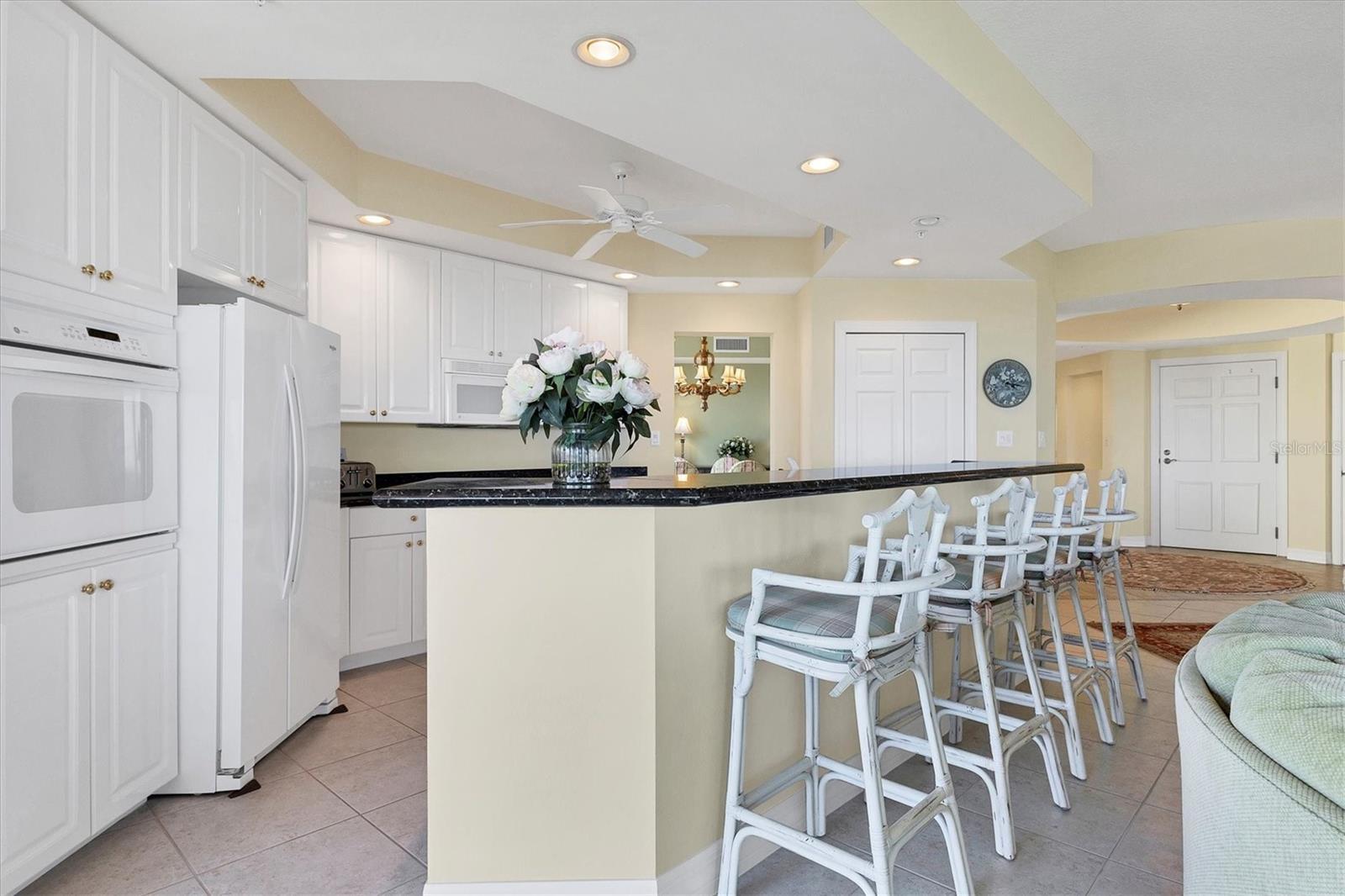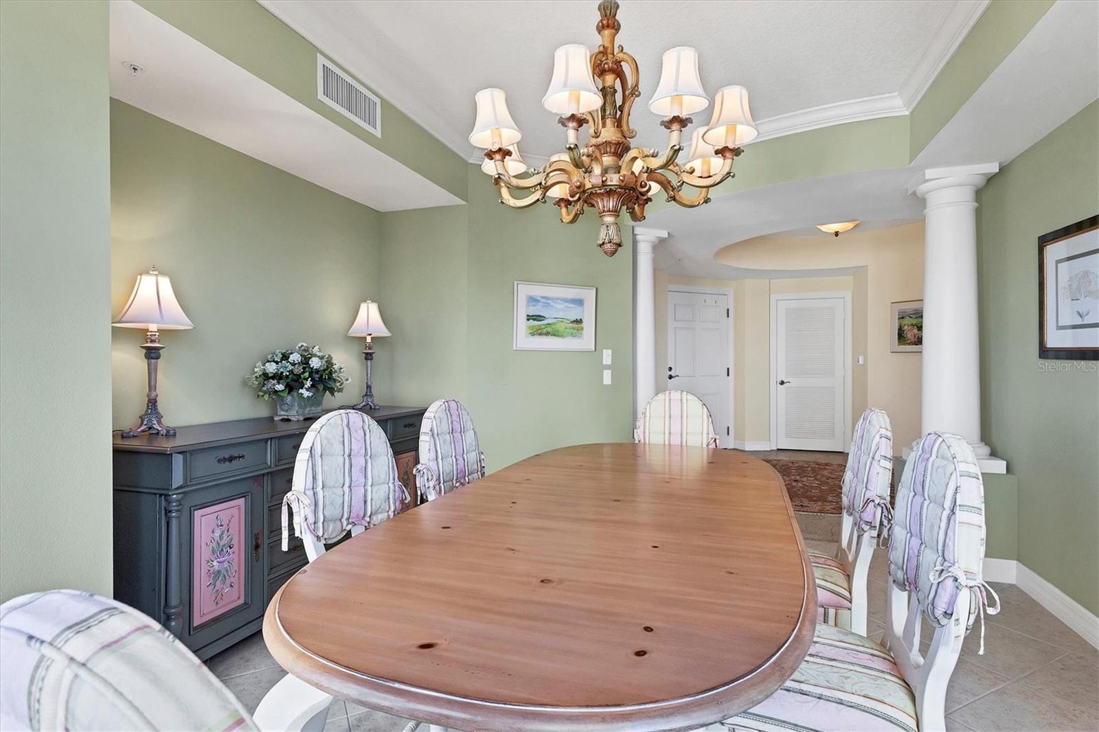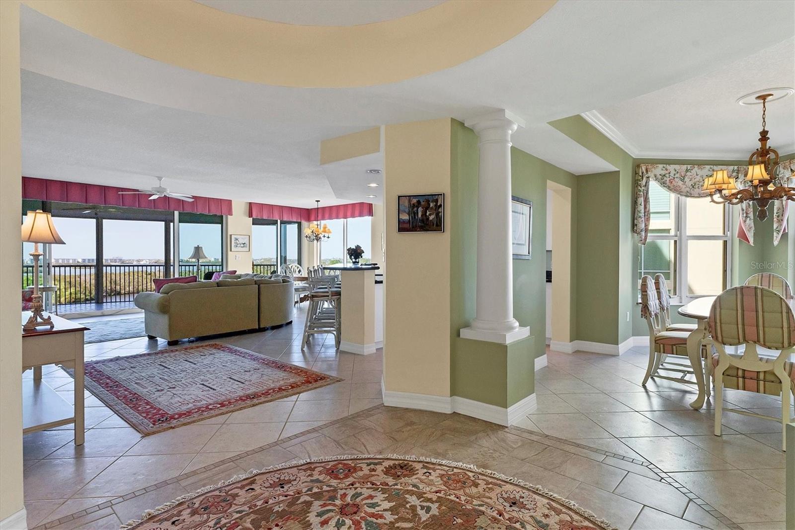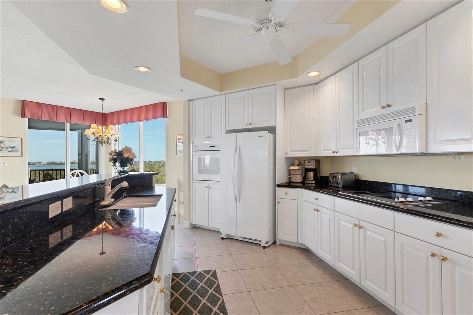 Immerse yourself in the unparalleled, unobstructed views of Little Sarasota Bay, the Gulf of Mexico and Midnight Pass, with Casey Key and Siesta Key gracing the horizon from this 6th-Floor Corner Unit Condo. Marvel at the gorgeous water views during the day and the stunning sunsets in the evening from your expansive, sweeping balcony, which feels like an additional room. Experience the epitome of seamless indoor-outdoor living in this expansive condo that spans nearly 2,800 square feet. Designed to emulate the ambiance of a single-family home, the open floor plan features a great room, a separate dining area, and a versatile den. The great room impresses with soaring 10-foot ceilings, floor-to-ceiling windows, and sliding doors that effortlessly blend the indoors with the outdoors, leading to a large, screened balcony with breathtaking water views. This harmonious flow floods the living space with natural light and offers a tranquil backdrop of sparkling vistas. The spacious kitchen is a culinary delight, boasting an eat-in area and granite high bar countertops, perfect for casual meals and entertaining guests. The popular split floor plan provides privacy and convenience, featuring 3 bedrooms and 3 baths. The den adds a layer of versatility to the home. The large kitchen includes an eat-in space and granite high bar countertops. The luxurious primary suite is separate from the guest rooms for privacy and includes stunning water views, large walk-in closets, and a luxurious bathroom. Additional features include an elegant entry, and an exclusive private foyer and elevator. The lanai is equipped with electric hurricane shutters ensuring safety and peace of mind. This secure building offers a wonderful lifestyle with private entry and elevator access. This unit is available for purchase fully furnished and is well-maintained. The Oaks community offers a distinguished, 24-hour guarded country club experience with numerous accolades, including Platinum Club of America, Emerald Club of the World, Elite Distinguished Club of the World. Amenities include three restaurants, a ballroom, two 18-hole championship golf courses, an award-winning racquets program with 12 Har-Tru Hydro-Grid tennis courts, 4 pickleball courts, a wonderful croquet facility, a state-of-the-art fitness center, a junior Olympic heated community swimming pool, bocce, a basketball court, a playground, a 7000 square foot fitness center, a brand new $9,000,000 dining room and bar with outdoor dining overlooking the golf course. Residents of the Meridian enjoy private amenities, including a heated pool and spa, a fitness center, and an outdoor grill. The Oaks provides well-lit sidewalks, ideal for strolls around the 100-acre preserve. It also boasts scenic trails, perfect for biking and walking while taking in the views of nature. The Oaks is just minutes from the nationally ranked Pine View School the Legacy Bike Trail, shopping, and area beaches. It is conveniently situated near both Venice and Sarasota, offering easy access to the amenities and attractions of both cities, while providing a beautiful, luxurious, and well-rounded country club lifestyle. Membership is required, and there is no waitlist for golf or social membership. Be sure to make an appointment to see this stunning condominium **ENJOY THE 3D VIRTUAL TOUR**