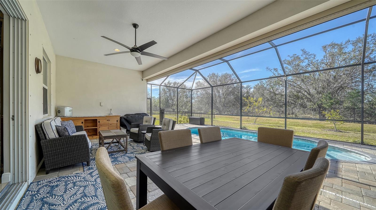 Meticulously maintained home like new. 4 bedrooms plus den, 3 baths, 3 car garage located in the gated community of Waverley. As you walk up the paver brick walkway to the front door you will notice a new outside patio to the left. Every room in this home is spacious with tray ceilings in master bedroom and living room. Master bathroom has a double shower and oversized walk-in closet. Kitchen offers a wide-open space for cooking with a walk-in pantry. Kitchen also has a reverse osmosis water system. Inside laundry room has a built-in drying rack. Owners have added a wet room off garage so that you can sit and remove your shoes before walking across the large, tiled floors. Owners have also extended the lanai to allow for extra entertaining. A sink and electric are already in place for an outside kitchen. Heated pool with a child fence for extra safety. Home is equipped with hurricane shutters but also has hurricane electric drop-down shutters for front door and back lanai. Home has Wi-Fi, thermostat, security system, outside camera, an irrigation system and is wired for a sound system. Windows all have plantation shutters for privacy. This is a wonderful family home located close to shopping, restaurants and great schools.