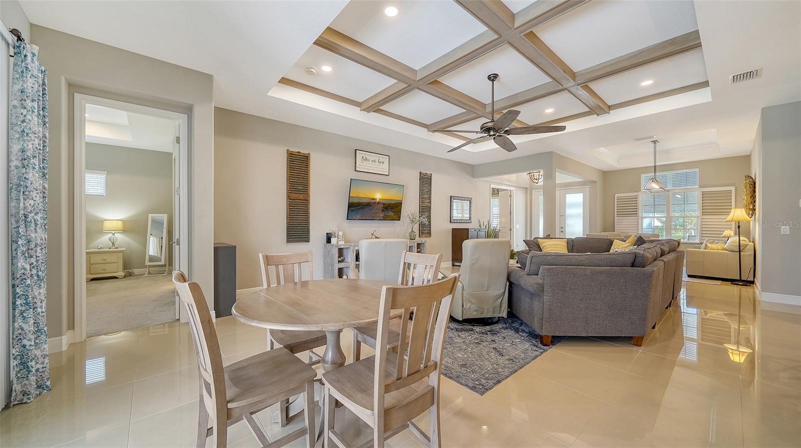 - Ceiling Fans(s), Crown Molding, High Ceilings, Kitchen/Family Room Combo, Living Room/Dining Room Combo, Open Floorplan, Primary Bedroom Main Floor, Split Bedroom, Stone Counters, Tray Ceiling(s), Walk-In Closet(s), Window Treatments
