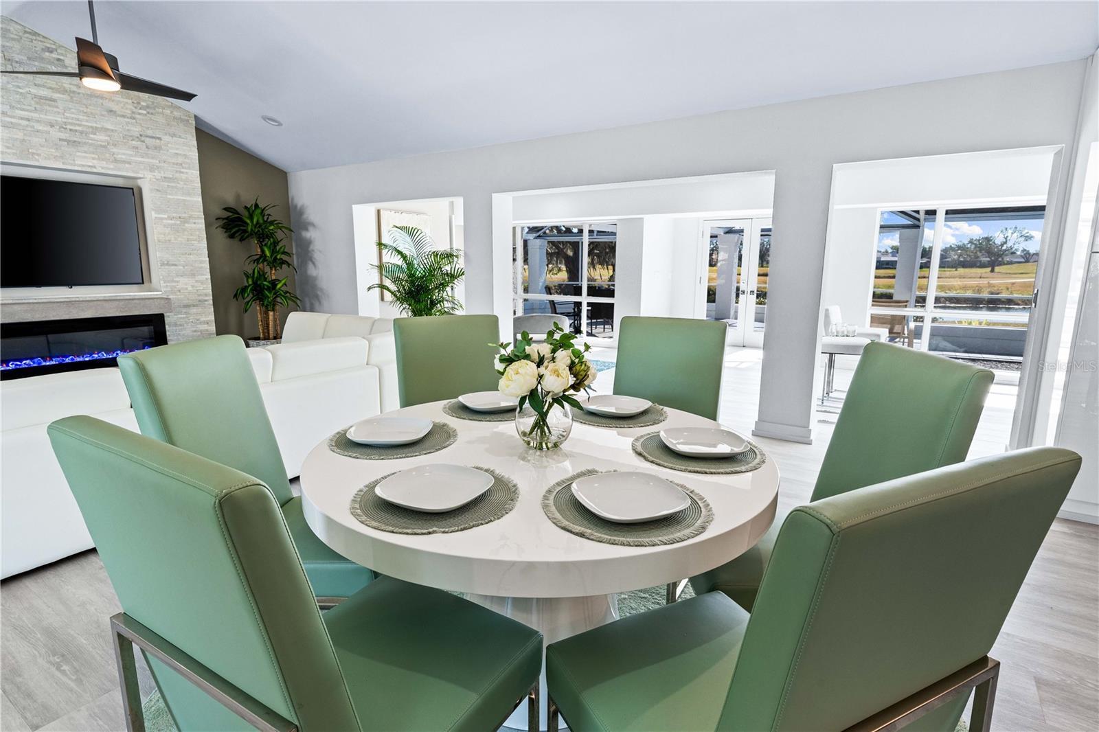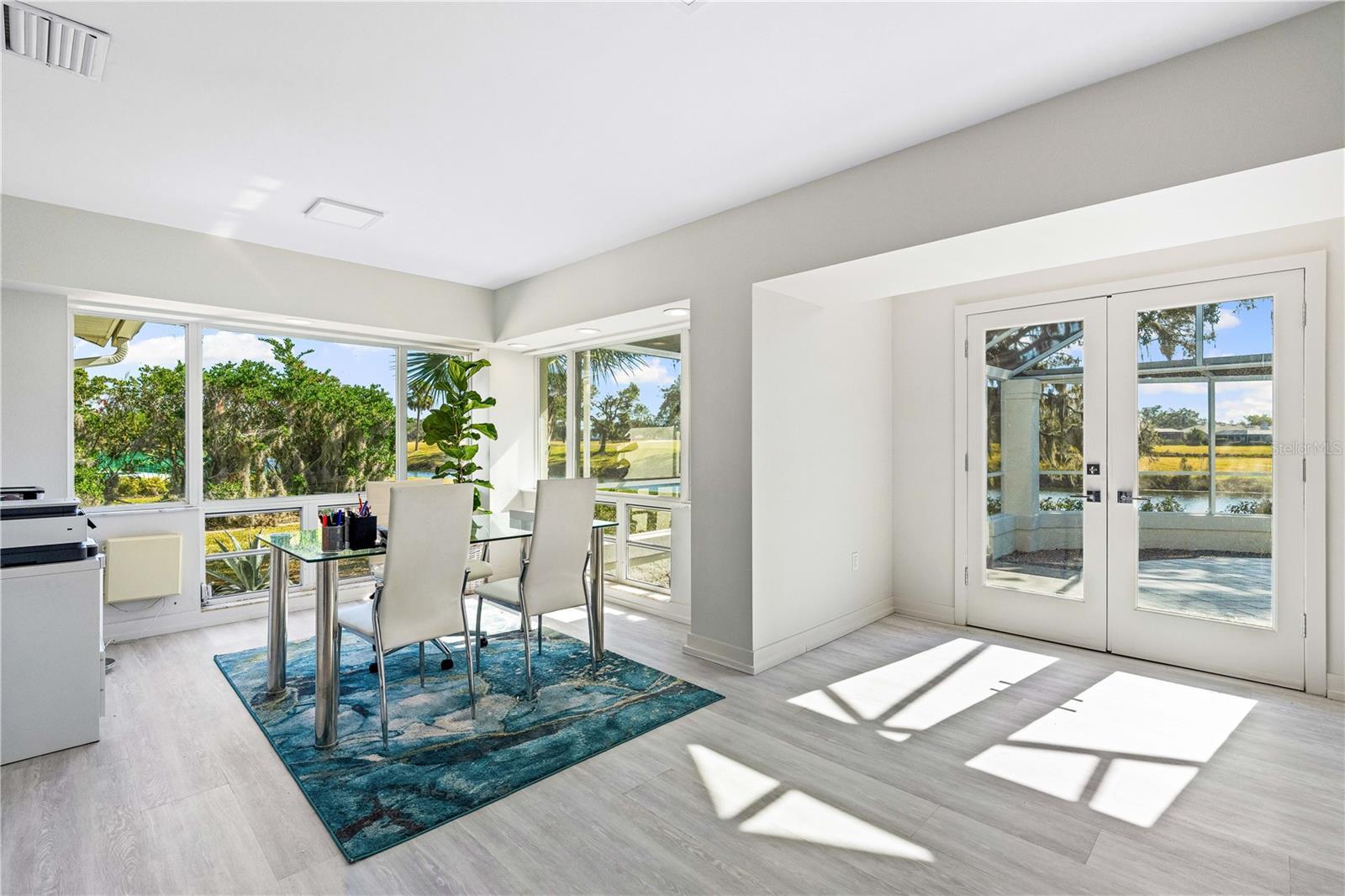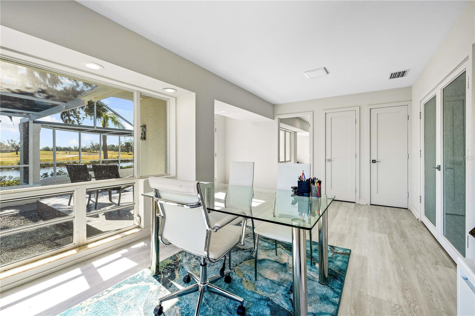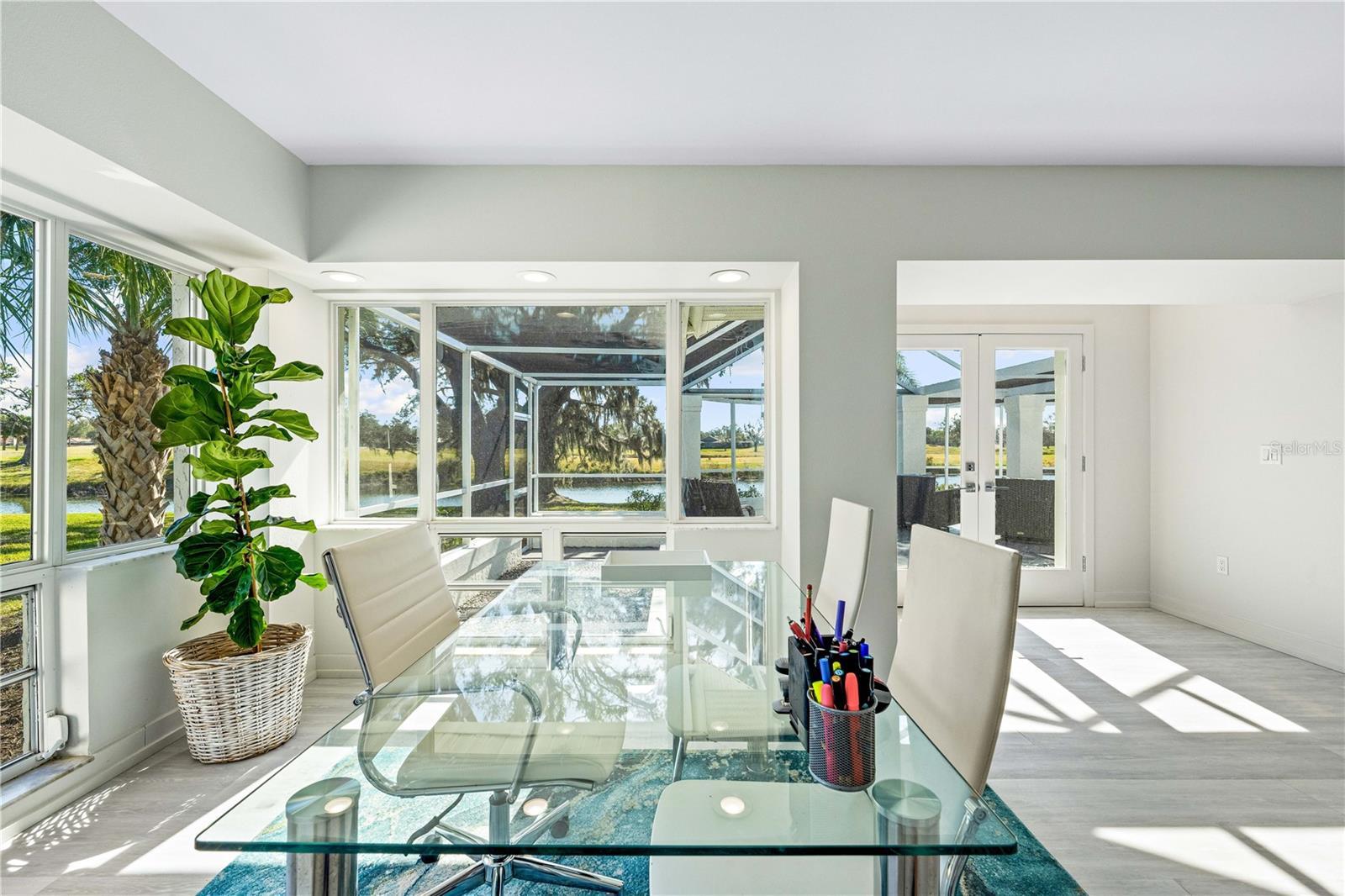 Seller Motivated! Exquisitely remodeled 4/3.5 contemporary on a spacious golf course lot in the popular Club at River Wilderness. A totally open floor plan featuring extensive windows and a cathedral ceiling create a bright, airy feeling, highlighting the stunningly luxurious, designer finishes throughout. The huge 800sf great room-dining-kitchen area features a floor to ceiling quartzite stone fireplace on one end, with electric fireplace and 72” tv niche, and a chef’s dream kitchen on the opposite end, making this the perfect home for entertaining. The incredible kitchen features glossy white European style cabinetry with premium Cambria counter tops and an impressive waterfalled center island with a composite sink, extremely quiet SS dishwasher and seating for four. Top of the line Frigidaire Professional SS appliances include a 66" twin column frig and freezer, built-in dual wall ovens with a convection microwave, a 36” natural gas cooktop with SS chimney vent. Beyond the great room is a more intimate seating area overlooking the serene golf course and a game room leading out to the expansive, screened in lanai. The spacious master suite boasts a cathedral ceiling, ample room for a king size bed that overlooks an intimate seating area with a built-in electric fireplace to warm cooler evenings after relaxing in the opulent master bath’s whirlpool jet tub. Bathroom also features a large, walk-in glass lined porcelain shower, his and hers vanities with lighted & fog proof mirrors and a separate toilet room. An immense walk-in closet will surprise you with its spacious “California” closet design, it’s convenient second laundry room featuring Bosch under counter washer and dryer, storage cabinets, sink and quartz counter perfect for your morning coffee or expresso machine! Completing the owner’s wing is a large office area with tons of naturel light and a beautiful view overlooking the golf course. The "other wing" of this magnificent home features 3 spacious bedrooms with built-in desks, plenty of closet space and 2 baths en-suite both completely updated with lighted mirrors, porcelain tile and wall hung vanities. The spacious main laundry room in located off the kitchen and leads to a unique 220sf multi-functional workshop/craft room/golf cart room with laundry tub and slatted walls for convenient storage and direct access to the 2.5 car attached garage. Additional upgrades include a new roof and air conditioning systems, all new landscaping, quartzite brick enhanced facias for curb appeal, a circular drive for plenty of guest parking, all new hardware, lighting and plumbing fixtures, freshly painted walls and ceilings and new luxury vinyl plank for porcelain tile floors throughout. You will love the privacy and serenity from your screened in patio with pond/golf course view and room for a pool or hot tub. This community has many amenities including a 18 hole championship golf course, clubhouse with dining, Olympic sized pool, fully equipped fitness center, lighted har-tru tennis courts and pickle ball as well as community ramp with boating access to the Manatee River! The club has many optional memberships for golf, tennis, and social. This incredible community is conveniently located to shopping, restaurants and schools. Call me today for a private tour while this masterpiece is still available.