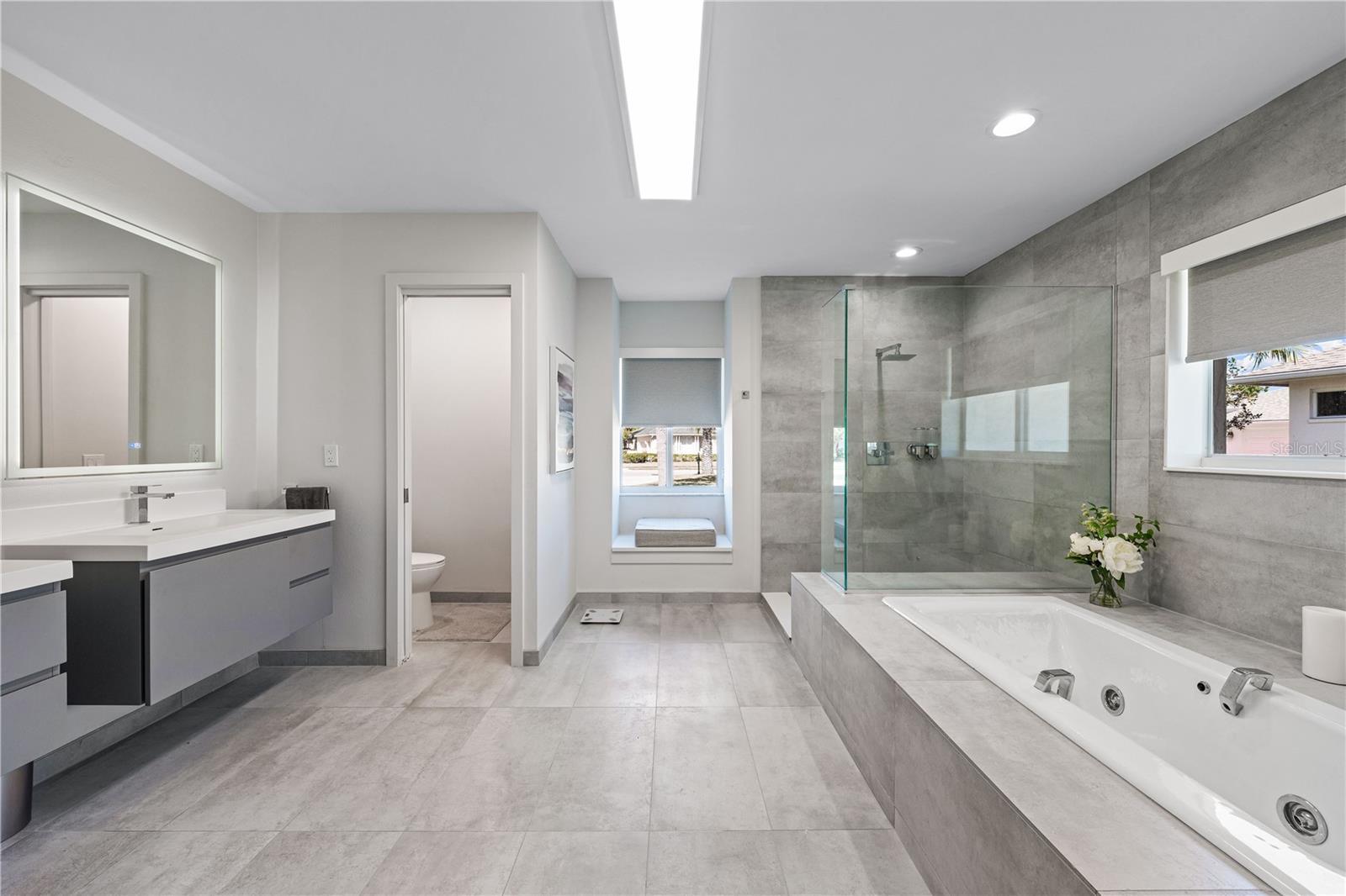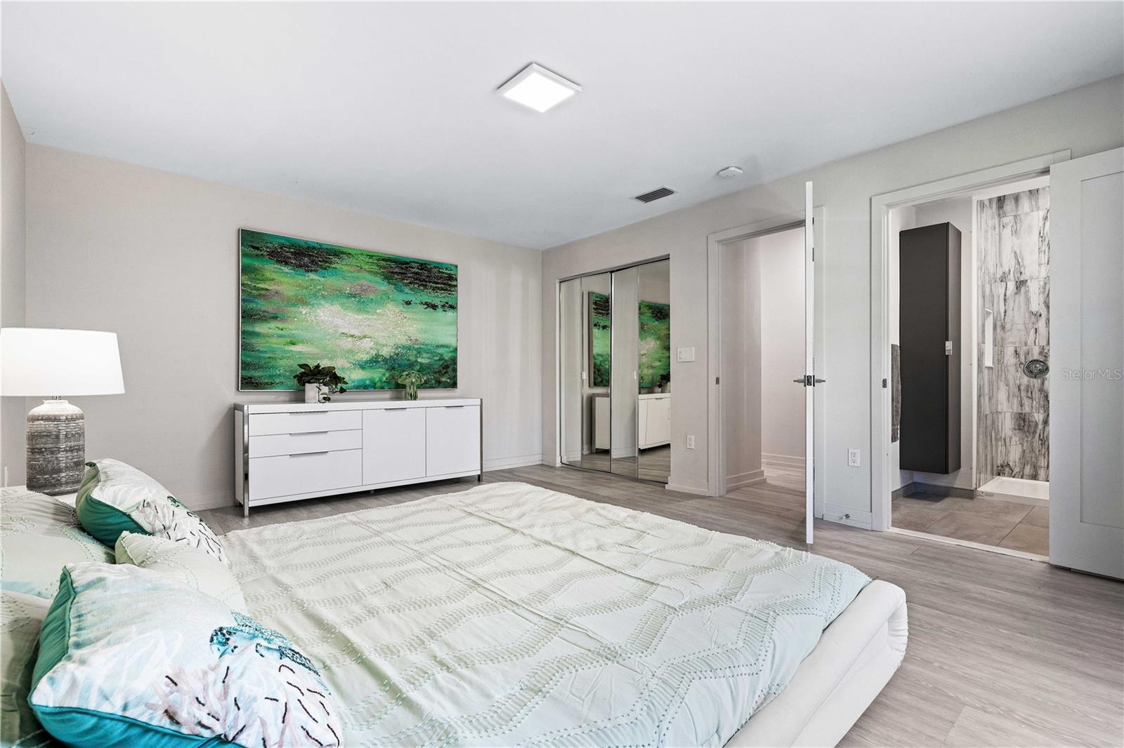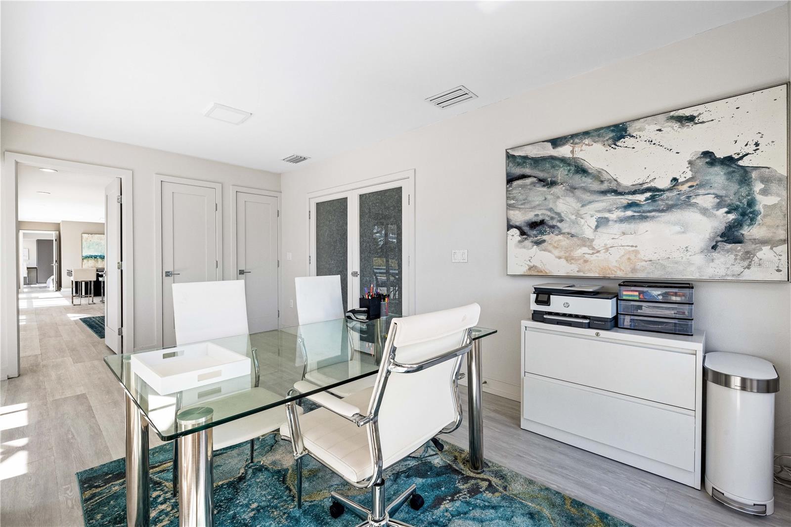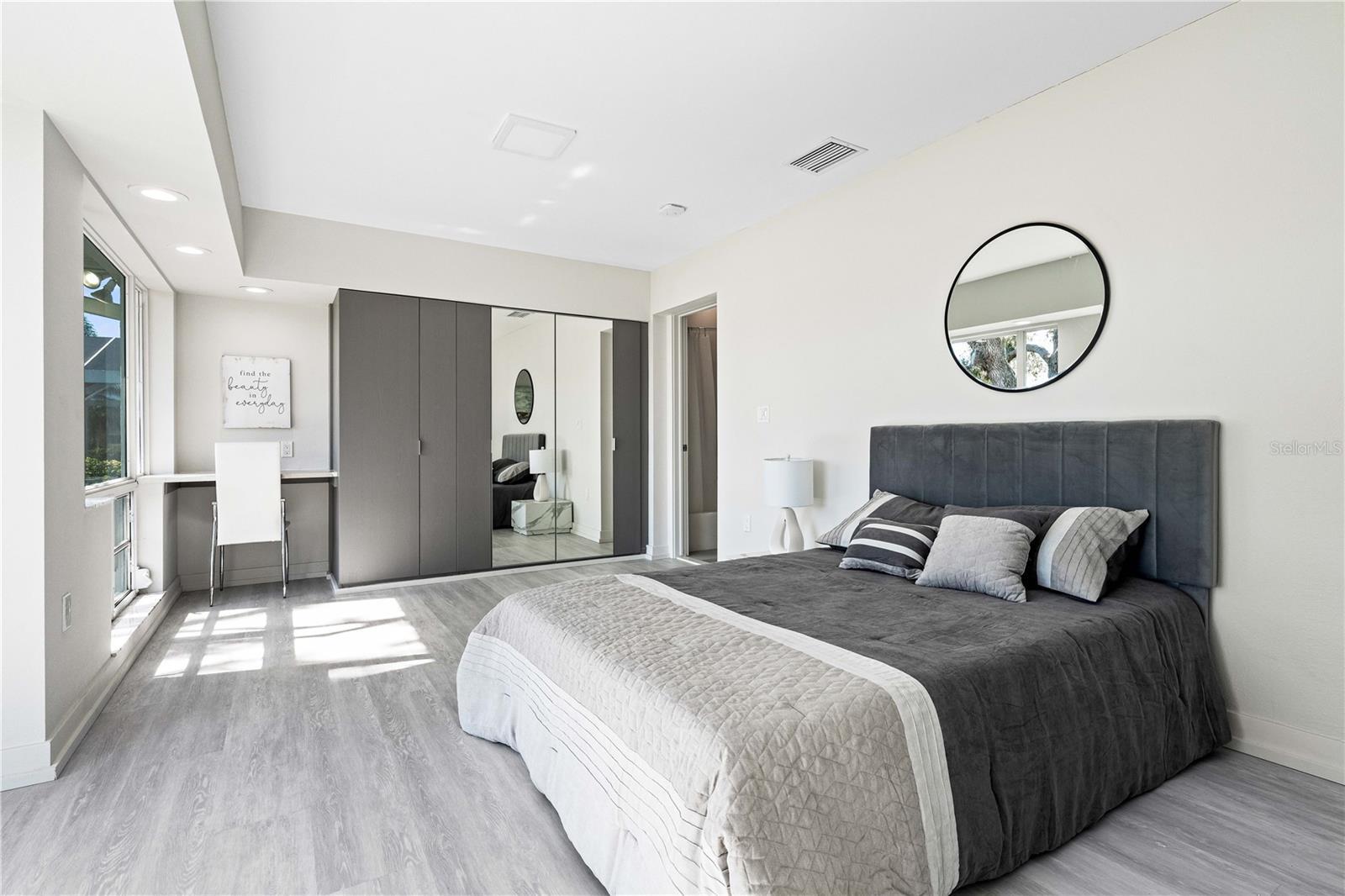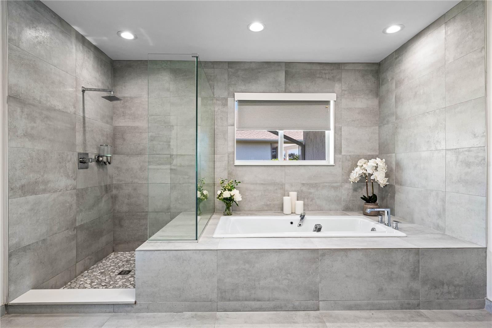 Seller Motivated! Exquisitely remodeled 4/3.5 contemporary on a spacious golf course lot in the popular Club at River Wilderness. A totally open floor plan featuring extensive windows and a cathedral ceiling create a bright, airy feeling, highlighting the stunningly luxurious, designer finishes throughout. The huge 800sf great room-dining-kitchen area features a floor to ceiling quartzite stone fireplace on one end, with electric fireplace and 72” tv niche, and a chef’s dream kitchen on the opposite end, making this the perfect home for entertaining. The incredible kitchen features glossy white European style cabinetry with premium Cambria counter tops and an impressive waterfalled center island with a composite sink, extremely quiet SS dishwasher and seating for four. Top of the line Frigidaire Professional SS appliances include a 66" twin column frig and freezer, built-in dual wall ovens with a convection microwave, a 36” natural gas cooktop with SS chimney vent. Beyond the great room is a more intimate seating area overlooking the serene golf course and a game room leading out to the expansive, screened in lanai. The spacious master suite boasts a cathedral ceiling, ample room for a king size bed that overlooks an intimate seating area with a built-in electric fireplace to warm cooler evenings after relaxing in the opulent master bath’s whirlpool jet tub. Bathroom also features a large, walk-in glass lined porcelain shower, his and hers vanities with lighted & fog proof mirrors and a separate toilet room. An immense walk-in closet will surprise you with its spacious “California” closet design, it’s convenient second laundry room featuring Bosch under counter washer and dryer, storage cabinets, sink and quartz counter perfect for your morning coffee or expresso machine! Completing the owner’s wing is a large office area with tons of naturel light and a beautiful view overlooking the golf course. The "other wing" of this magnificent home features 3 spacious bedrooms with built-in desks, plenty of closet space and 2 baths en-suite both completely updated with lighted mirrors, porcelain tile and wall hung vanities. The spacious main laundry room in located off the kitchen and leads to a unique 220sf multi-functional workshop/craft room/golf cart room with laundry tub and slatted walls for convenient storage and direct access to the 2.5 car attached garage. Additional upgrades include a new roof and air conditioning systems, all new landscaping, quartzite brick enhanced facias for curb appeal, a circular drive for plenty of guest parking, all new hardware, lighting and plumbing fixtures, freshly painted walls and ceilings and new luxury vinyl plank for porcelain tile floors throughout. You will love the privacy and serenity from your screened in patio with pond/golf course view and room for a pool or hot tub. This community has many amenities including a 18 hole championship golf course, clubhouse with dining, Olympic sized pool, fully equipped fitness center, lighted har-tru tennis courts and pickle ball as well as community ramp with boating access to the Manatee River! The club has many optional memberships for golf, tennis, and social. This incredible community is conveniently located to shopping, restaurants and schools. Call me today for a private tour while this masterpiece is still available.